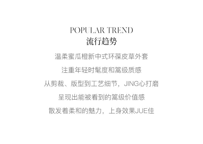 “精致”是欧芮儿olrain品牌文化的核心,欧芮儿认为,精致的女人,不但要外在动人,更要内在迷人,内外兼修,有魅力、有气质、有内涵,自信而不自傲,优雅而不矫揉,自有万种风情而不轻浮,更不故作矜持。