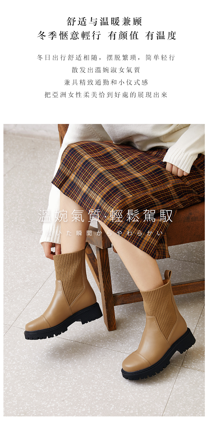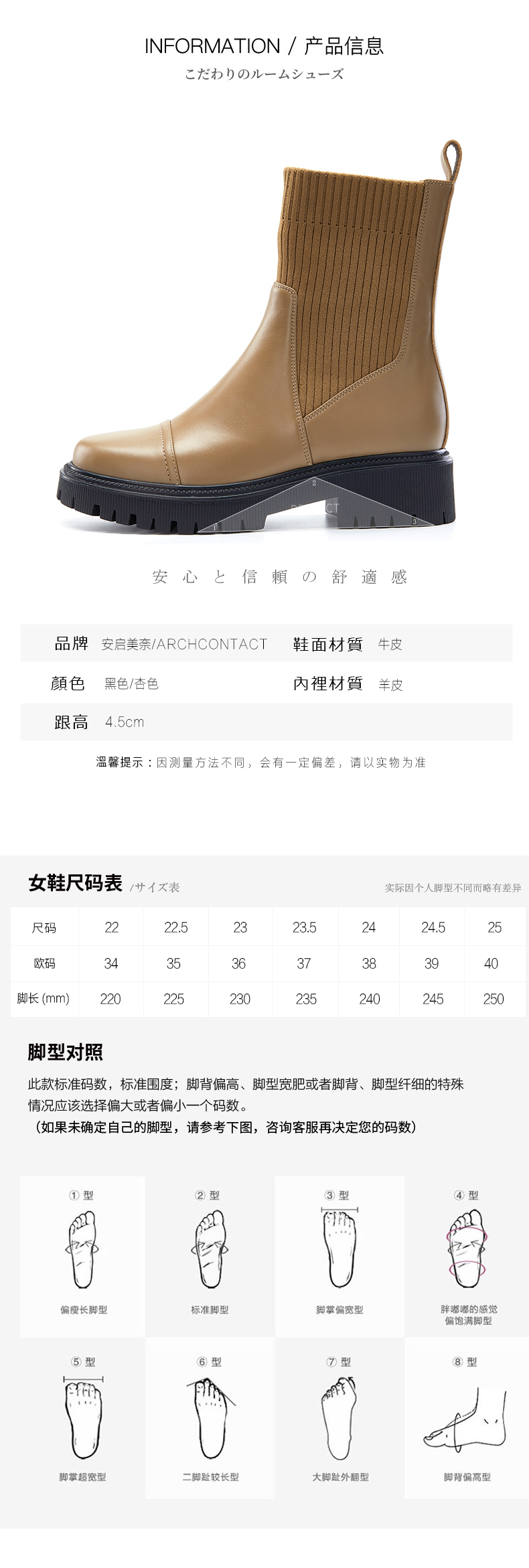 ARCHCONTACT2022年新款安启美奈舒适圆头拼接女靴