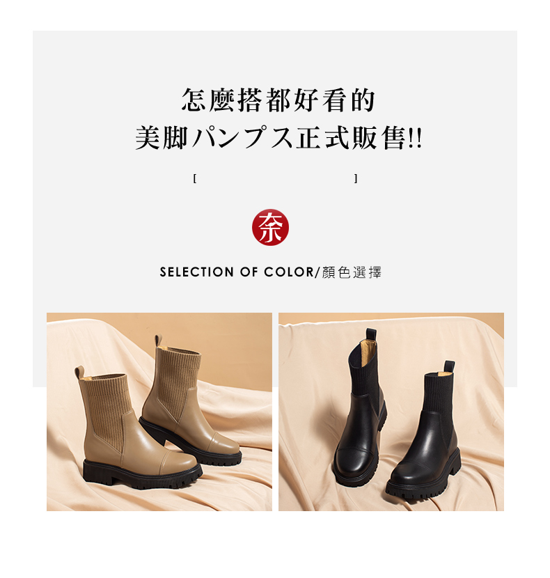 ARCHCONTACT安启美奈小牛皮切尔西中跟女靴52874