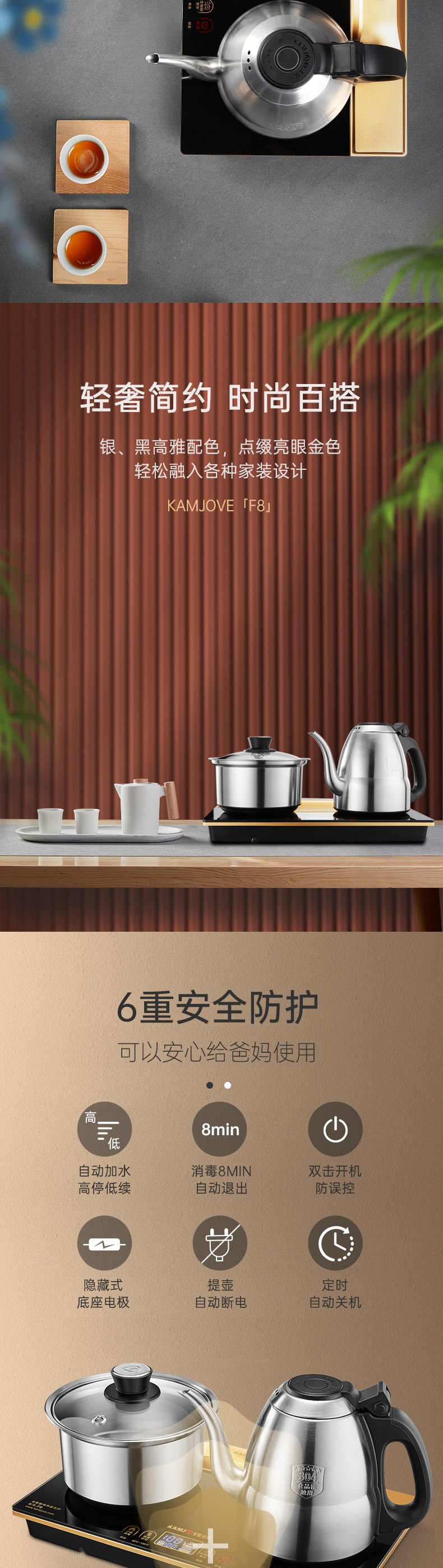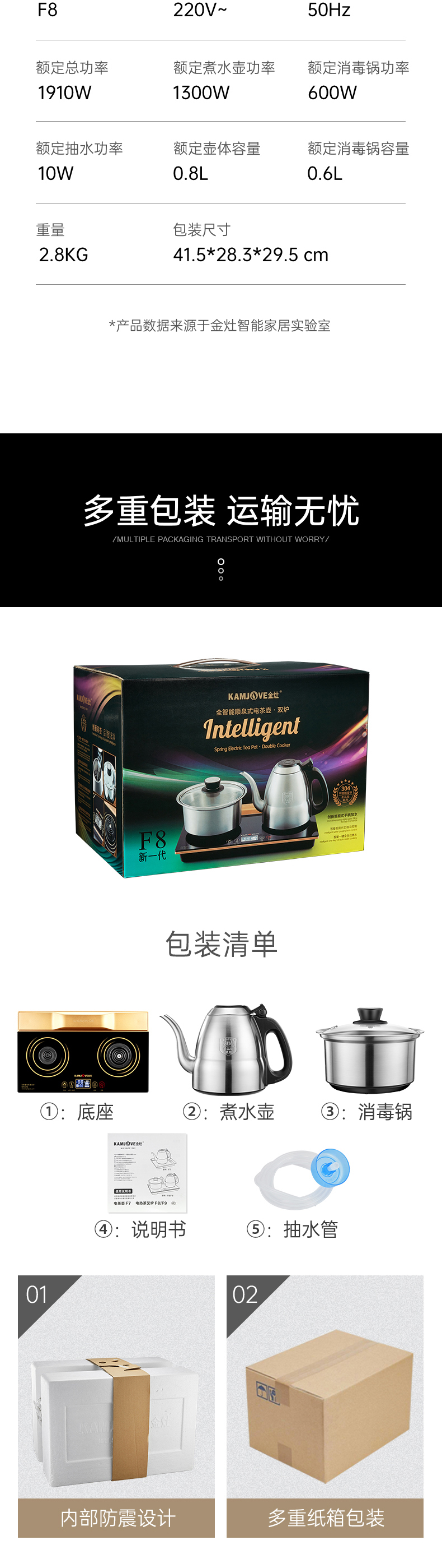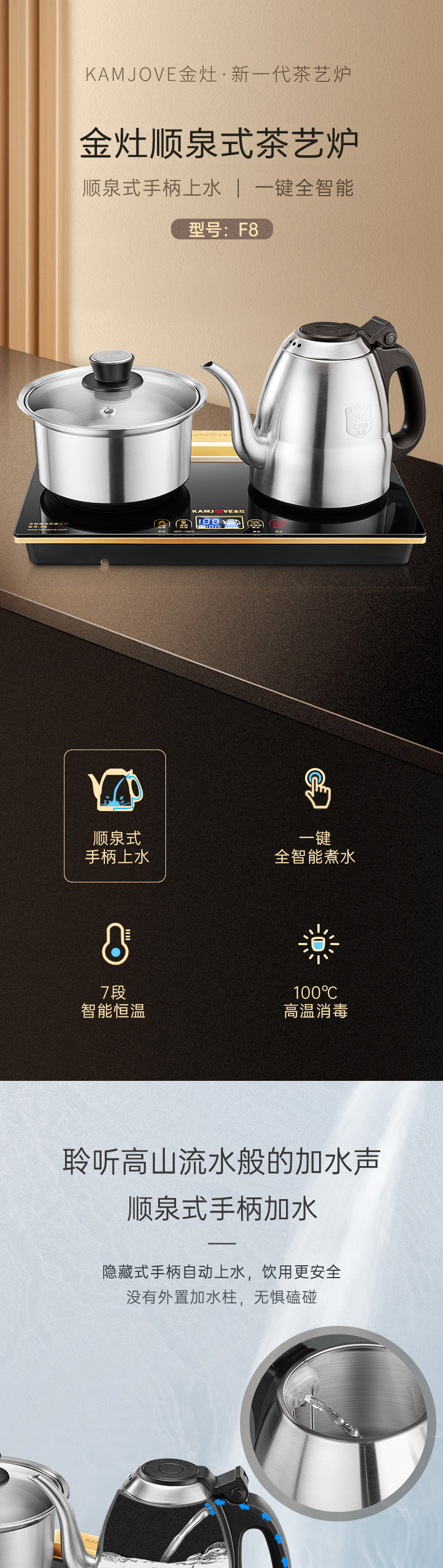 金灶F-8顺泉电热水壶全自动手柄上水烧水保温一体茶炉泡茶专用