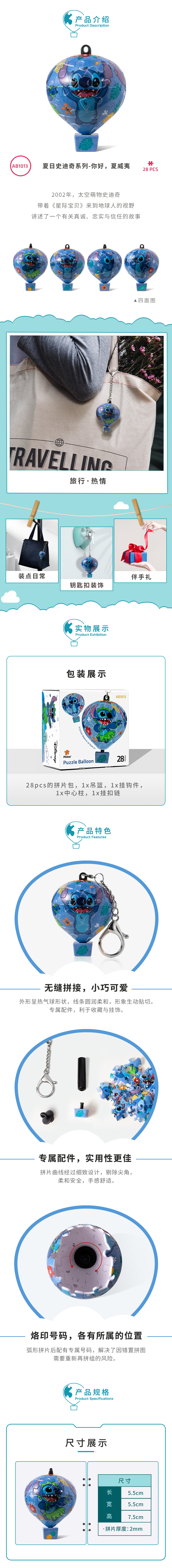 28片 热气球钥匙扣拼图 AB1013 夏日史迪奇系列-你好,夏威夷