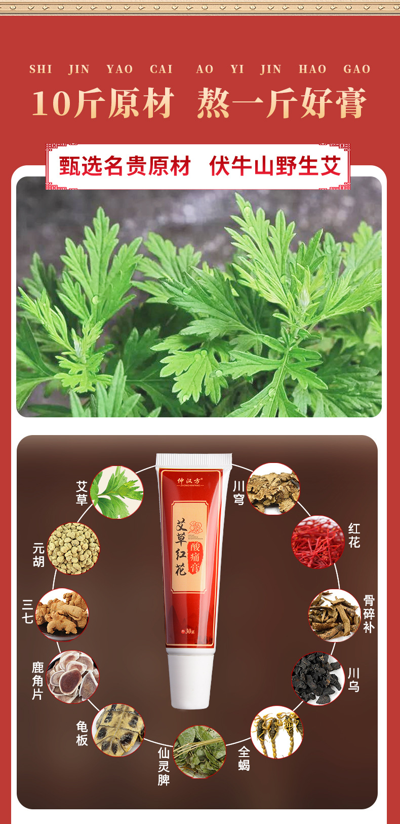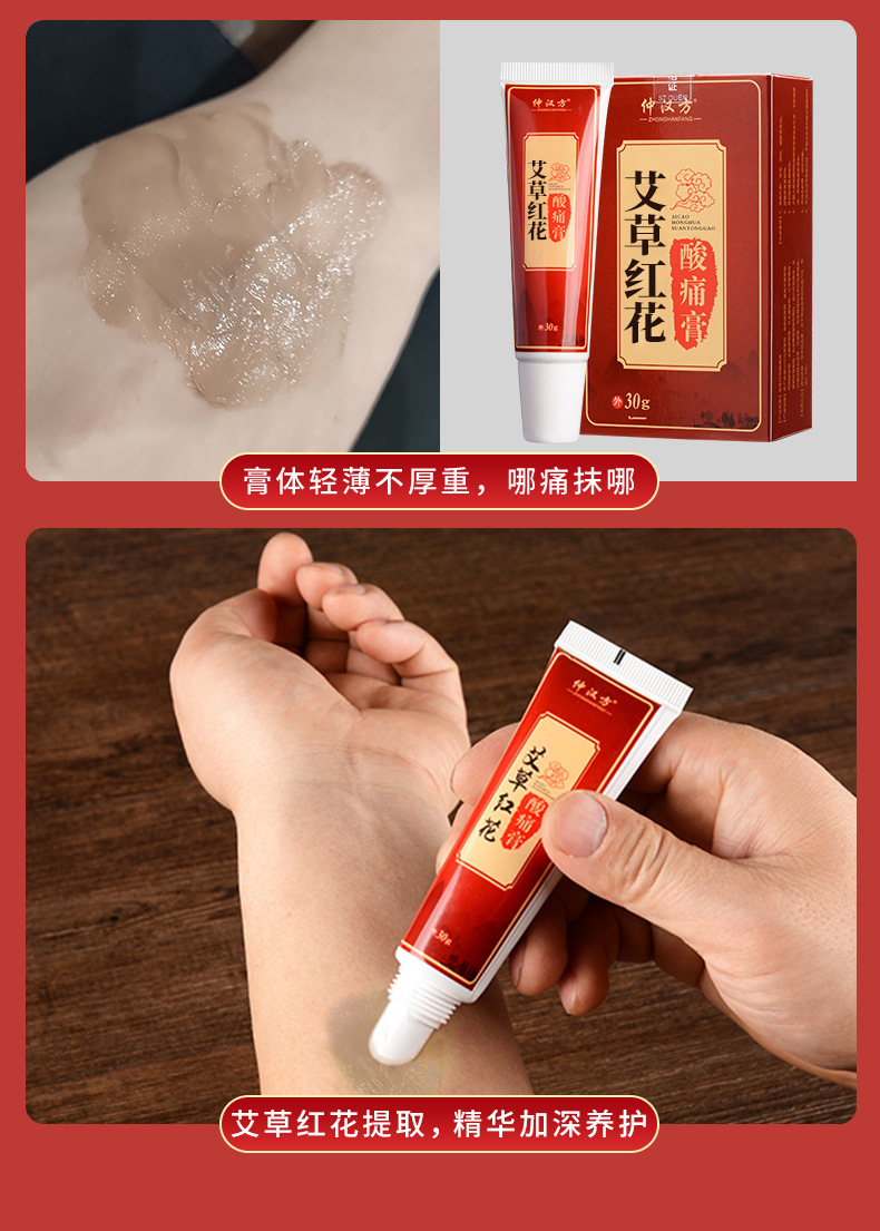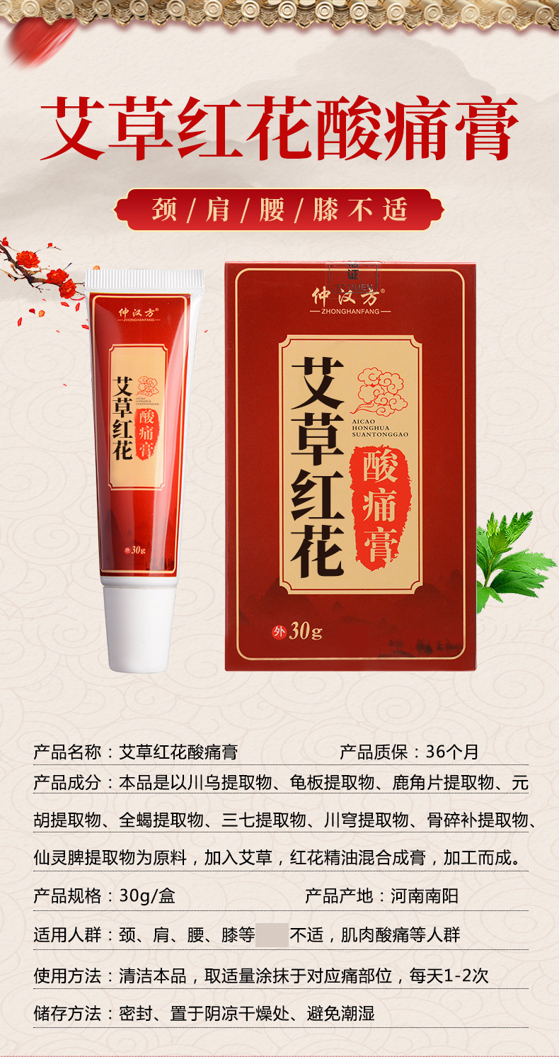 【关节不适一抹消】艾叶红花酸痛膏 颈肩腰腿膝盖背部颈椎 关节不适舒缓肌肉 草本萃取安全使用 关节膏贴30g/盒