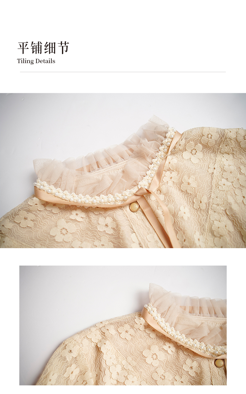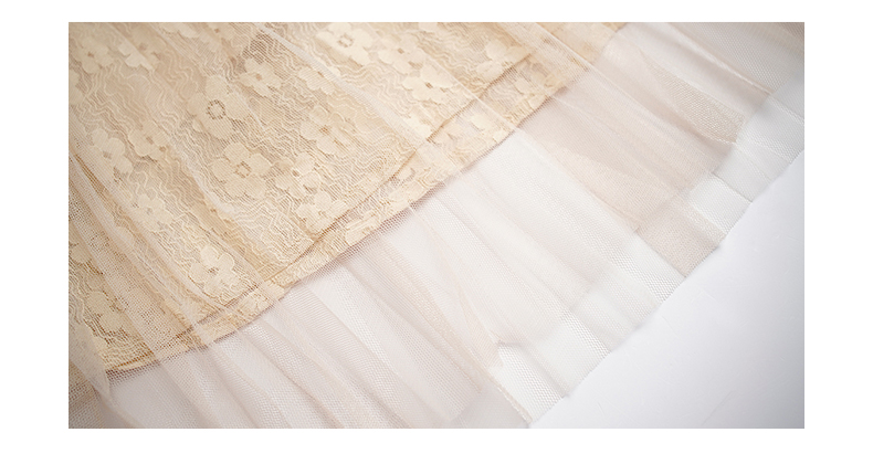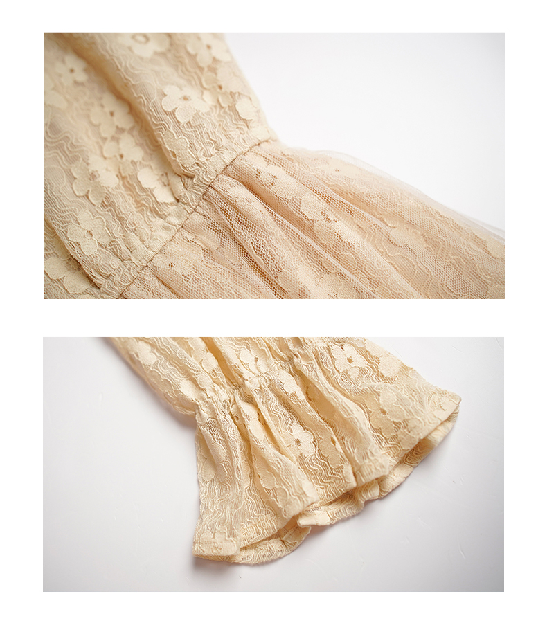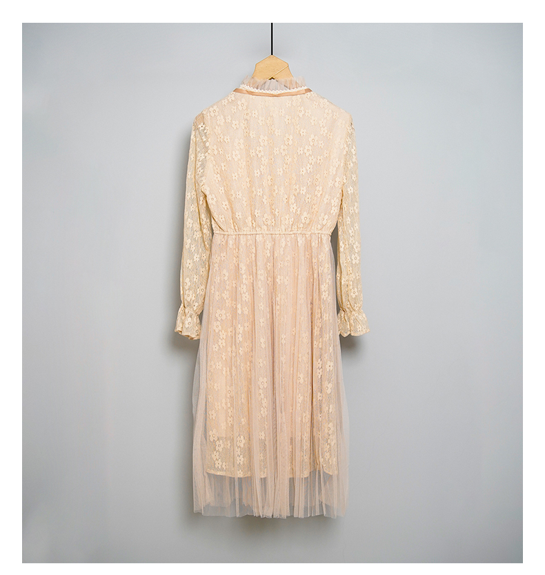 oldcolour春秋款米色网纱碎花长袖连衣裙女DN13103009