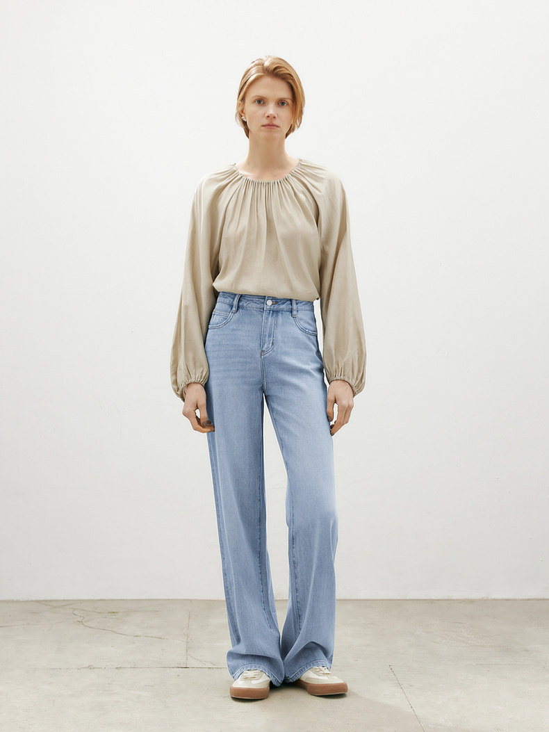 【商场同款】诗凡黎复古阔腿牛仔裤25秋新款丹宁弯刀裤3G9151701