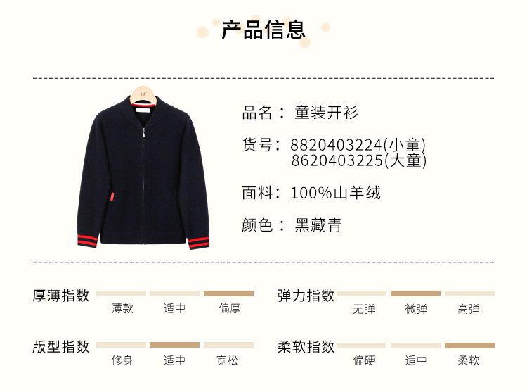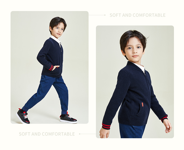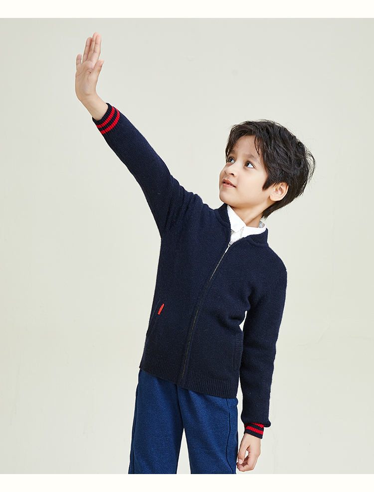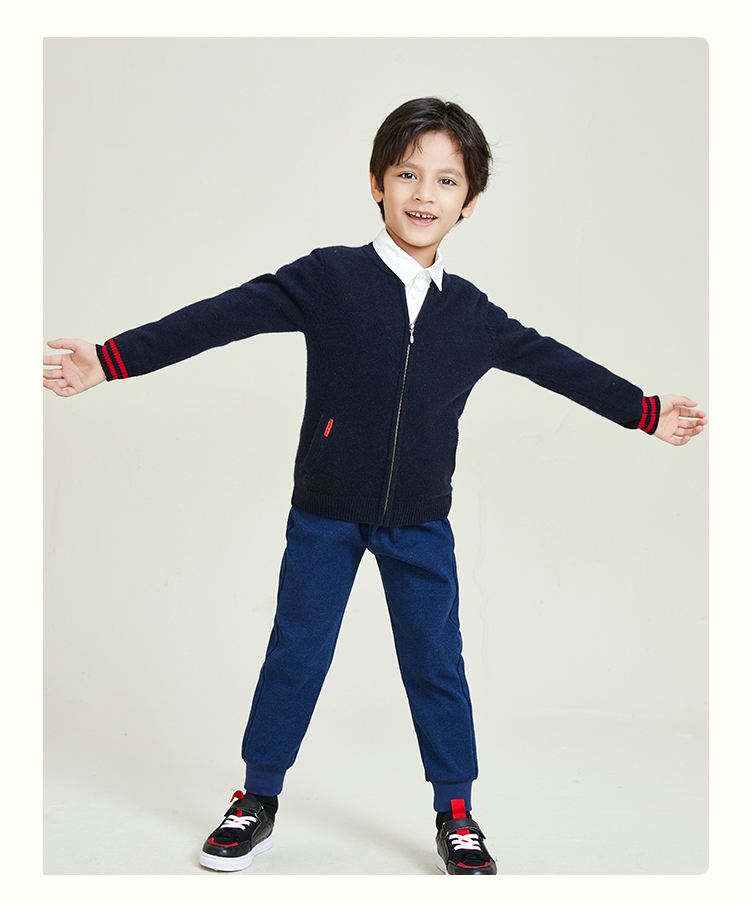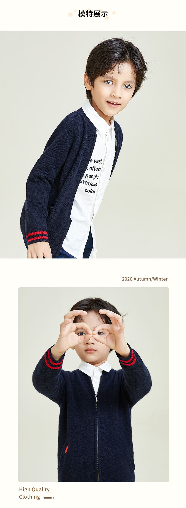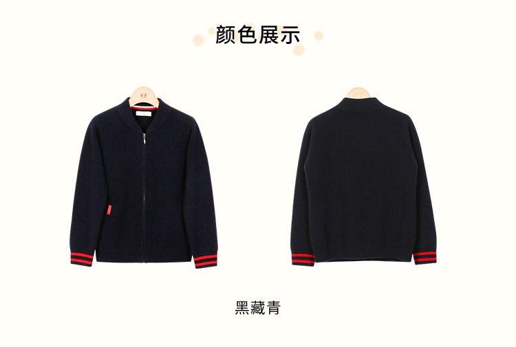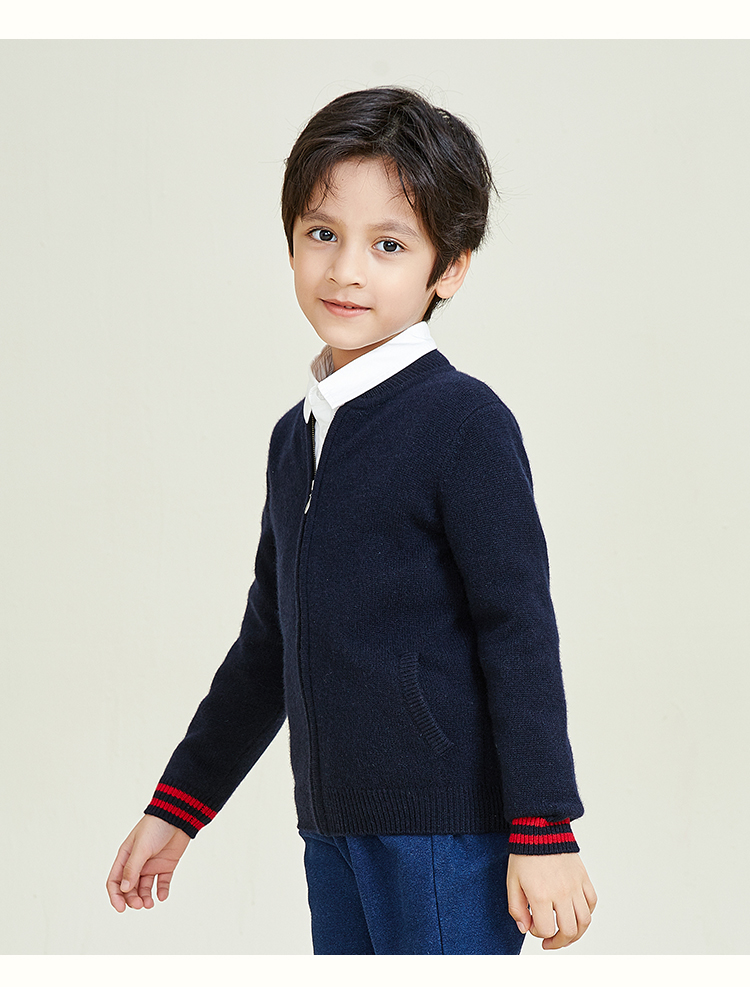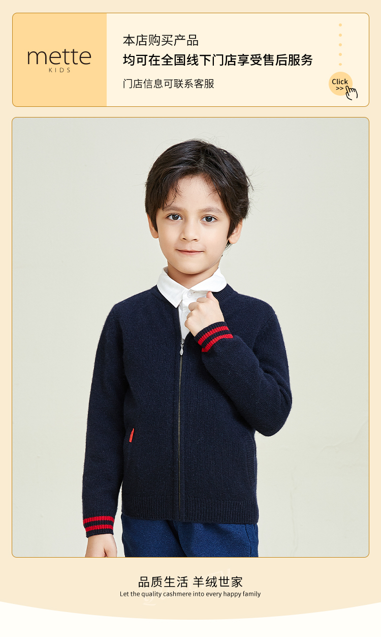mette羊绒世家童装100%山羊绒开衫外套中大童男宝棒球领针织外套