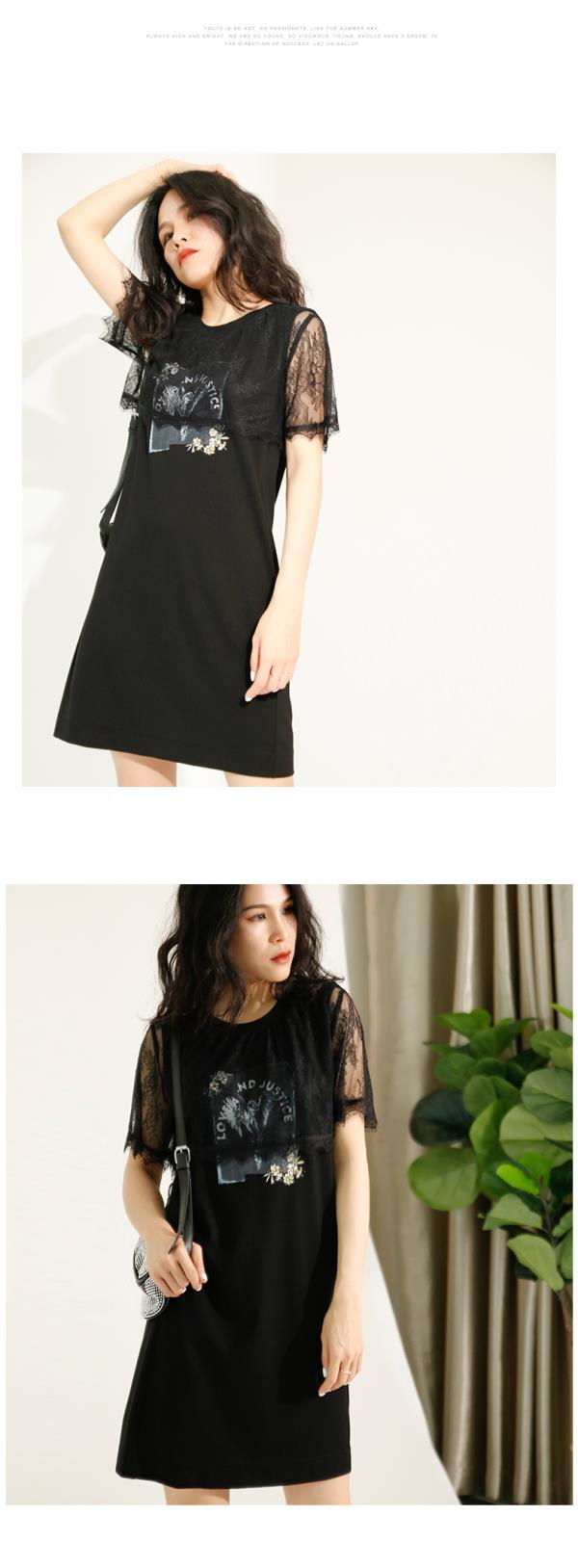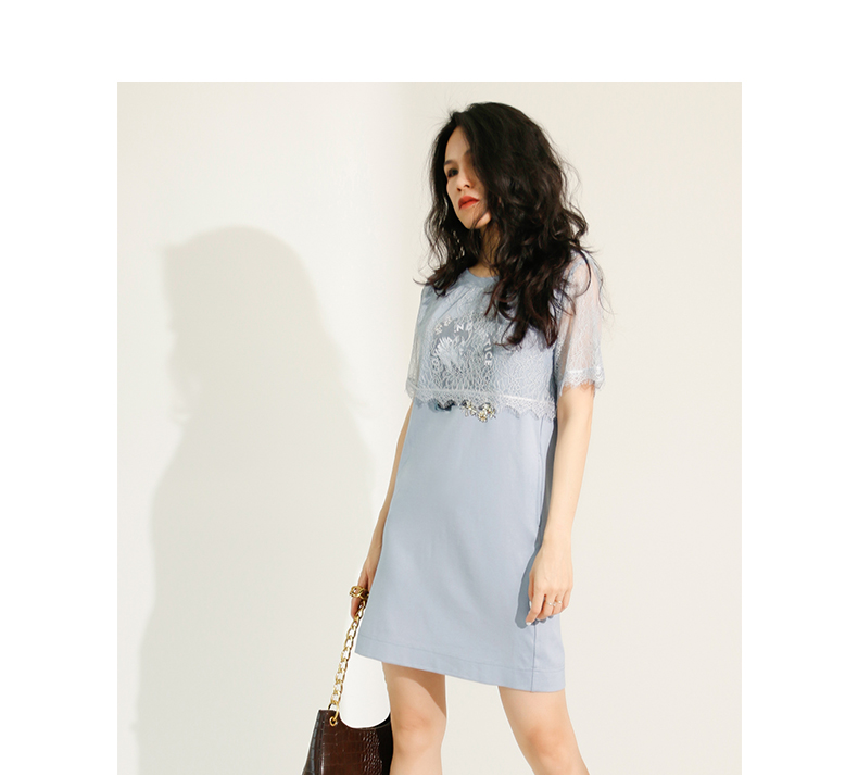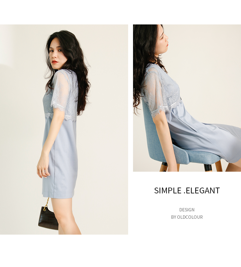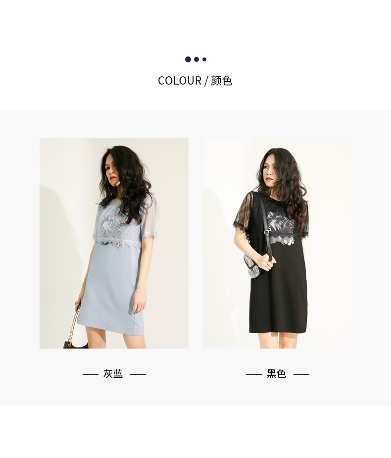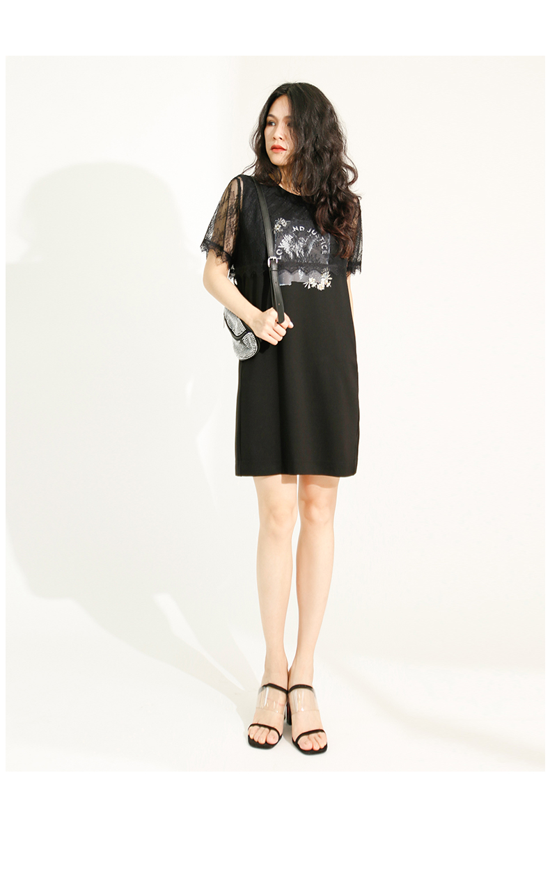ldcolour欧珂蕾丝拼接直筒连衣裙女中长款夏季M22101220
