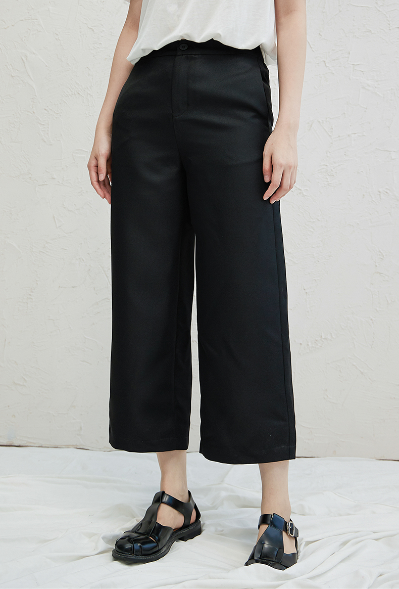 oldcolour黑色休闲直筒阔腿裤早秋2022新款薄款宽松舒适七分裤