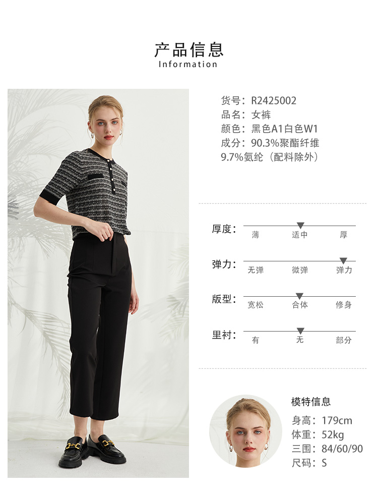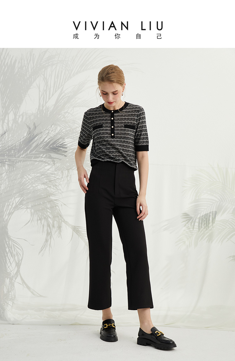 VIVIAN LIU薇薇安刘R2425002春女装新款腹部捏褶通勤直筒长裤