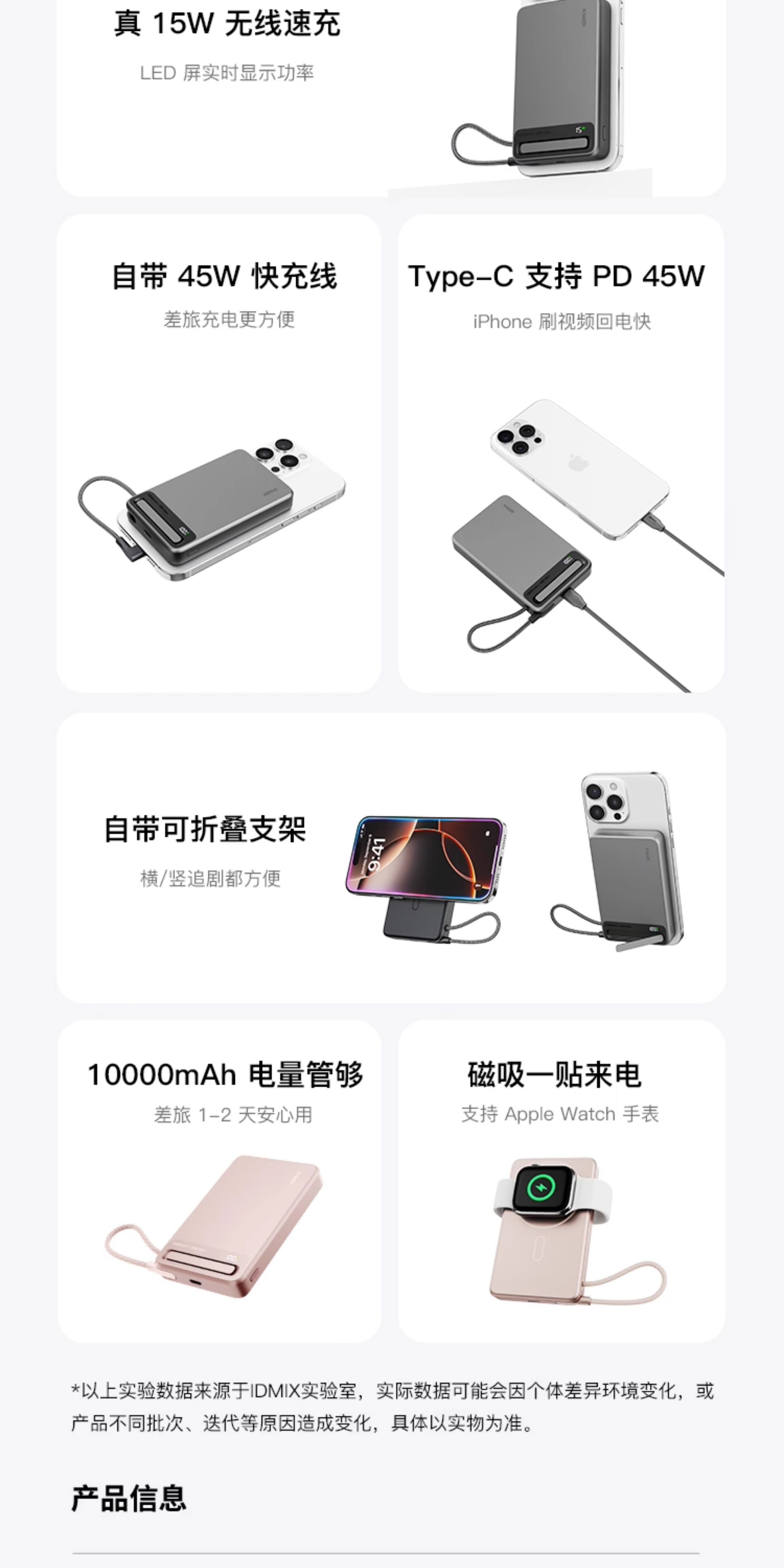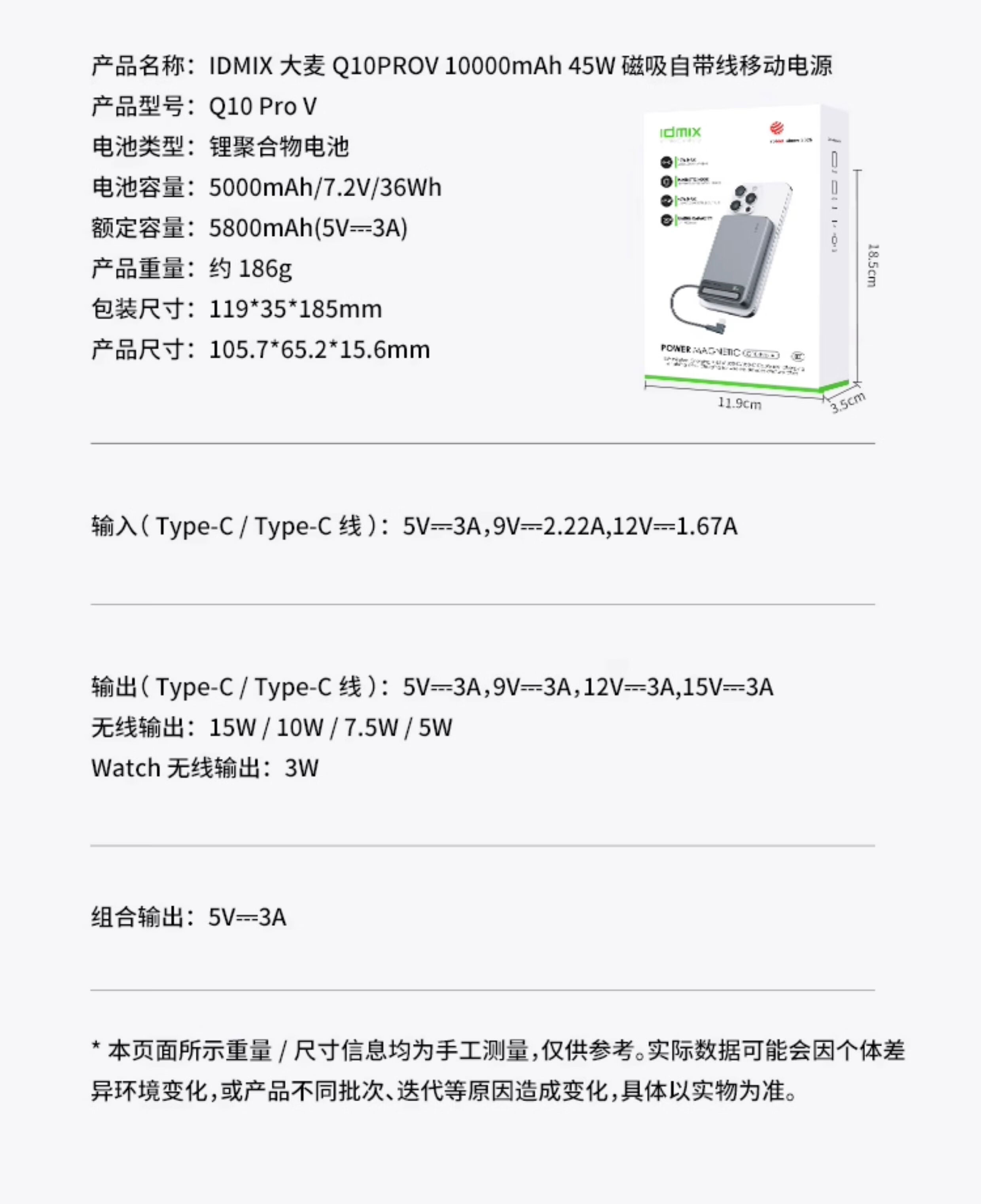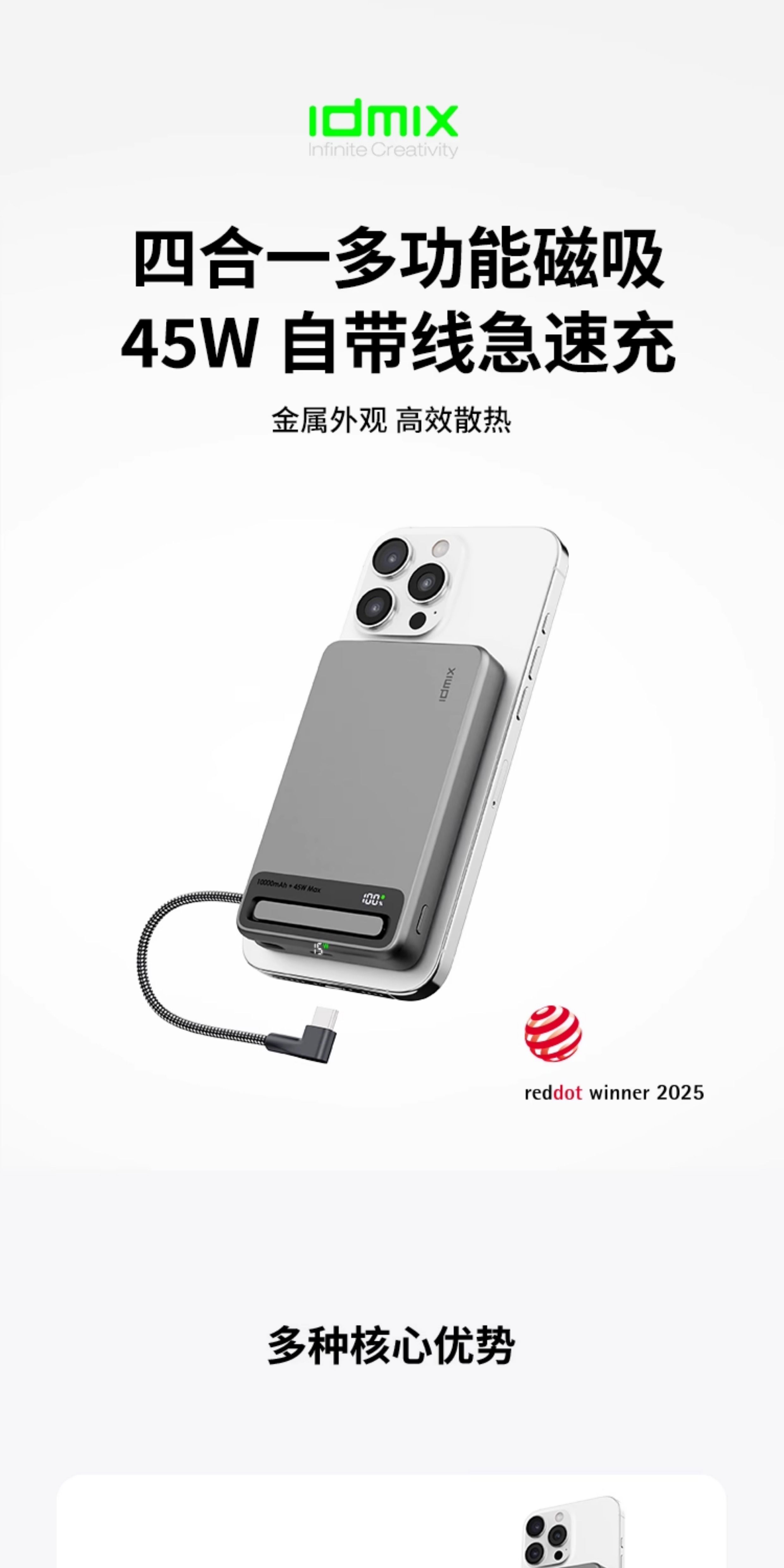 idmix磁吸充电宝45W自带线移动电源 深灰色