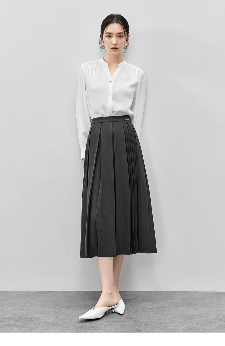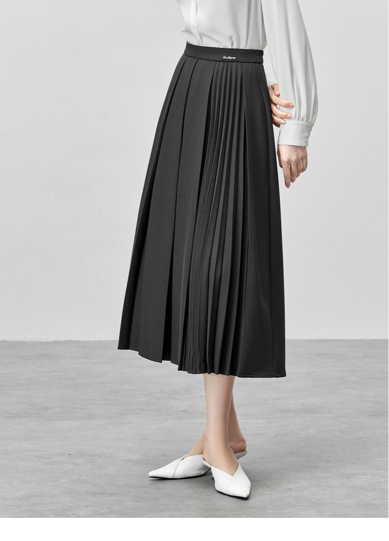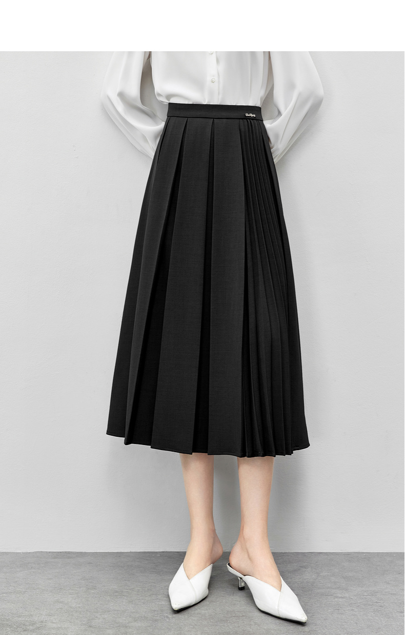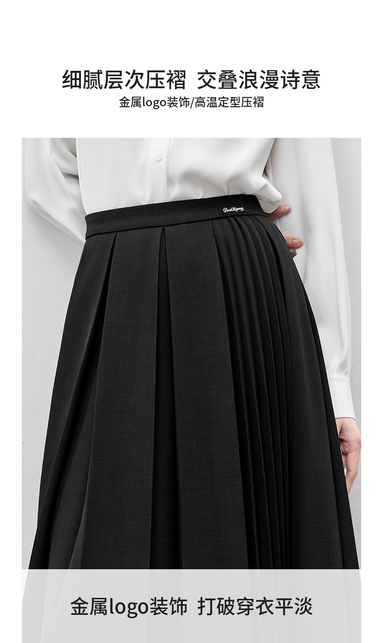 【内购】多巴胺穿搭高腰百褶裙橡筋后腰中长款垂感A字半身裙-153QB3244X