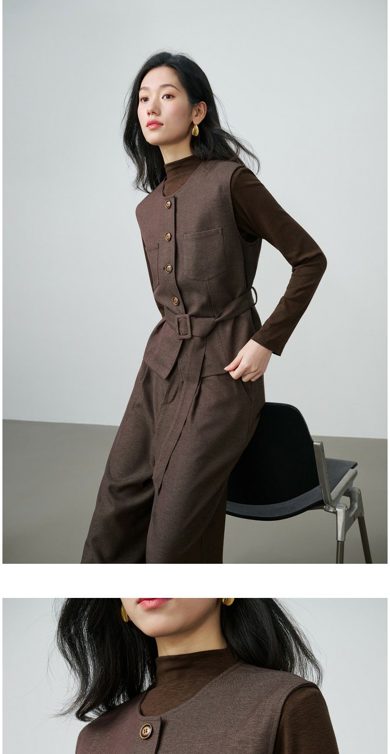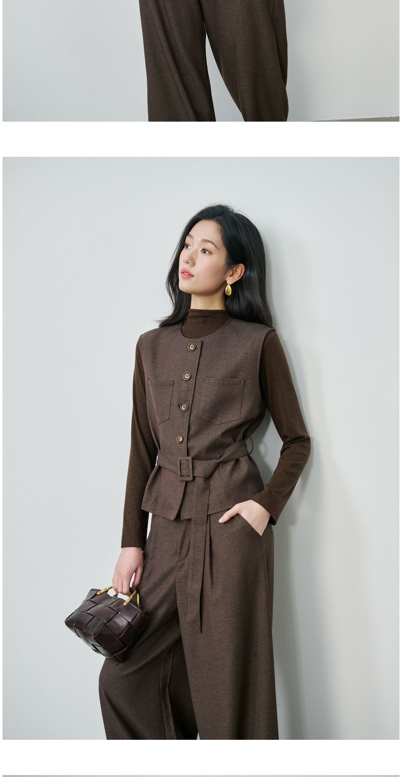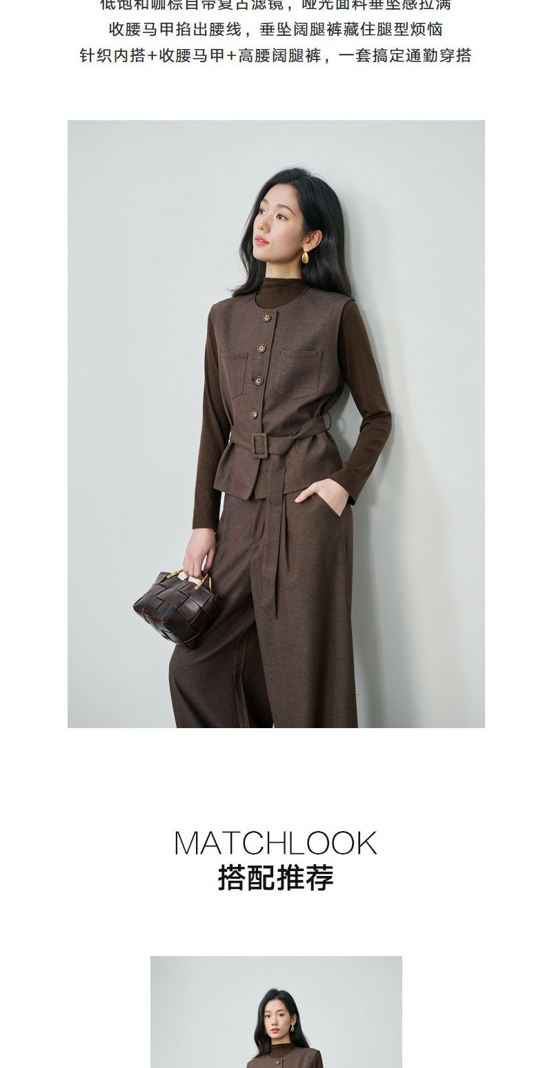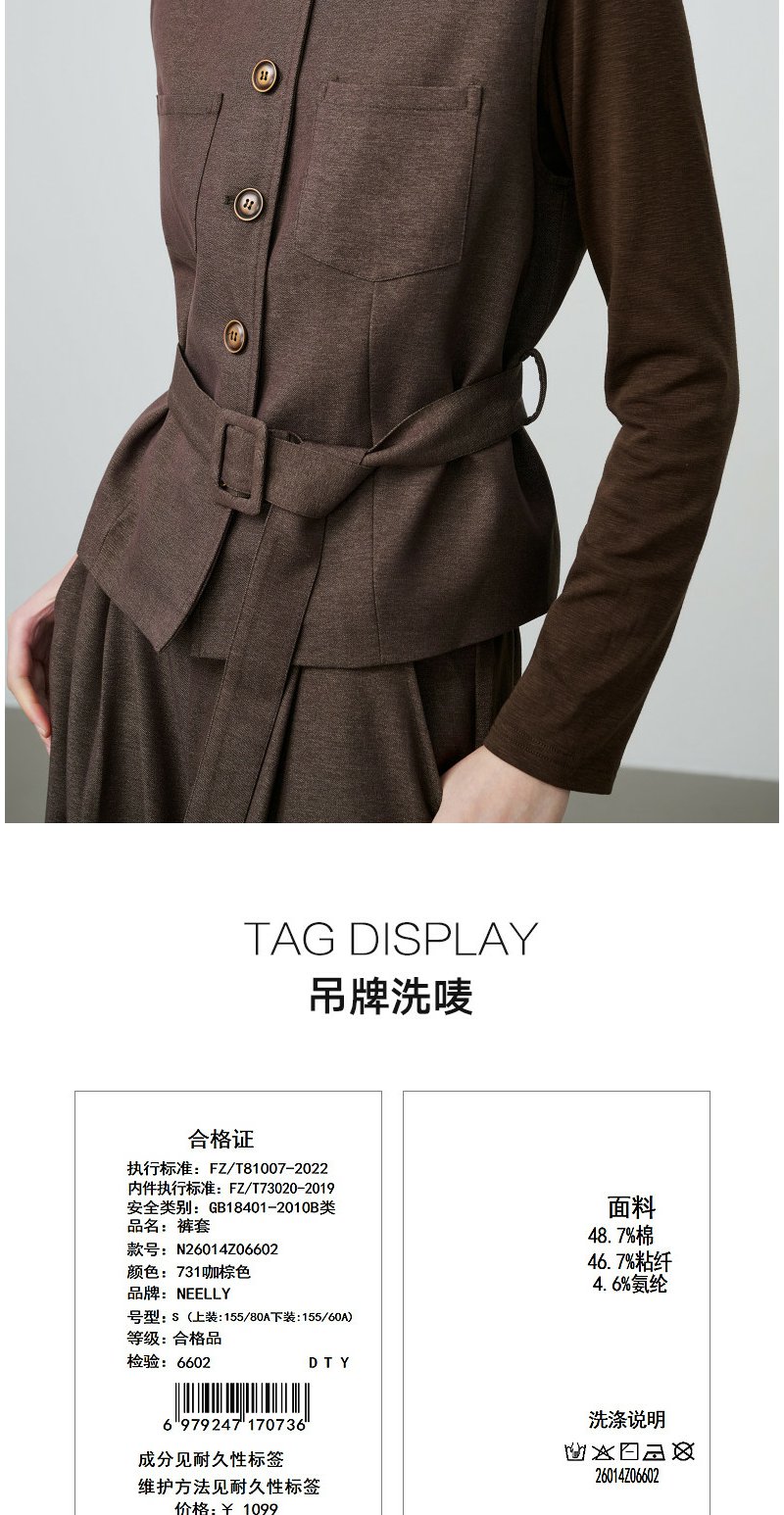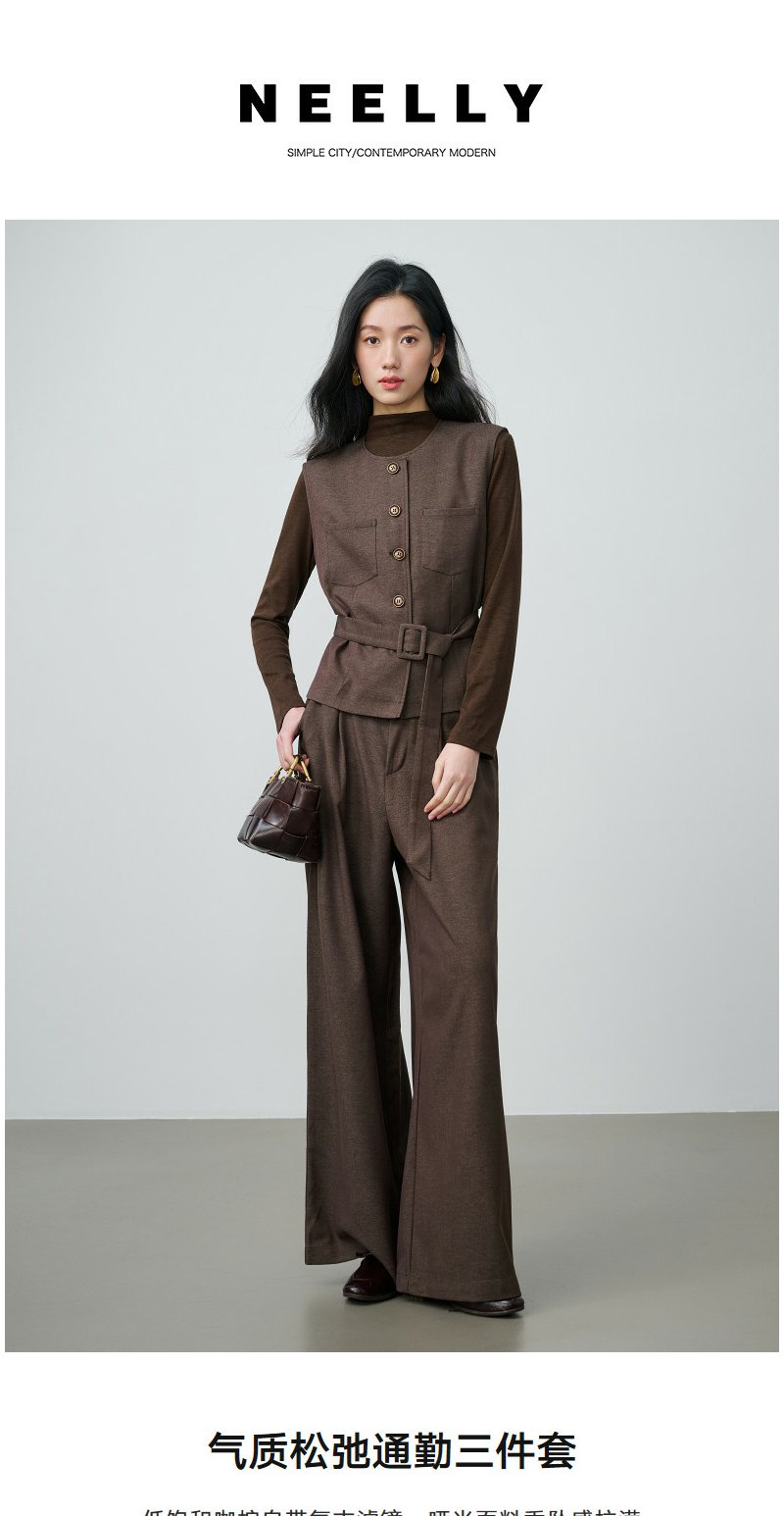 NEELLY纳俪商场同款春新款气质通勤松弛套装女复古休闲马甲三件套N26014Z06602