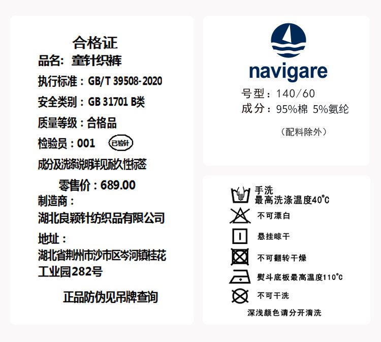 【纳维凯尔】【120-175】意大利小帆船男女童春秋休闲卫裤