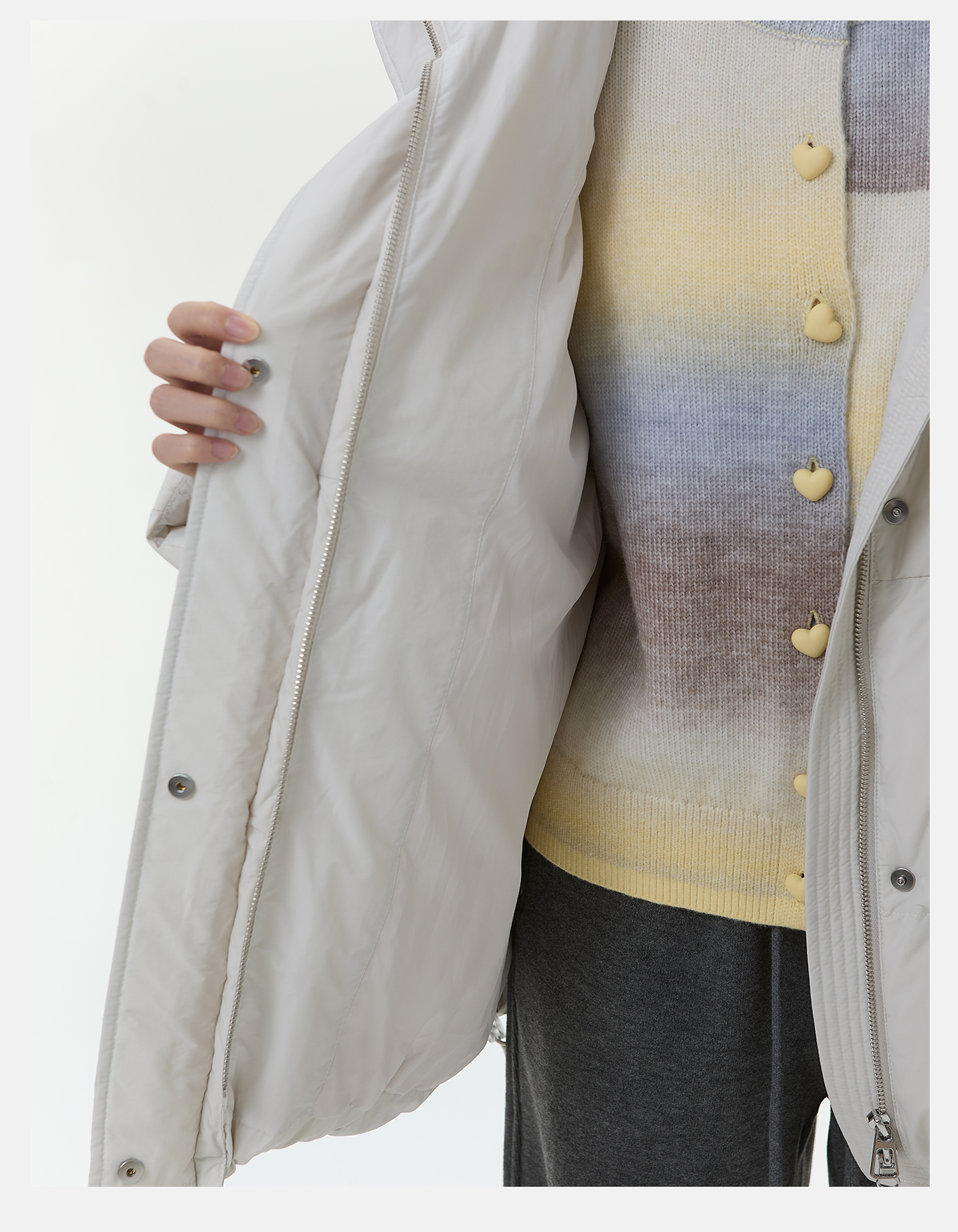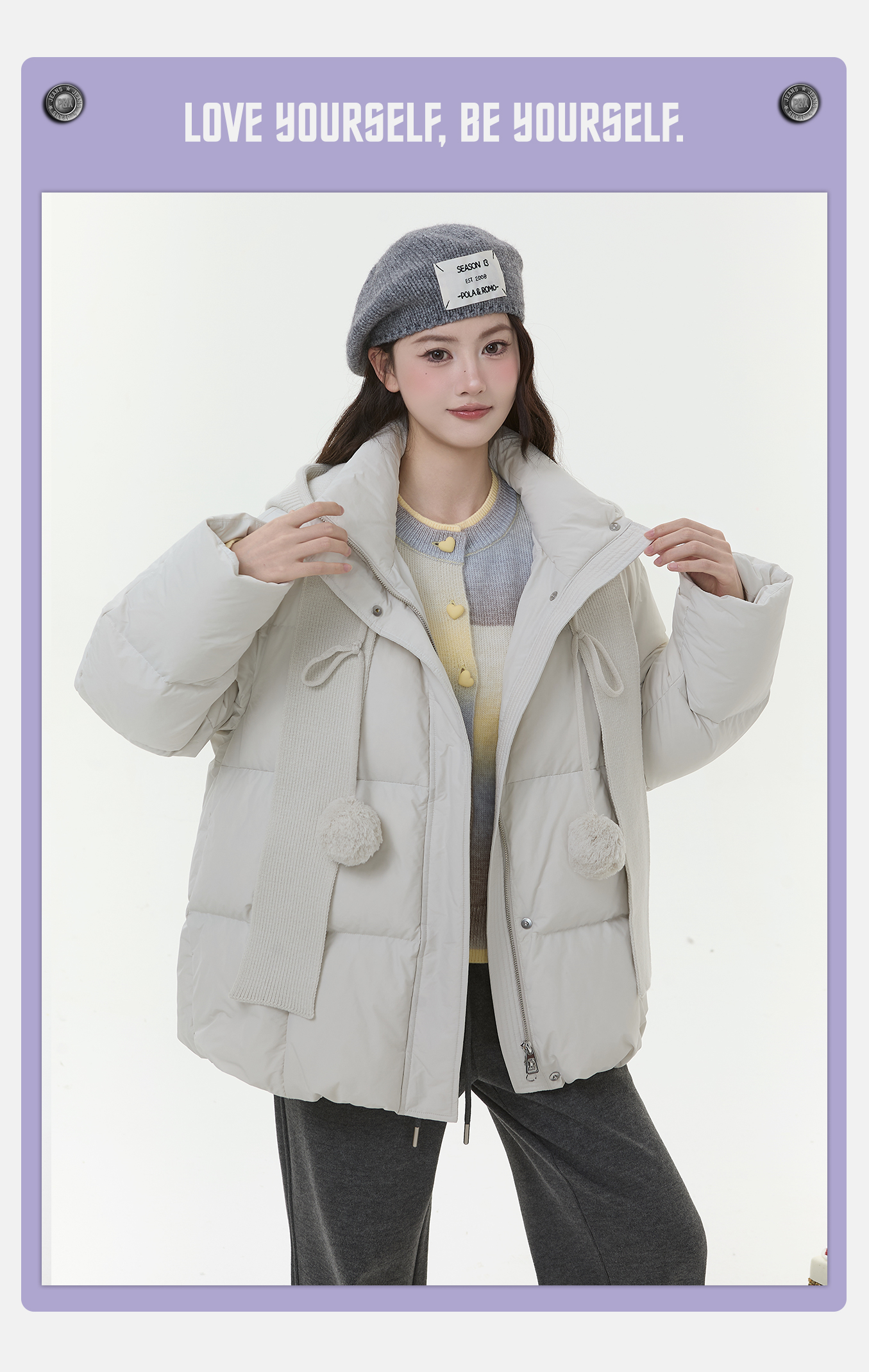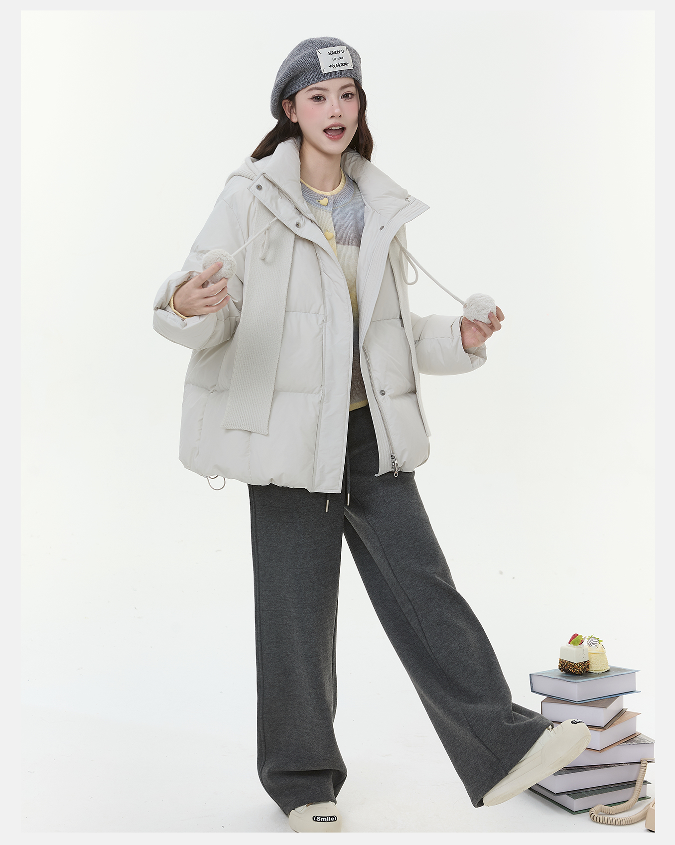 P&X设计师女装2025冬季长袖百搭女连帽短款羽绒服825424062 杏色