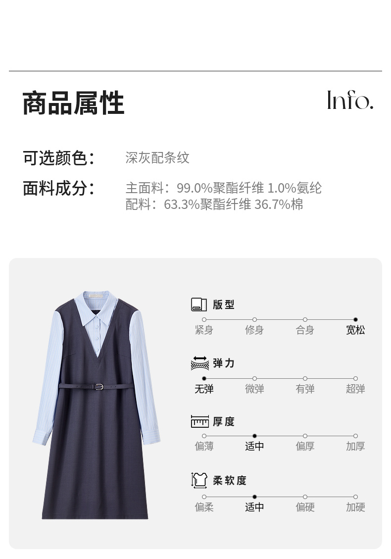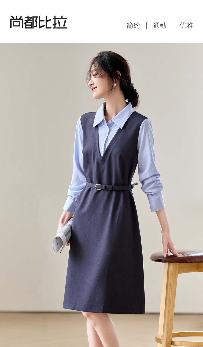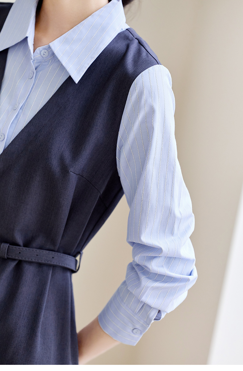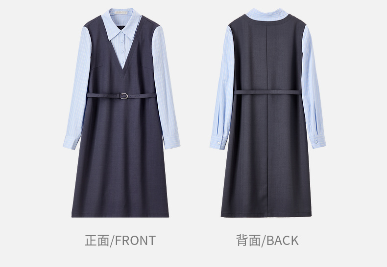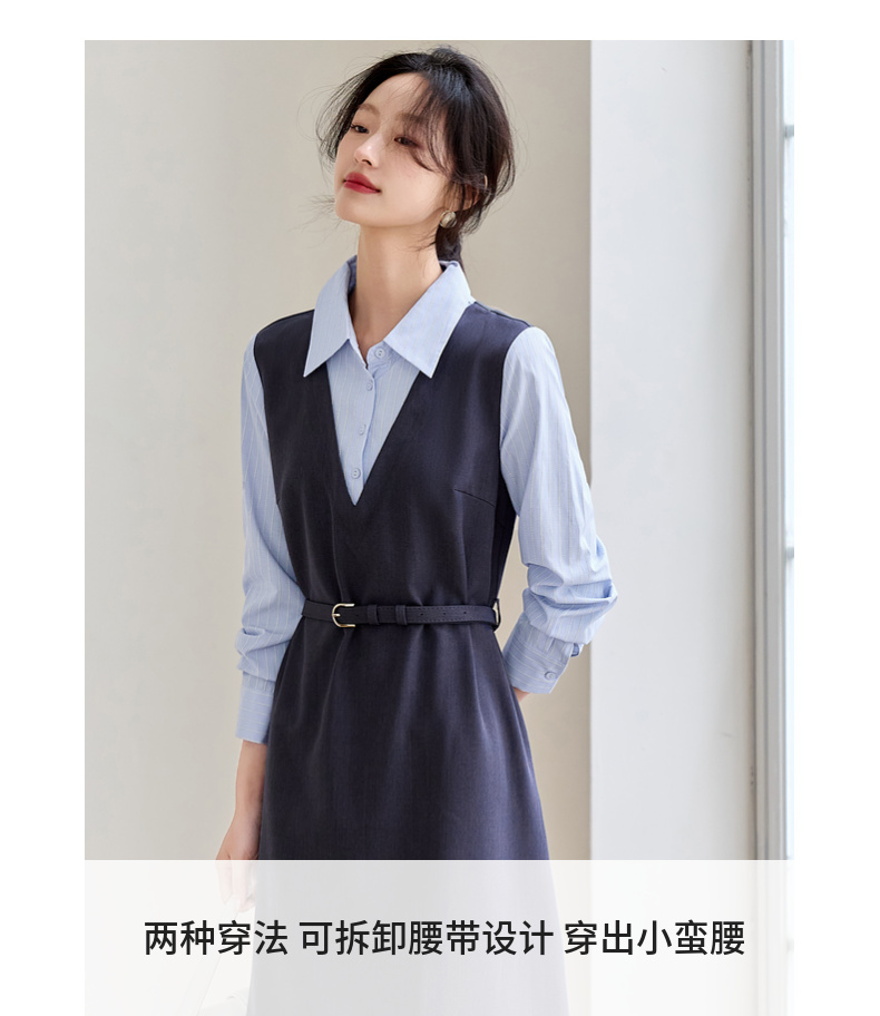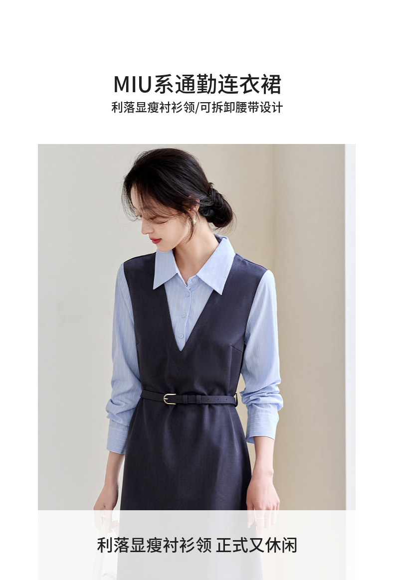 【内购】25年春简约系列轻职场通勤假两件省心衬衫长袖拼接智性连衣裙-153LA3254X