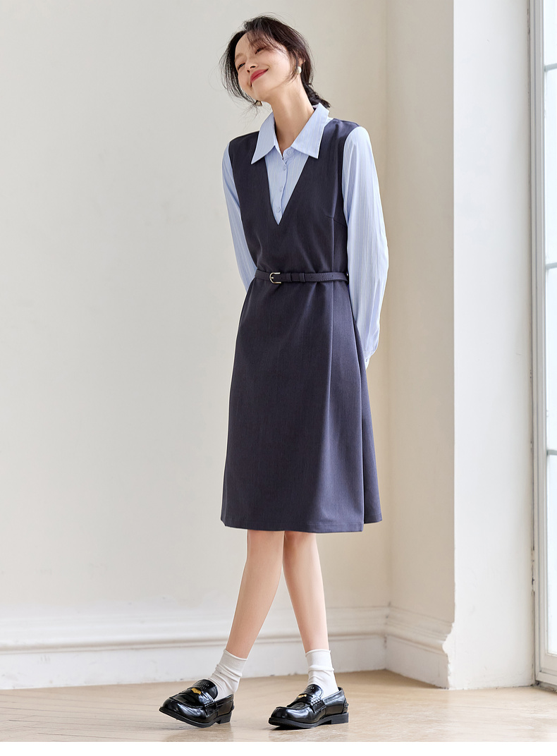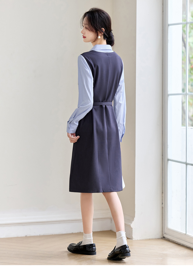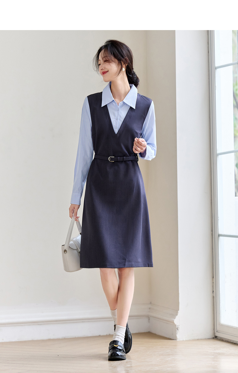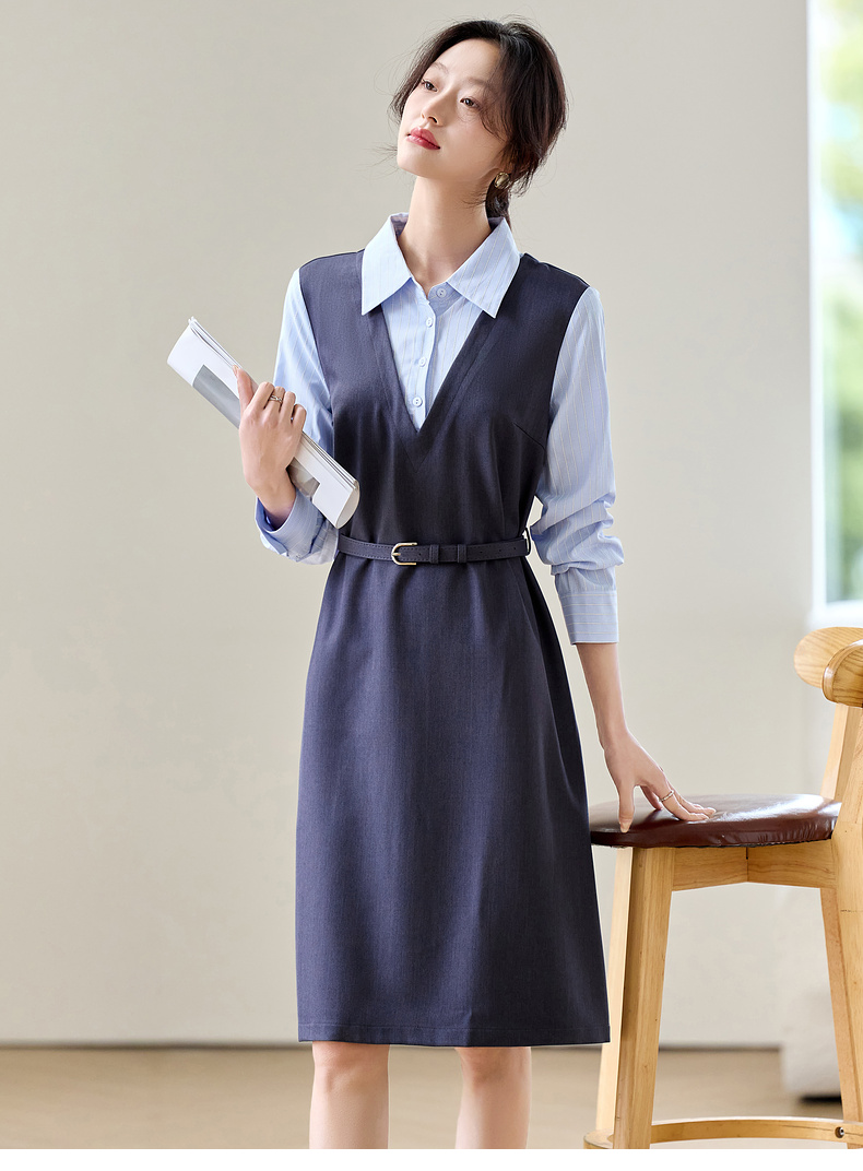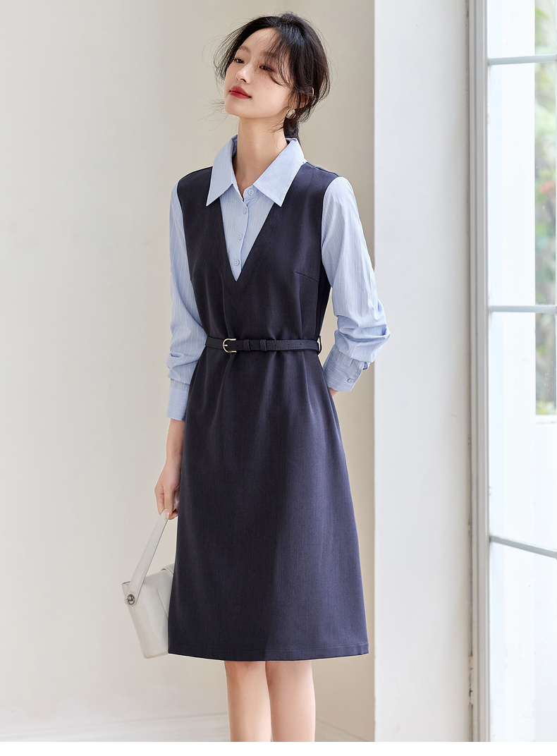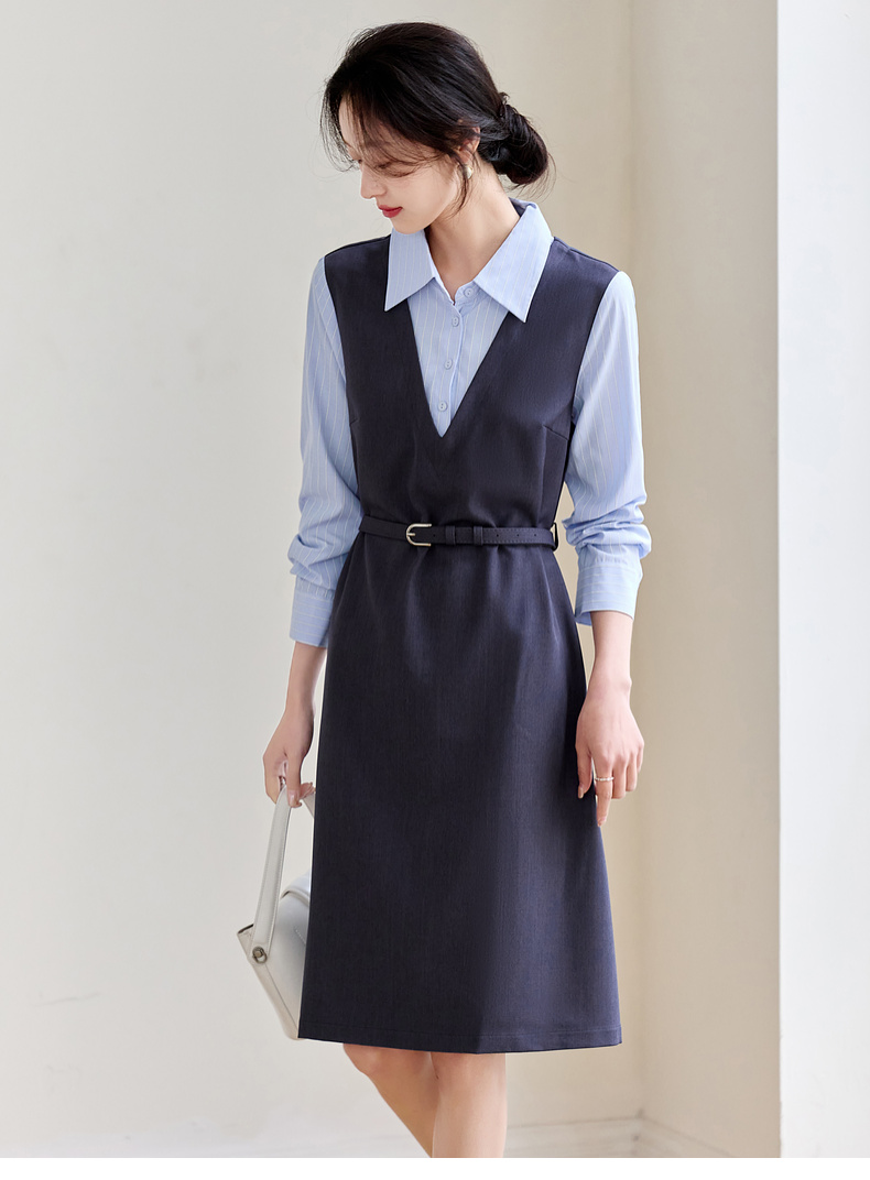 【内购】25年春简约系列轻职场通勤假两件省心衬衫长袖拼接智性连衣裙-153LA3254X