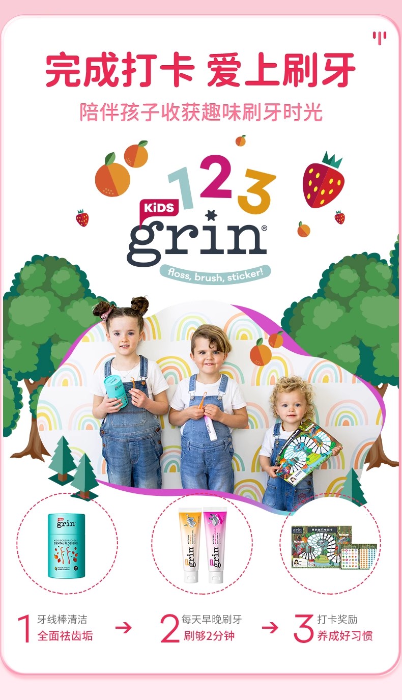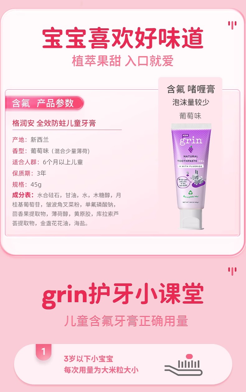 Grin儿童牙膏清洁呵护牙齿天然 含氟70g 6月+