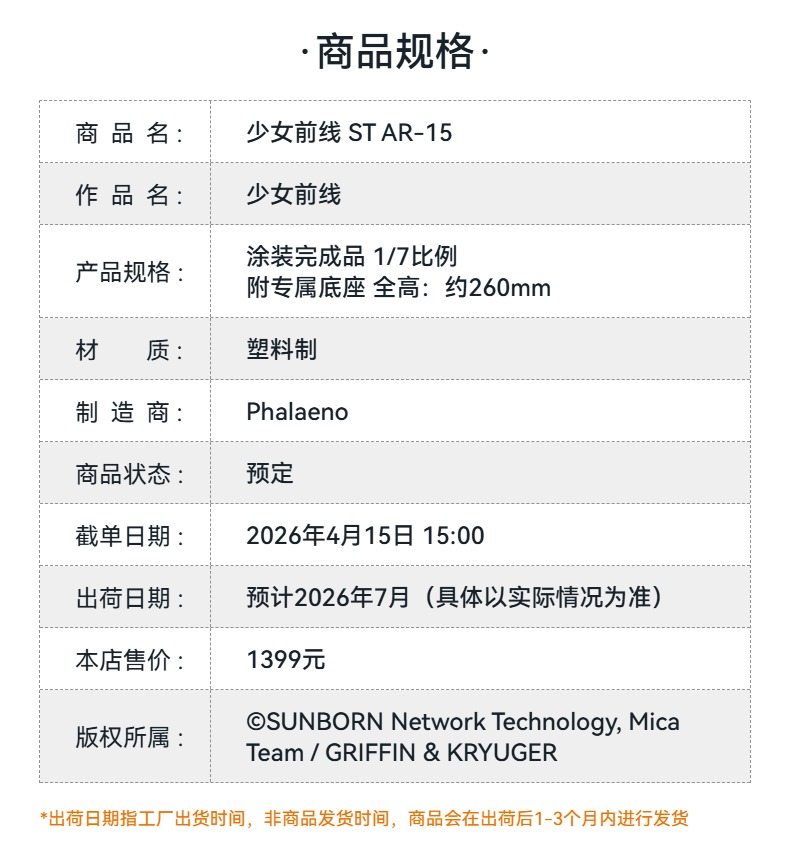 【GSC预售定金】1/7标准比例 少女前线 ST AR-15 少女前线