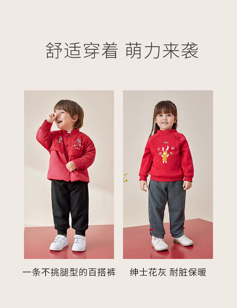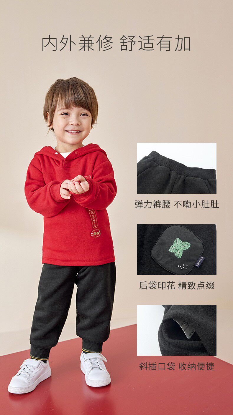 英氏儿童裤子22秋冬新款双层加厚保暖长裤童装休闲裤YRKCJ42329A