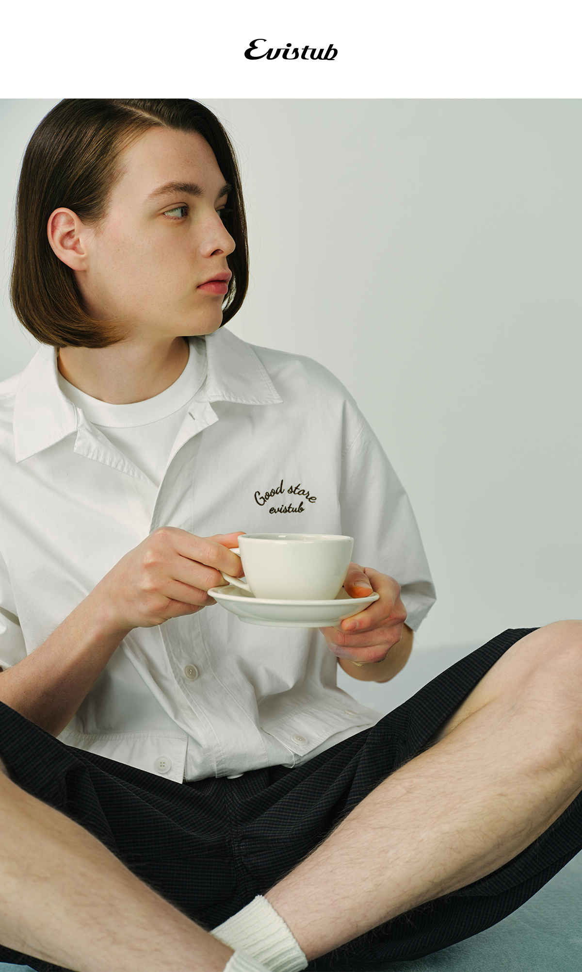 Evistub/E-5CCS132/全棉保龄球短袖衬衫男夏