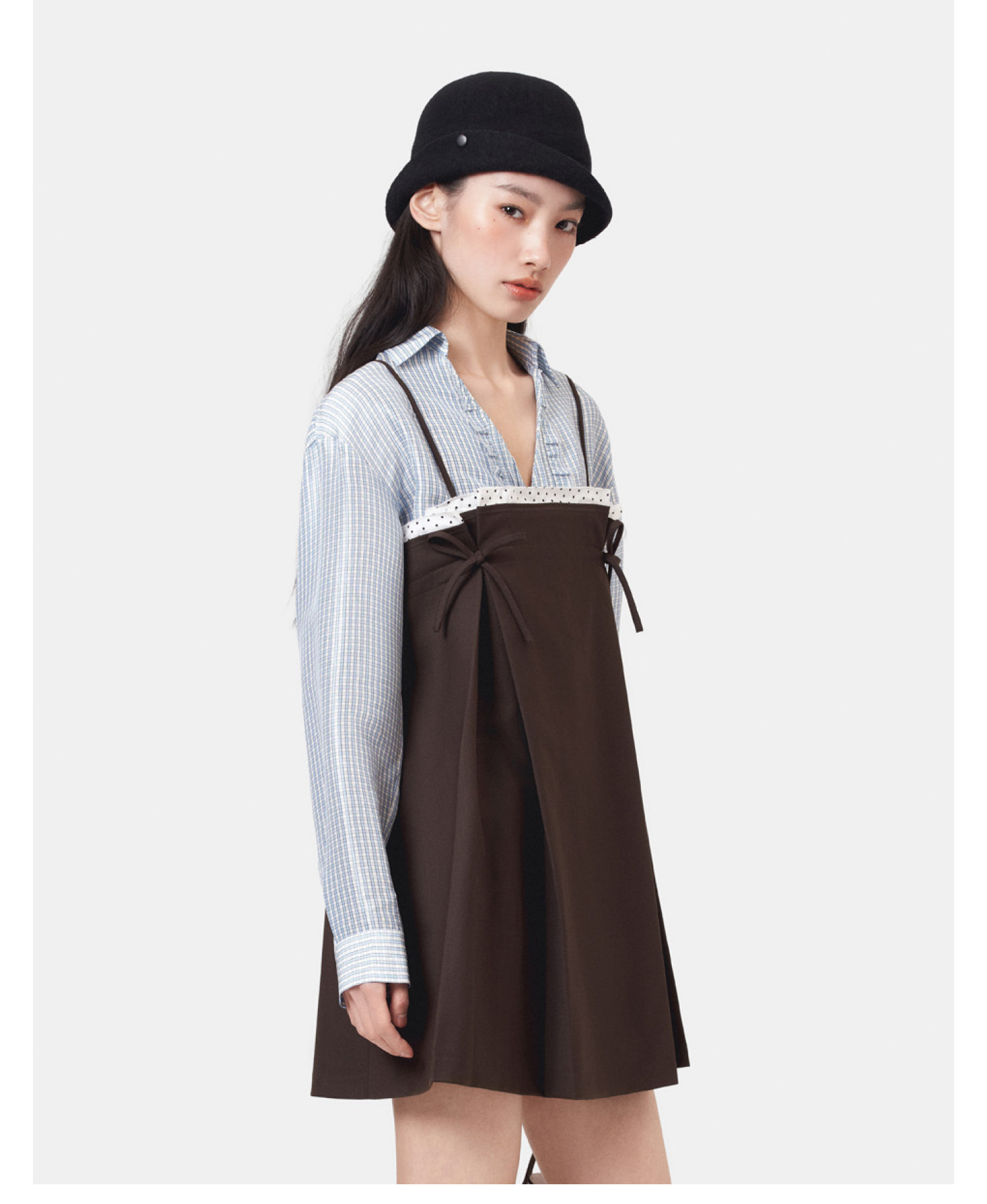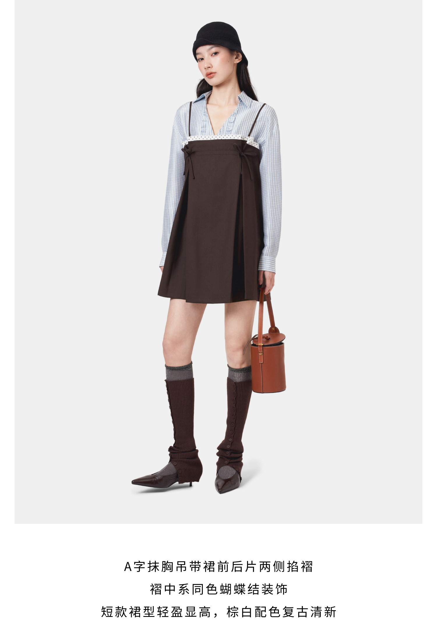 HERLIAN 2026年春季新品蝴蝶结抽褶设计吊带抹胸A字连衣裙
