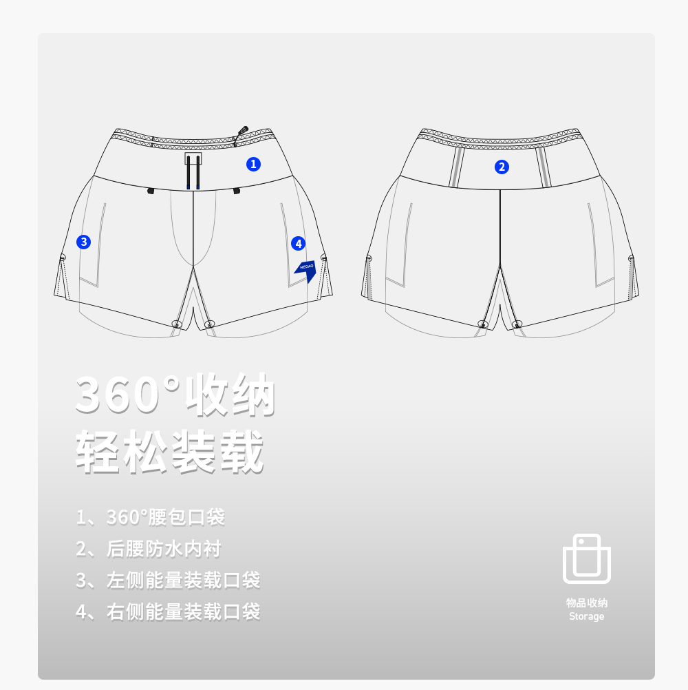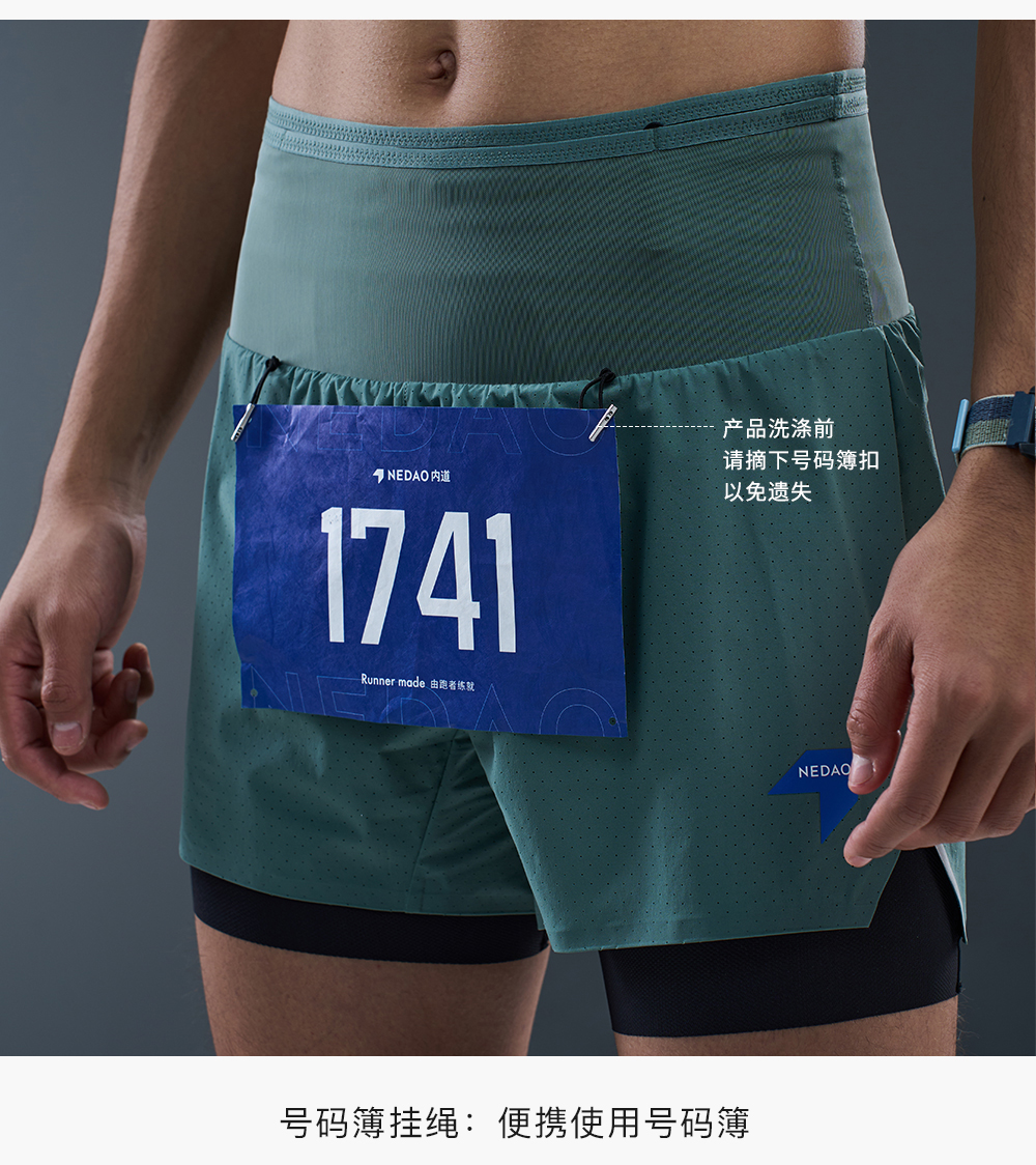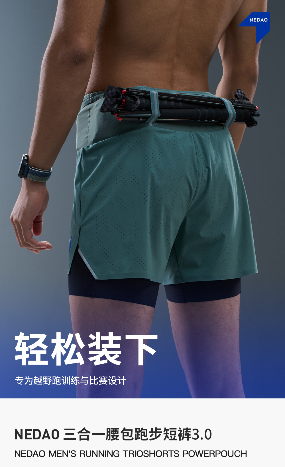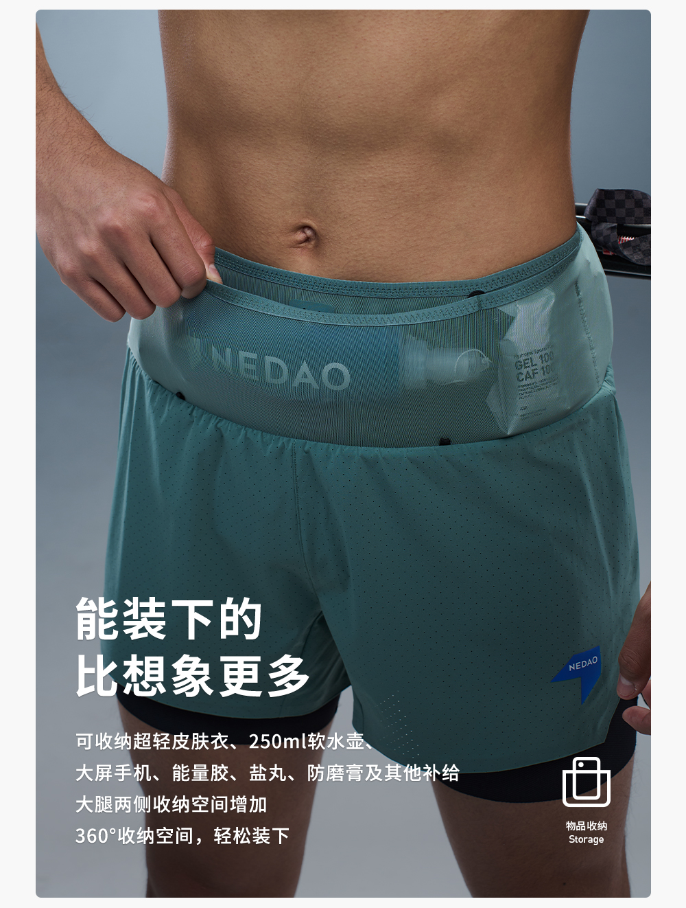 NEDAO内道越野跑步腰包收纳快干高弹带内衬三合一可挂杖新款运动短裤