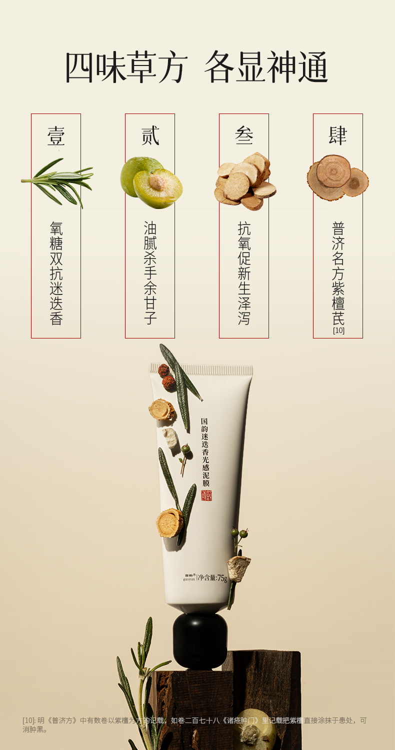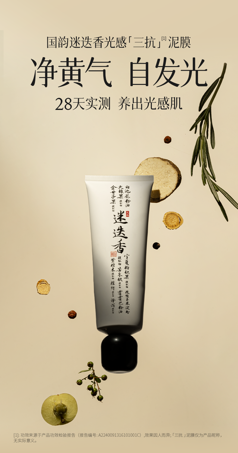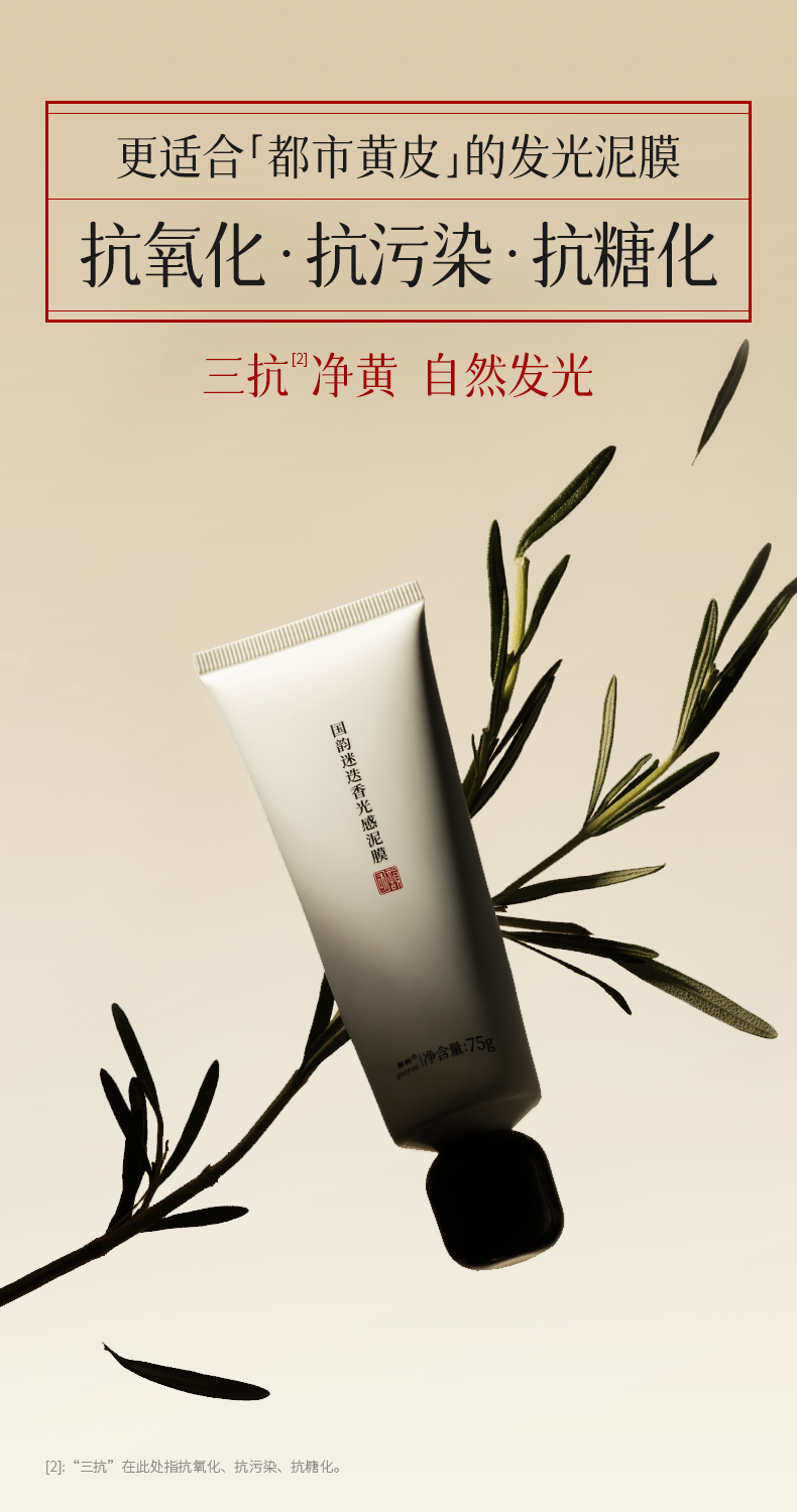 国韵迷迭香光感泥膜75g*1,清洁抗氧化,买即赠同款体验装8g*1