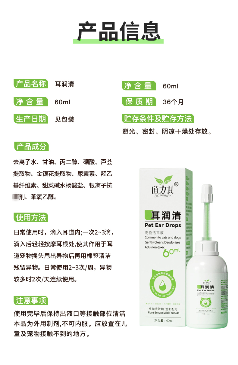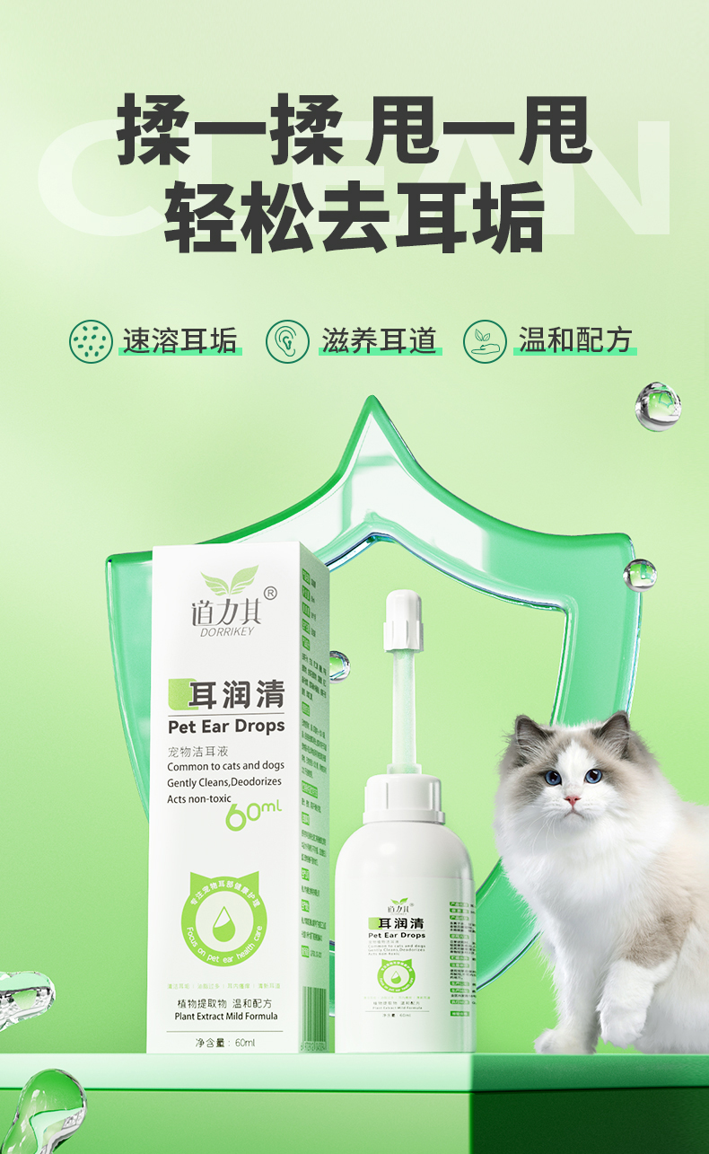 道力其耳润清宠物洁耳液60ml 耳部清洁 硅胶头更舒适宠物清洁用品批发