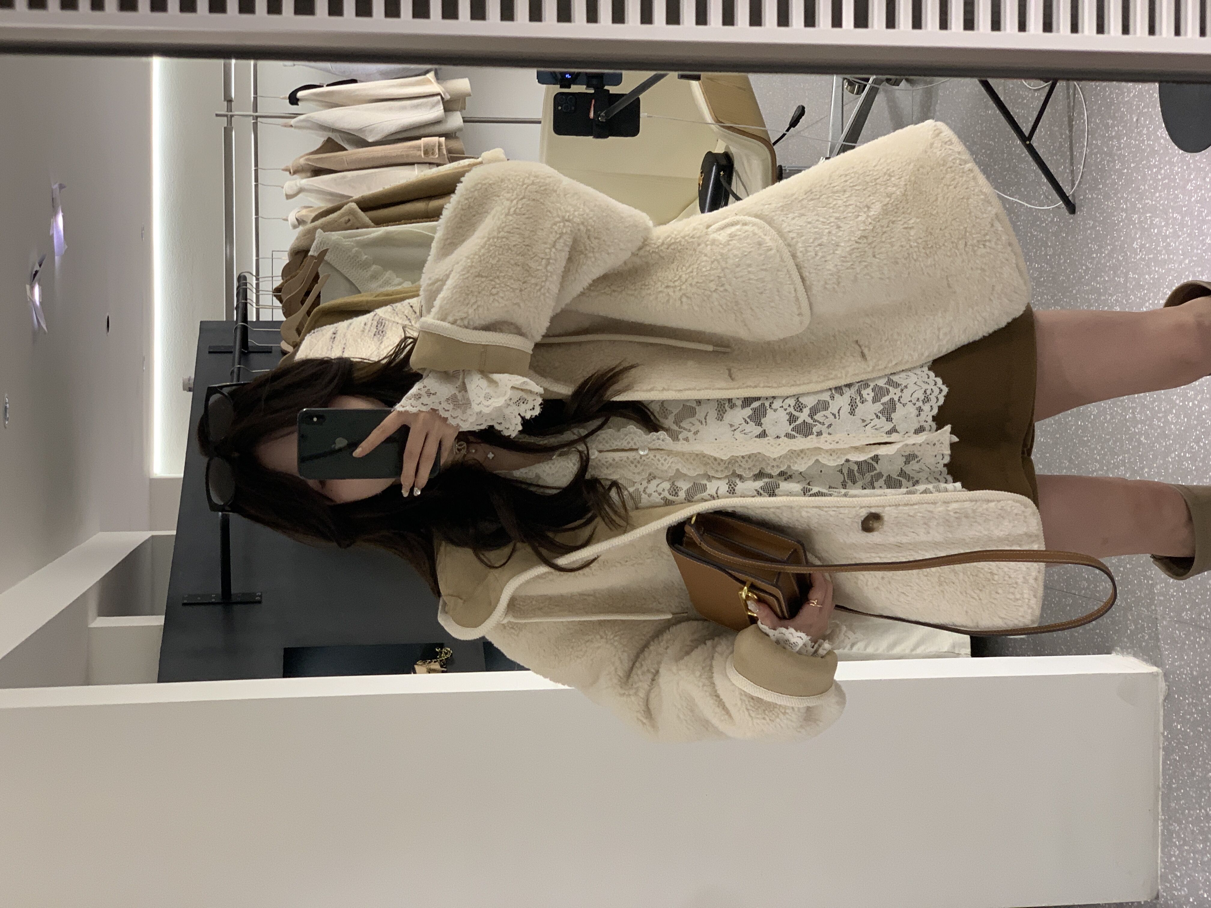 现货【小甜豆】设计师高定秋冬保暖宽松加厚氛围感戴帽毛毛外套女