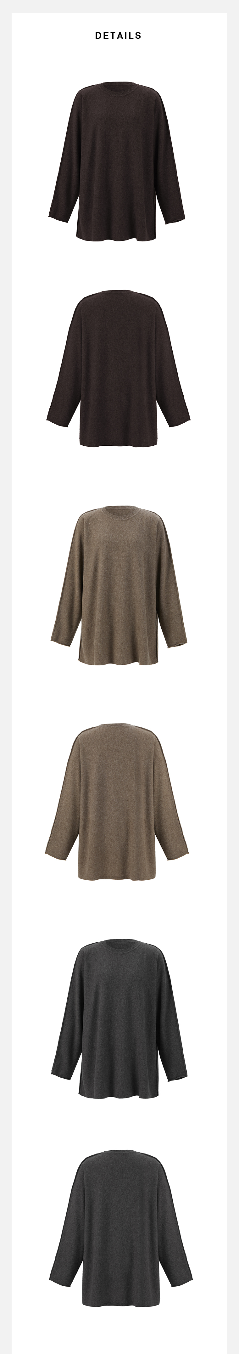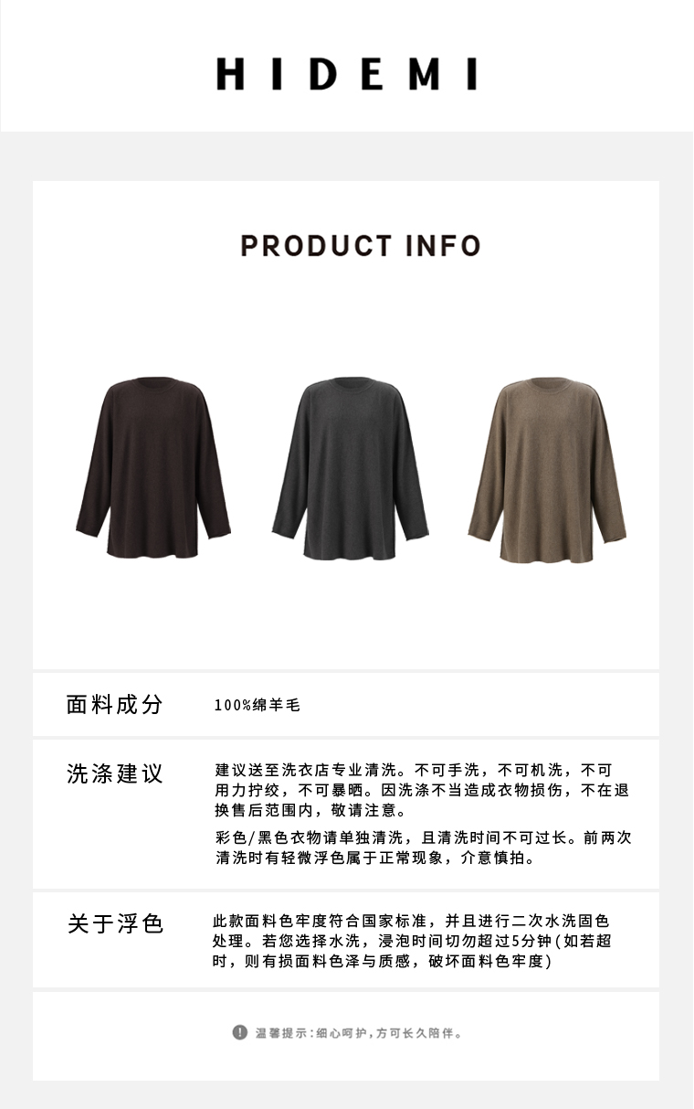 HIDEMI澳洲美利奴羊毛廓形外缝圆领极简宽松经典百搭大毛衣 麦驼灰/深灰色/乌木棕紫