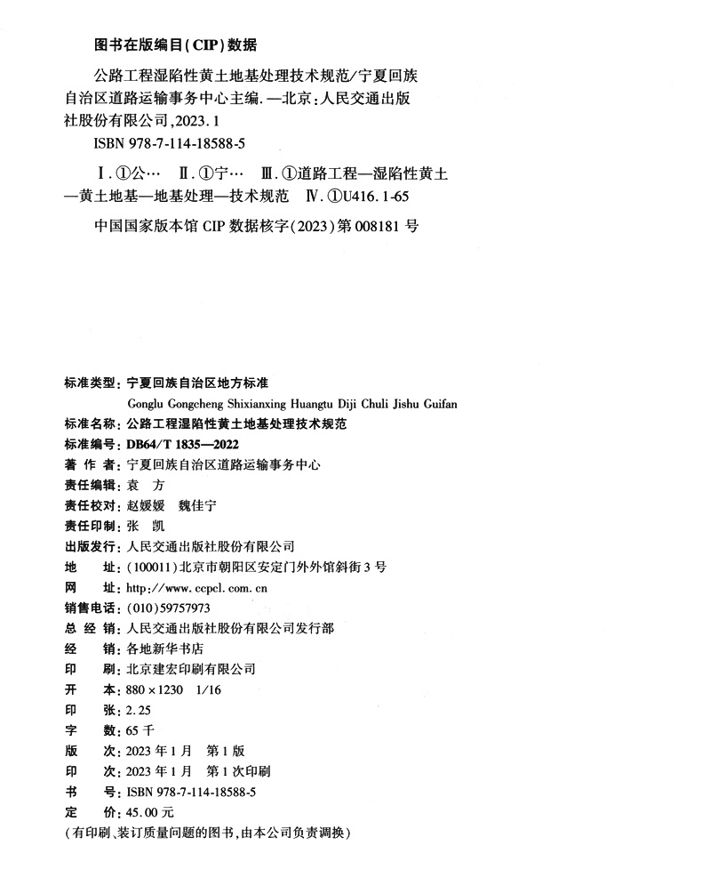 书名:公路工程湿陷性黄土地基处理技术规范