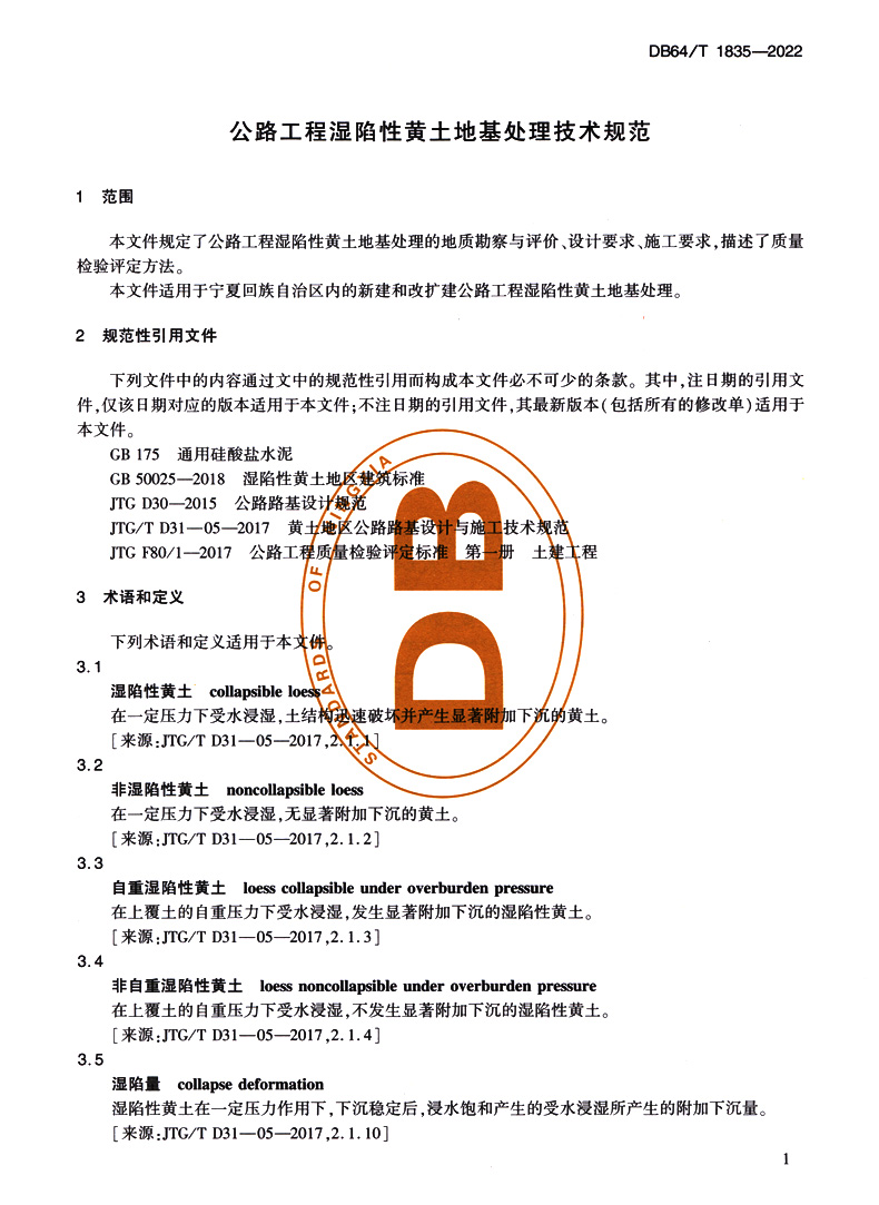 公路工程湿陷性黄土地基处理技术规范