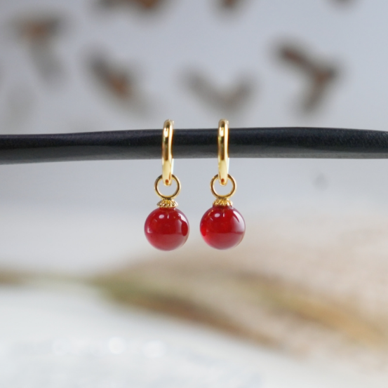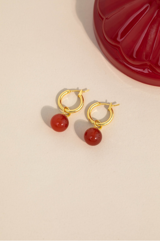 玛瑙从古至今都深受人们欢迎,是古代的“七宝”之一,西方人称“幸福之石”,象征着夫妻和睦恩爱,调整自己与爱人的情感。 鲜艳饱满的红色与其材质的特殊性,无一不体现了佩戴玛瑙的好处。 天然的材质使得每一对耳环颜色、纹理各有不同,也代表了每一对的独特性与未知性。