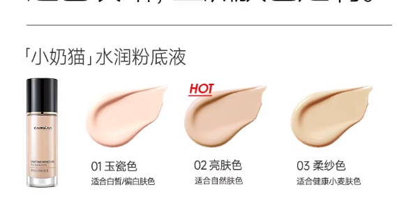 【卡姿兰】时刻沁润粉底液 02#(小奶猫)亮肤色/01#(小奶猫)玉瓷色 送517166/167颜小谜柔雾轻纱蜜粉裸装1个