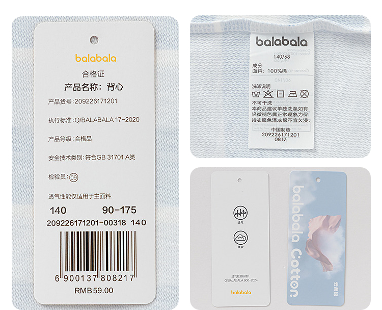 【balaOne】巴拉巴拉儿童背心男女宝宝打底纯棉中童无袖上衣内穿