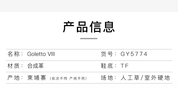 ADIDAS/阿迪达斯GOLETTO VIII TF碎钉成人训练足球鞋男GY5774