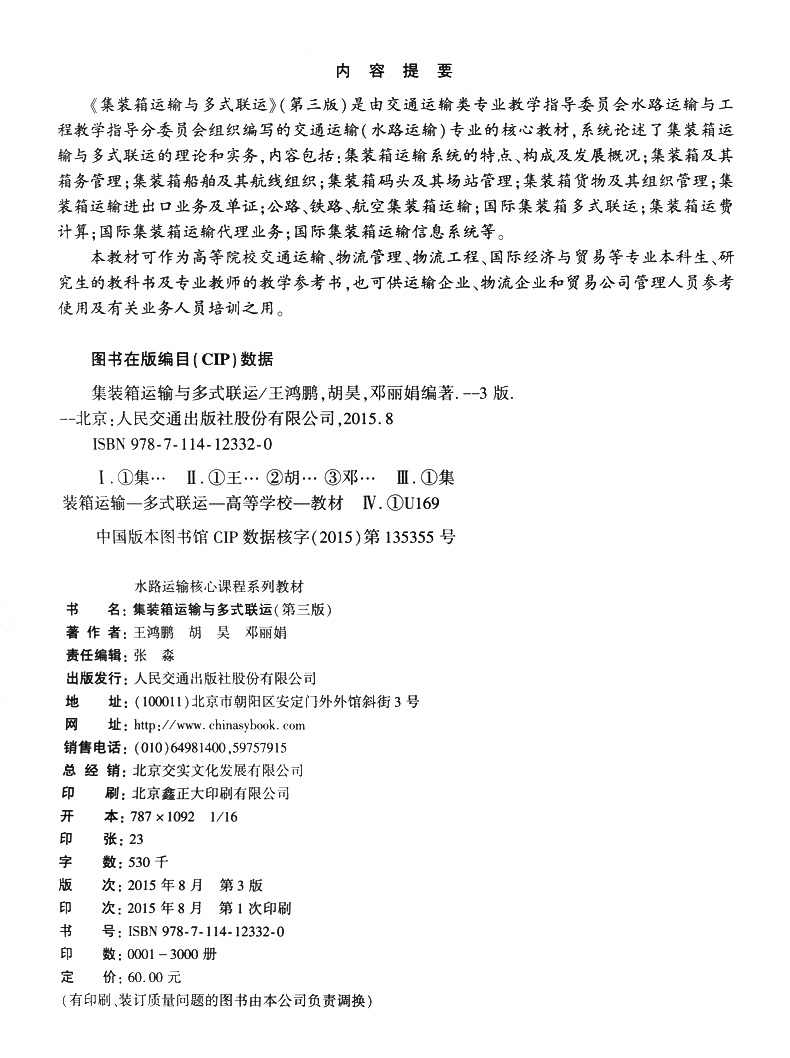 书名:集装箱运输与多式联运(第三版)