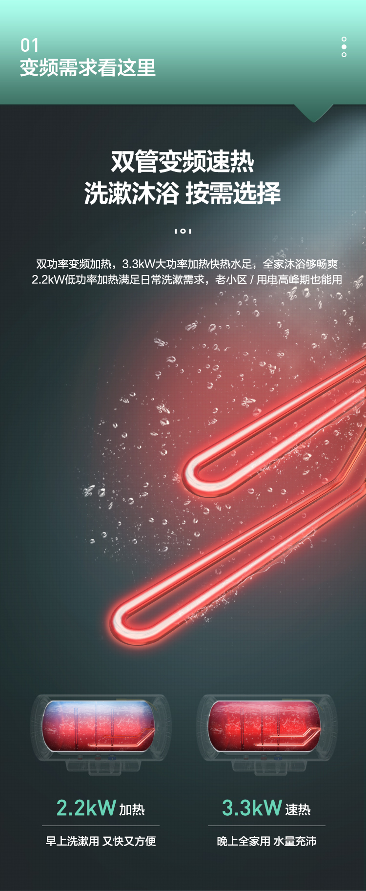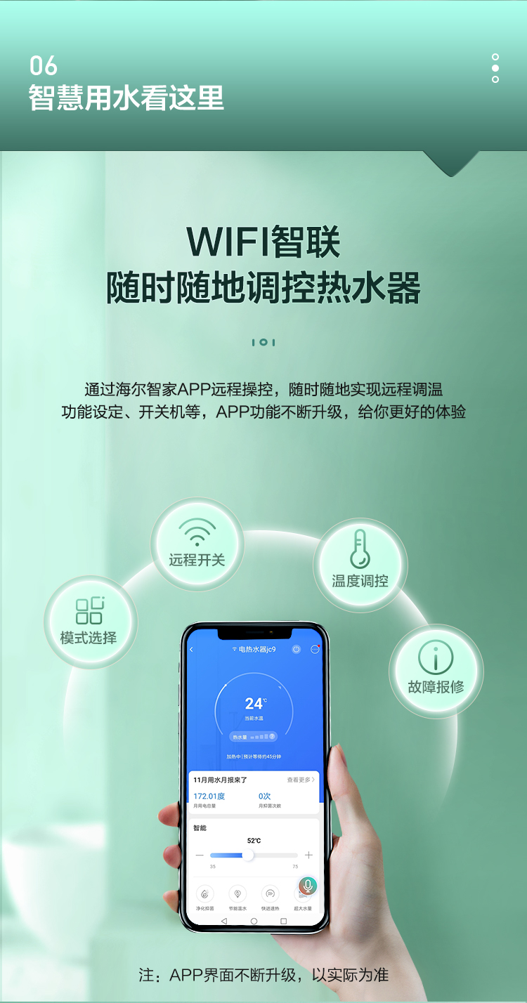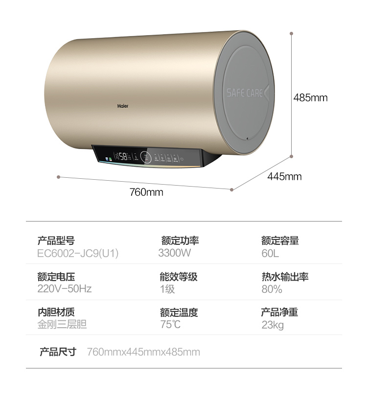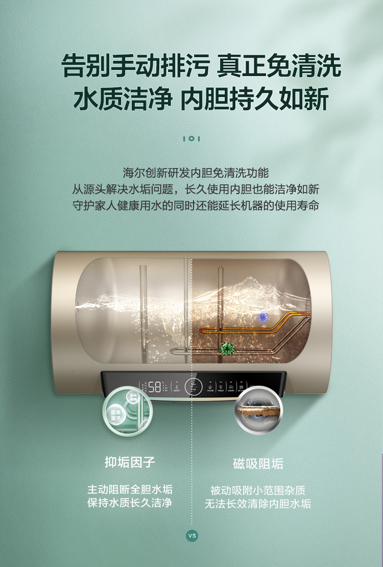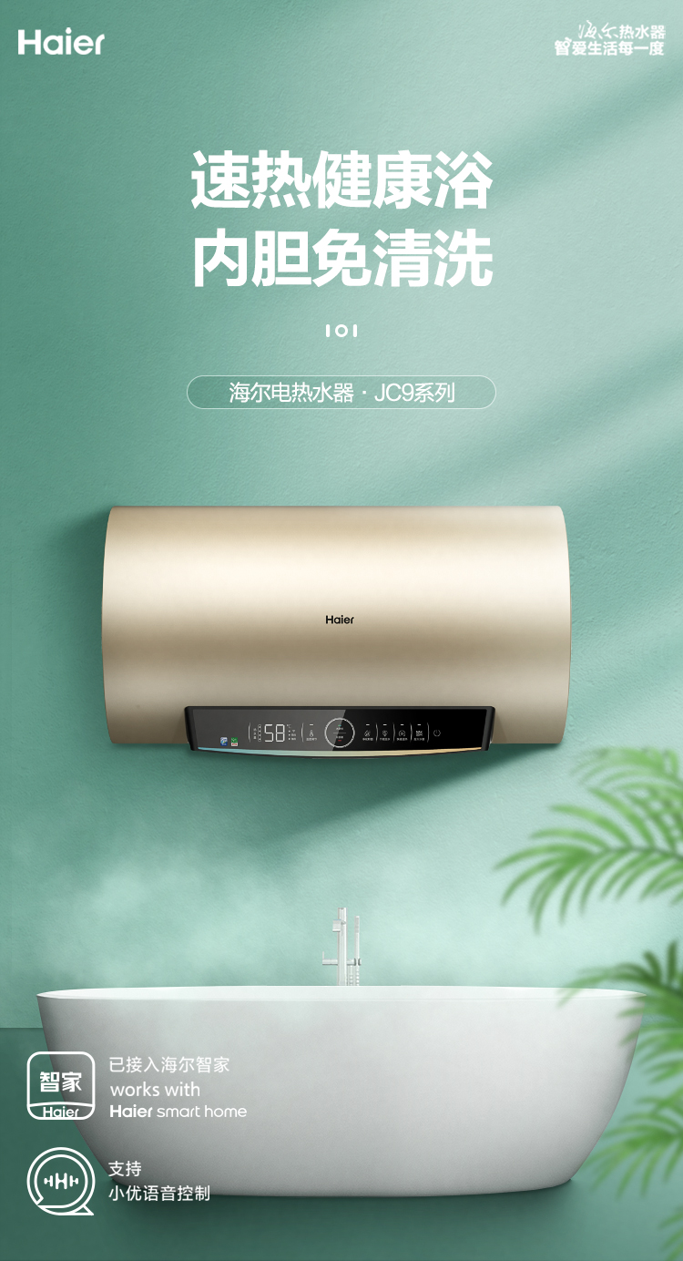 海尔60升家用电热水器 3.3KW双管变频速热 净水洗内胆免清洗安全节能wifi智控 EC6002-JC9U1,EC8002-JC9U1