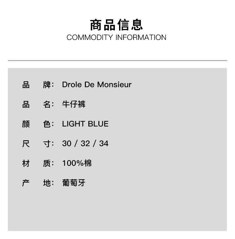 Drole De Monsieur Le Jean Délavé 法式复古水洗牛仔裤
