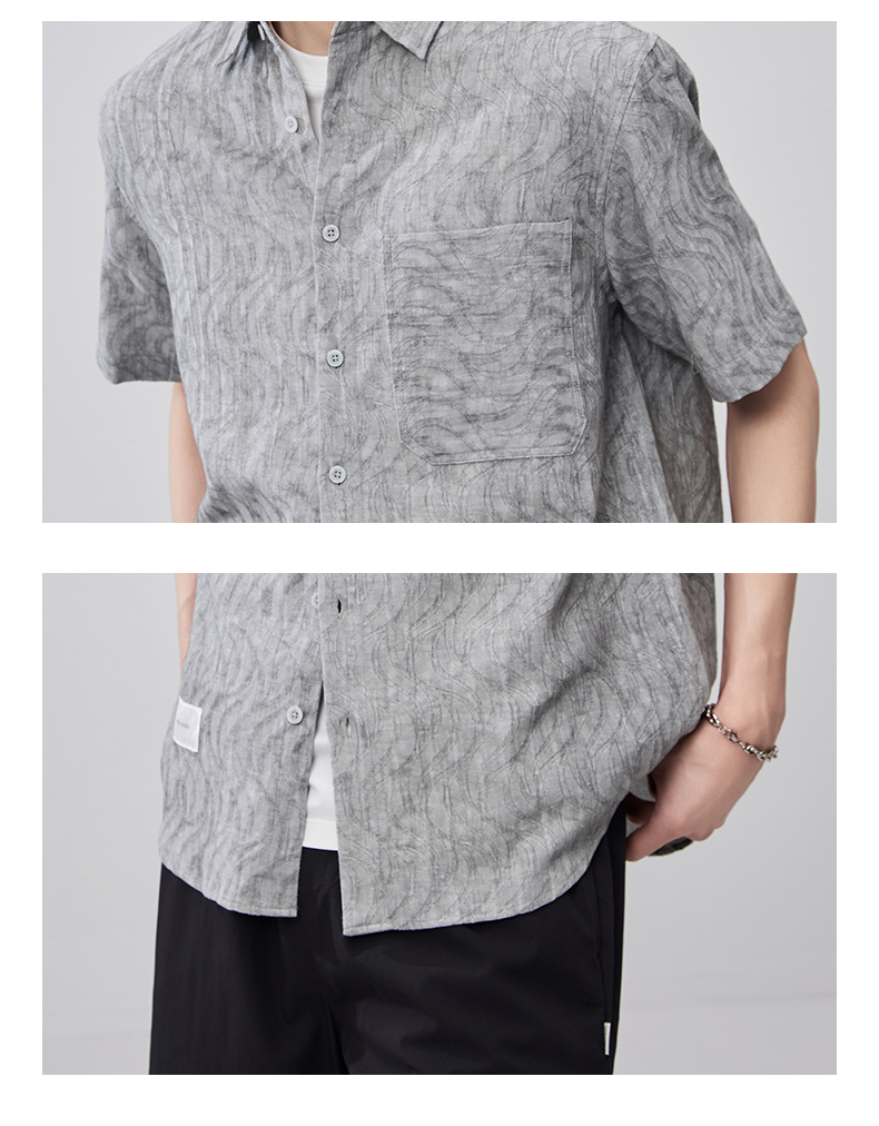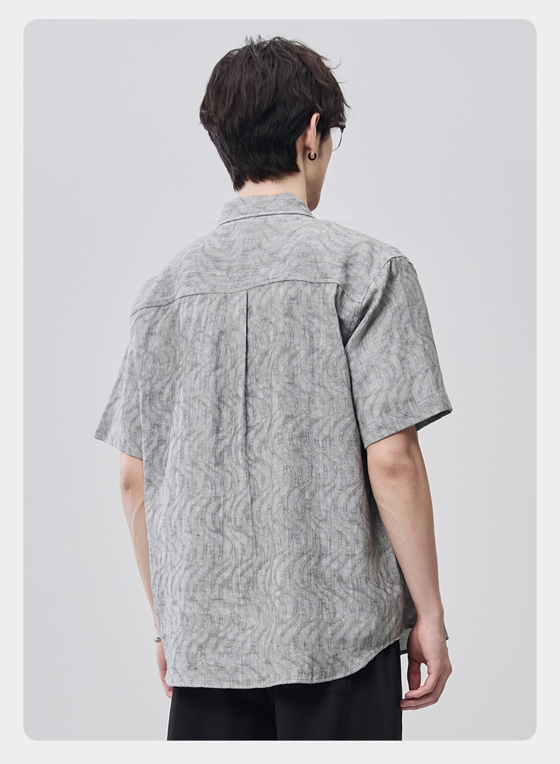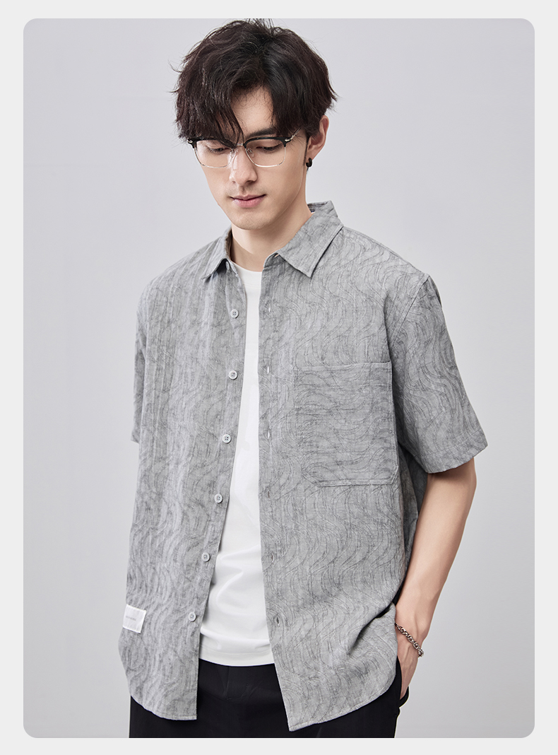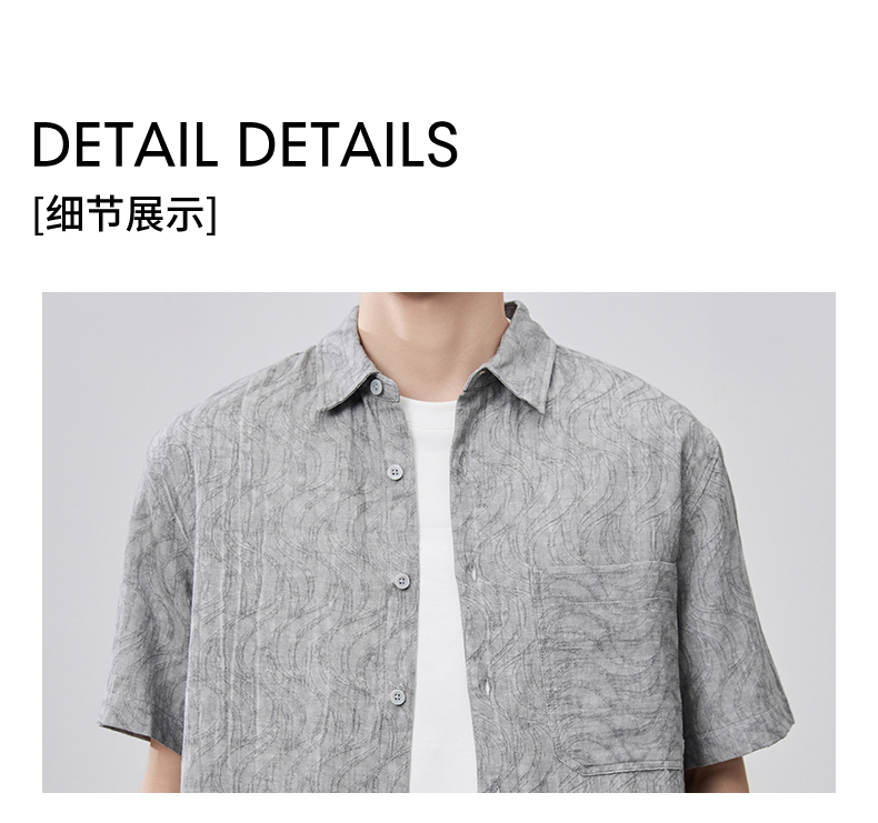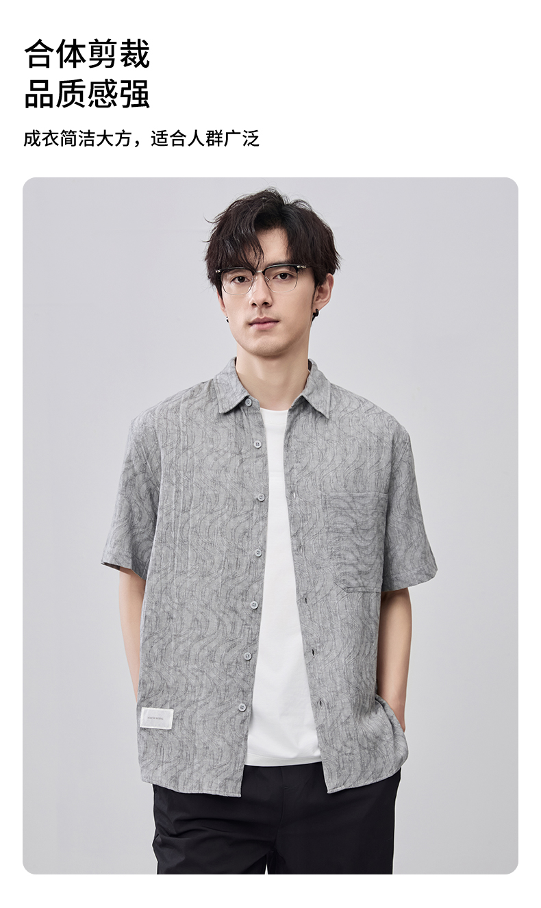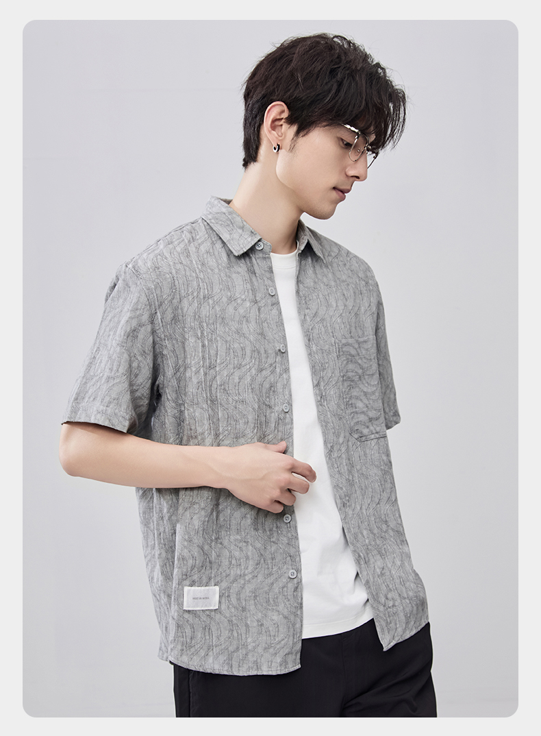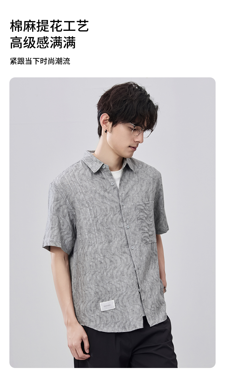 贝纳川夏季棉麻提花短袖衬衣ECF212001