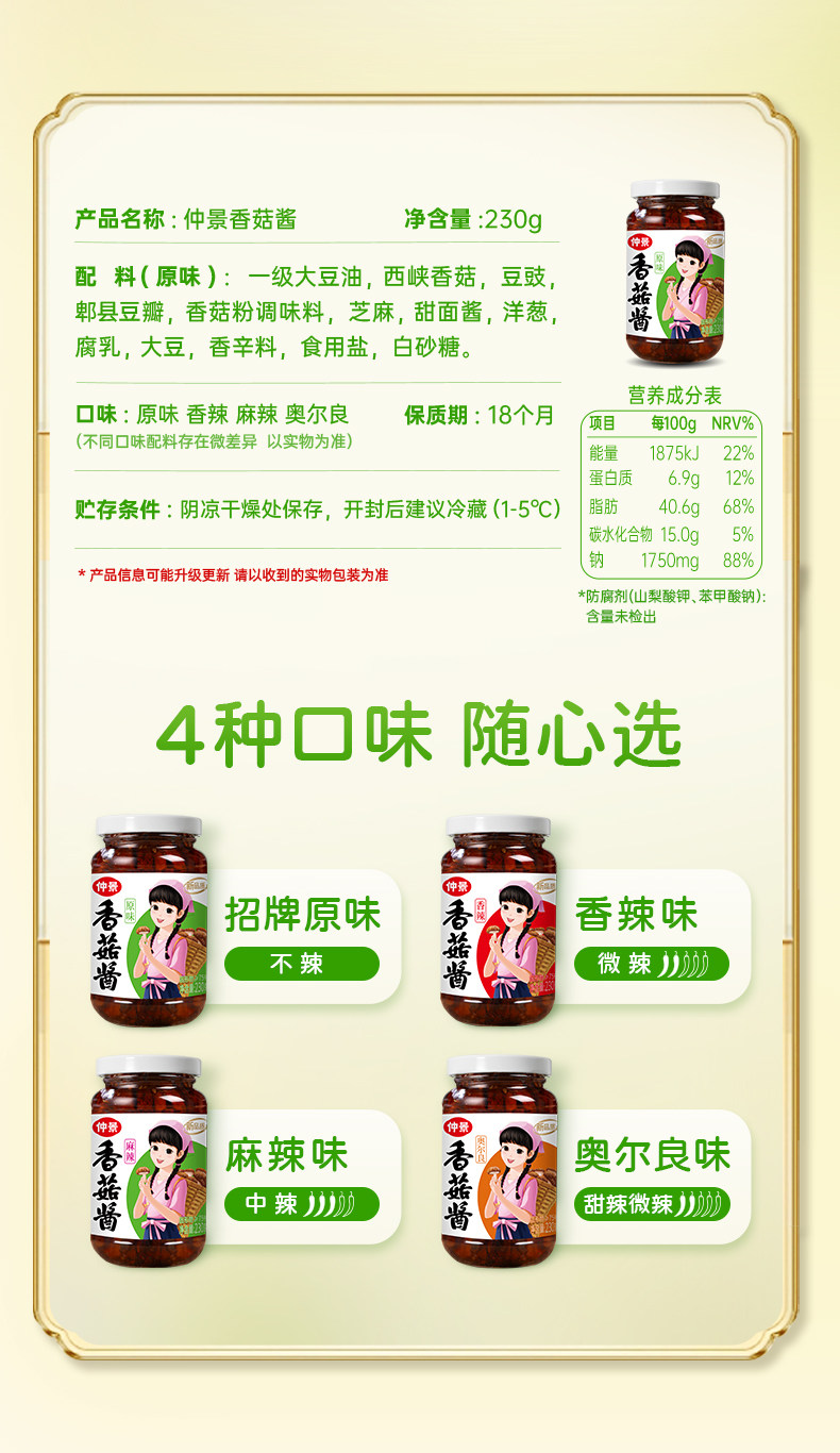 仲景香菇酱 210g/瓶 多口味任选