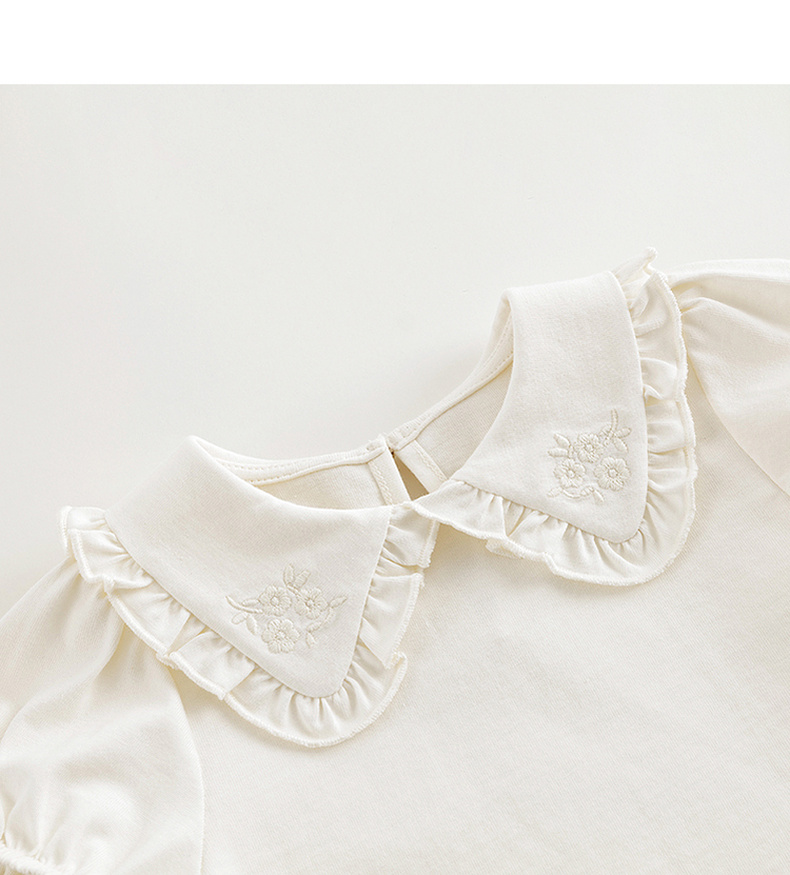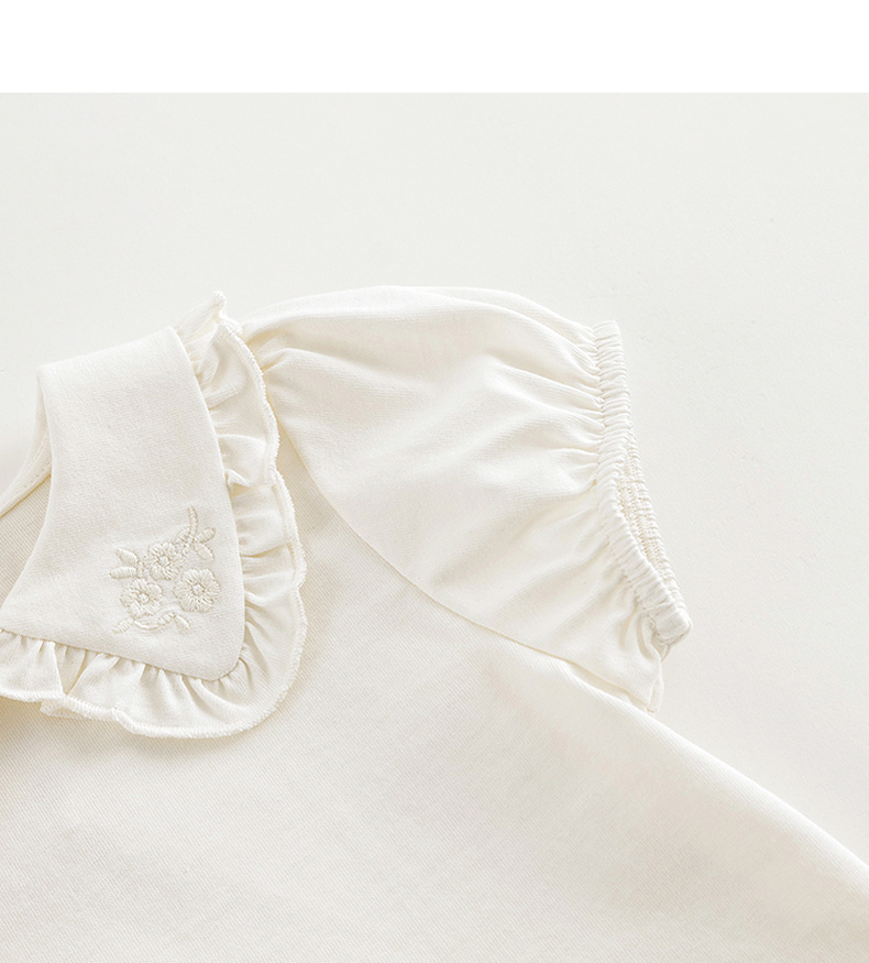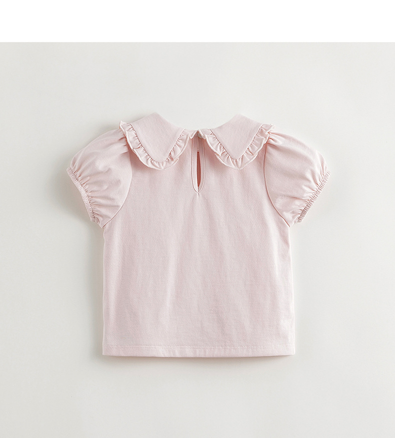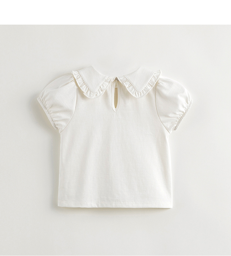 马克珍妮女童绣花娃娃领泡泡袖短袖T恤儿童上衣夏装新款240706