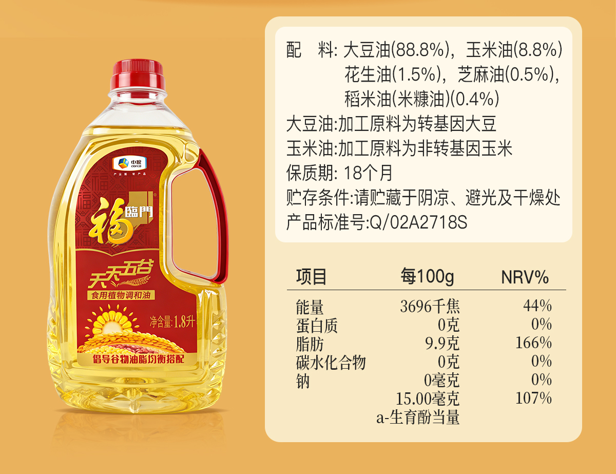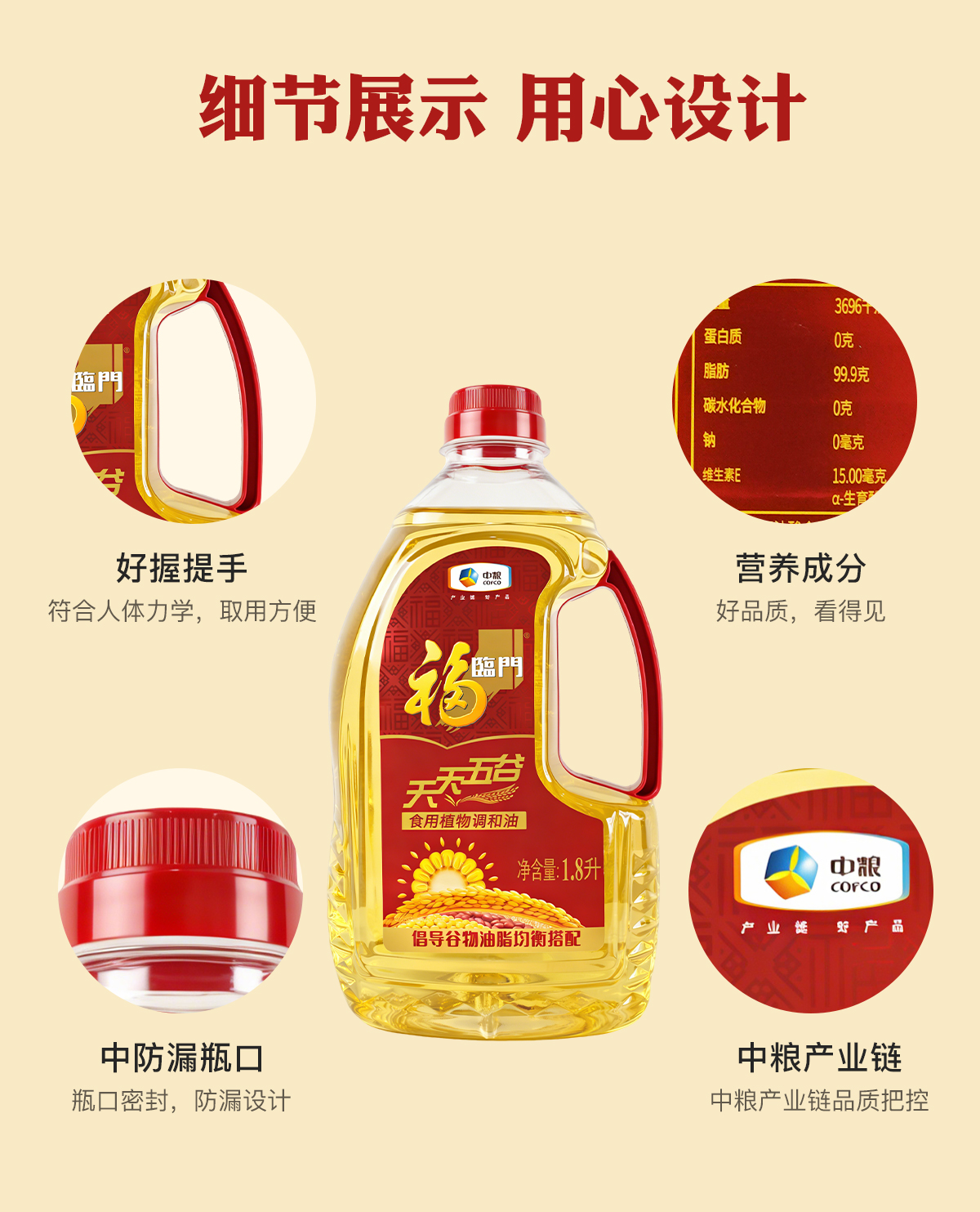 植物调和油1.8L食用油中粮福临门天天五谷食用植物调和油
