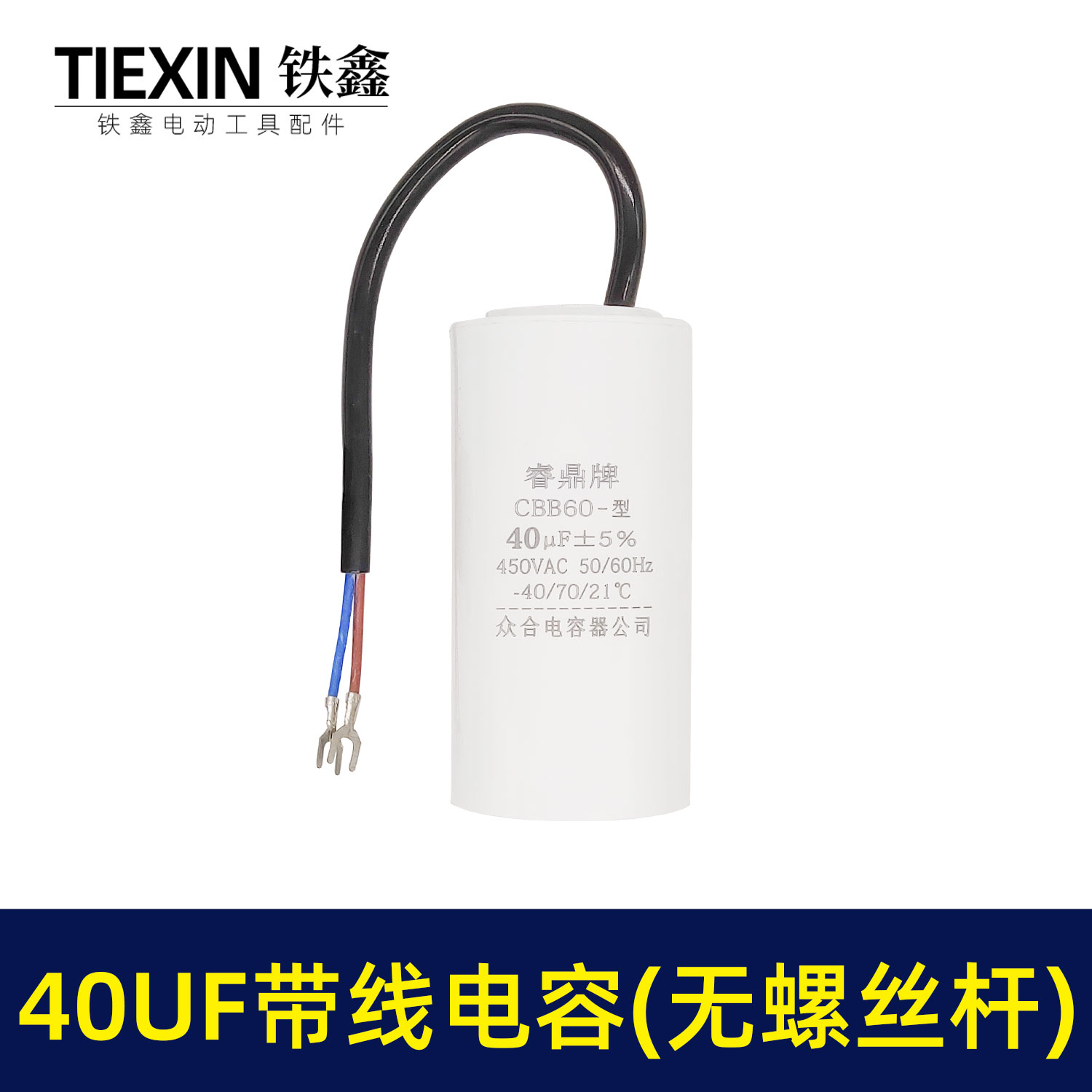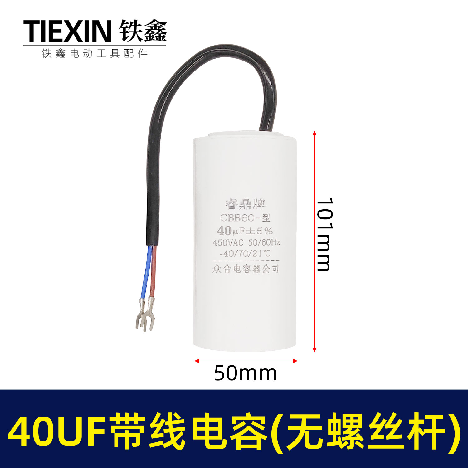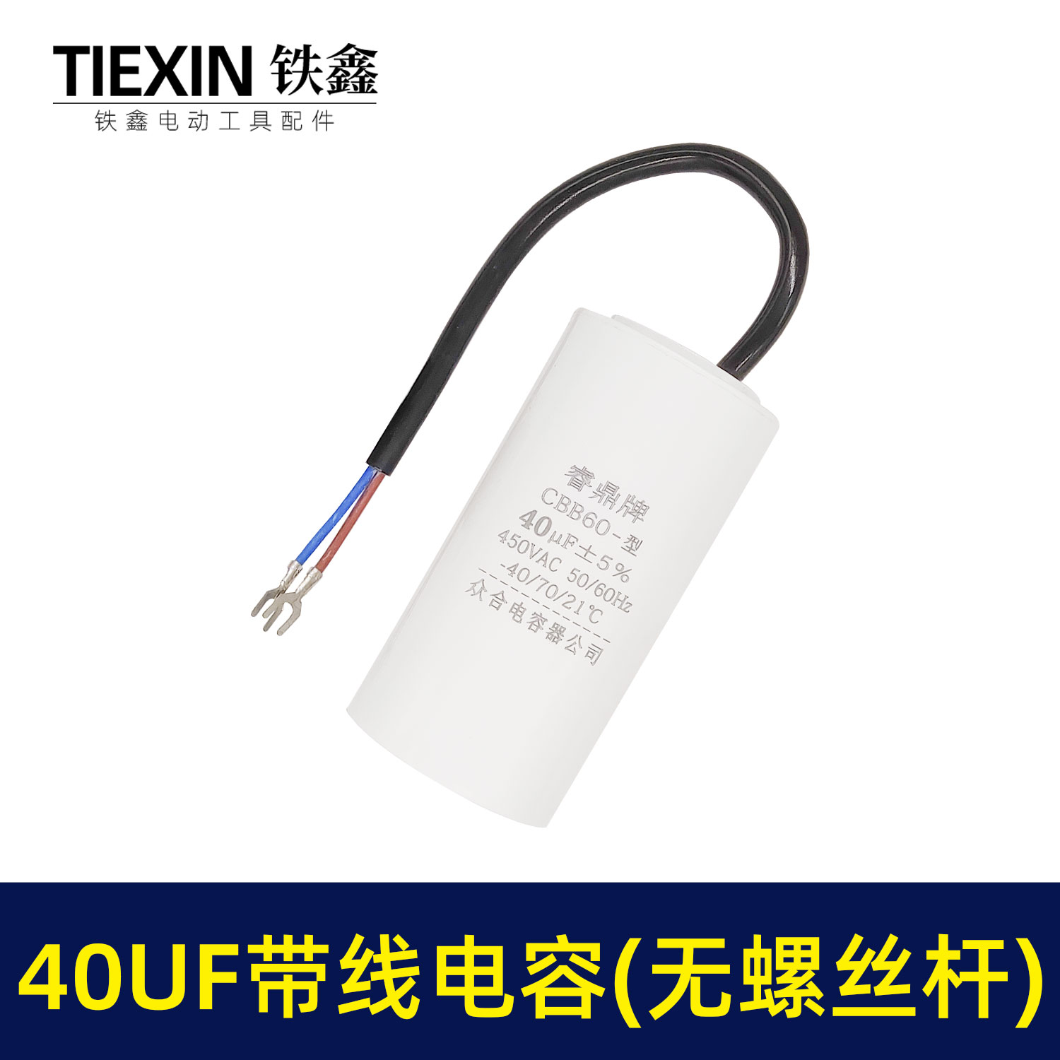 【货号02979】 40UF带线电容(无螺丝杆)电动机水泵空压机气泵电容启动电容