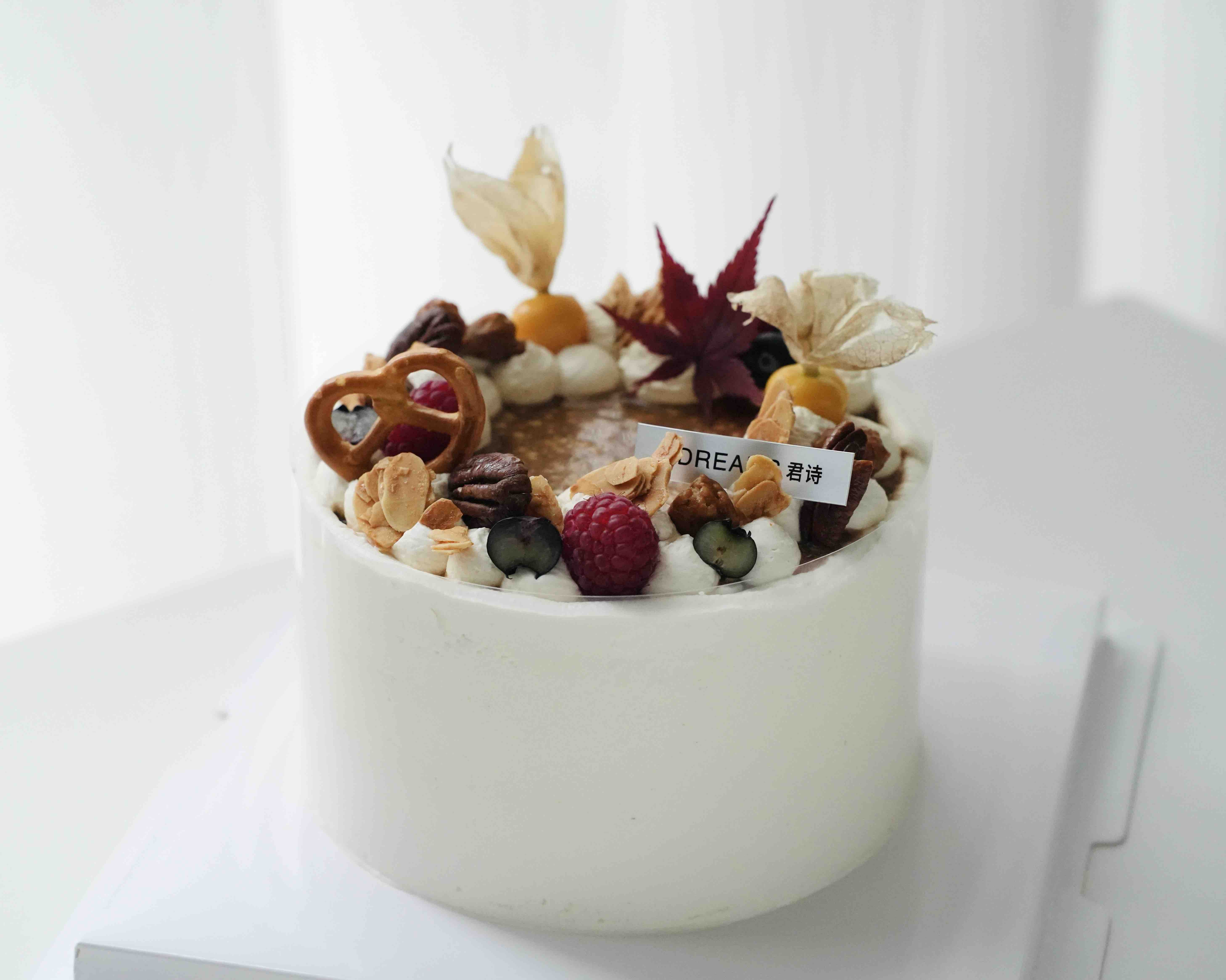 淡奶油,小麦粉,鸡蛋,黄油,牛奶,可可粉,巧克力,糖,香草荚,盐,巧克力脆珠,核桃,榛子,扁桃仁片,碧根果,树莓,蓝莓,姑娘果等