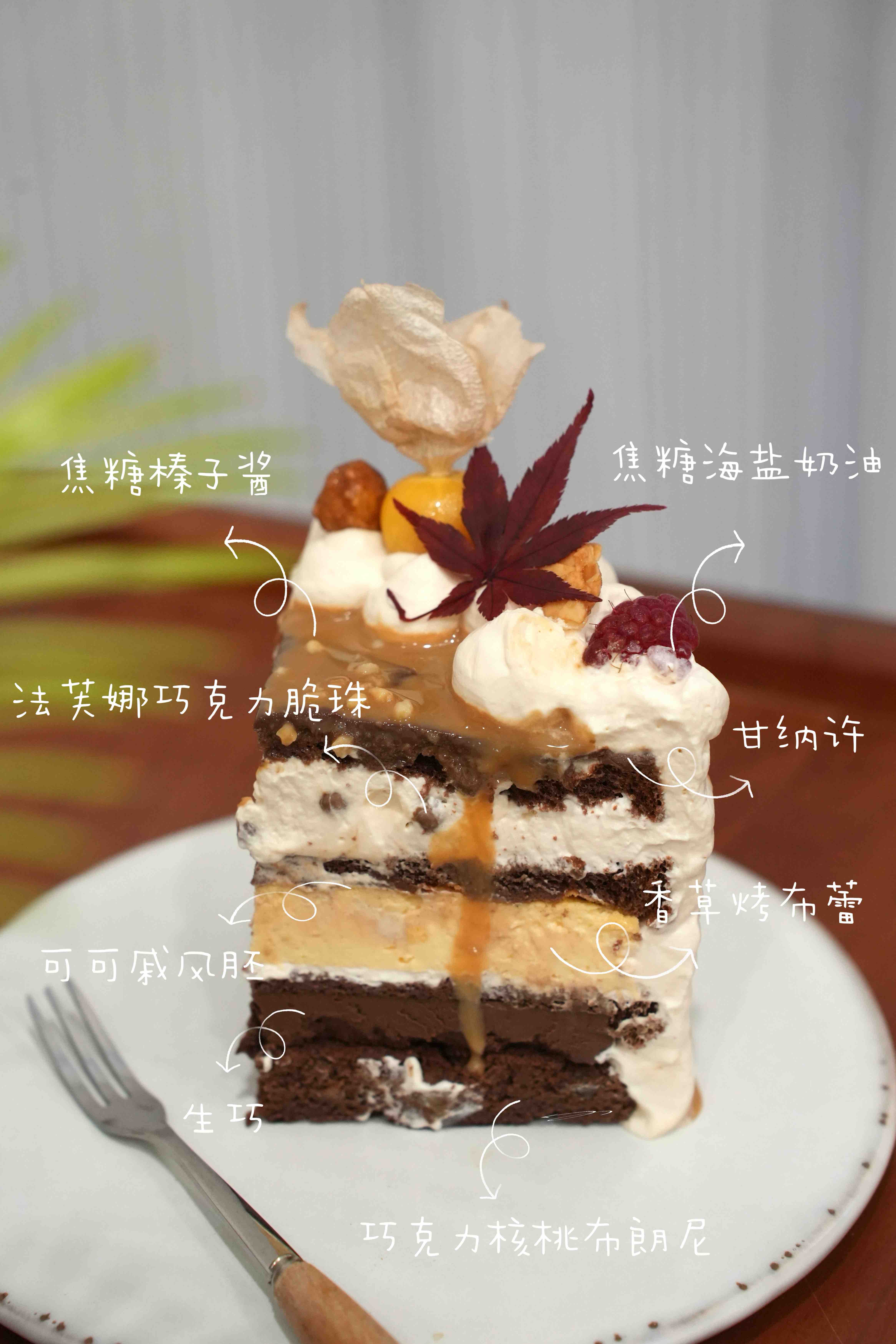 生巧的浓郁和巧克力核桃布朗尼的细腻已经足够诱人,软嫩的香草烤布蕾与焦糖海盐奶油更是丰富了口感层次,从上而下每层都各有特点,如果你是忠实的巧克力脑袋,那一定要试试它