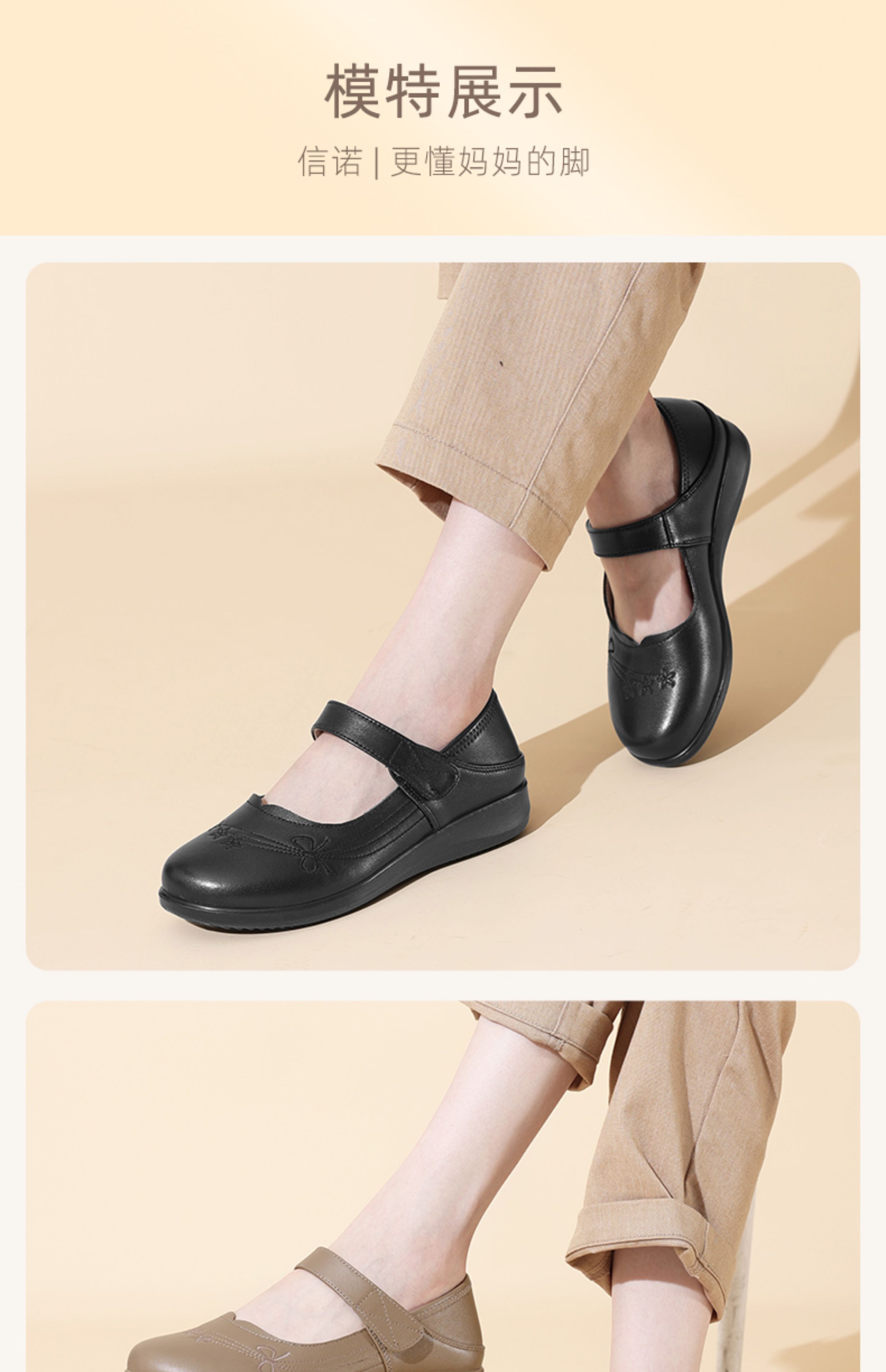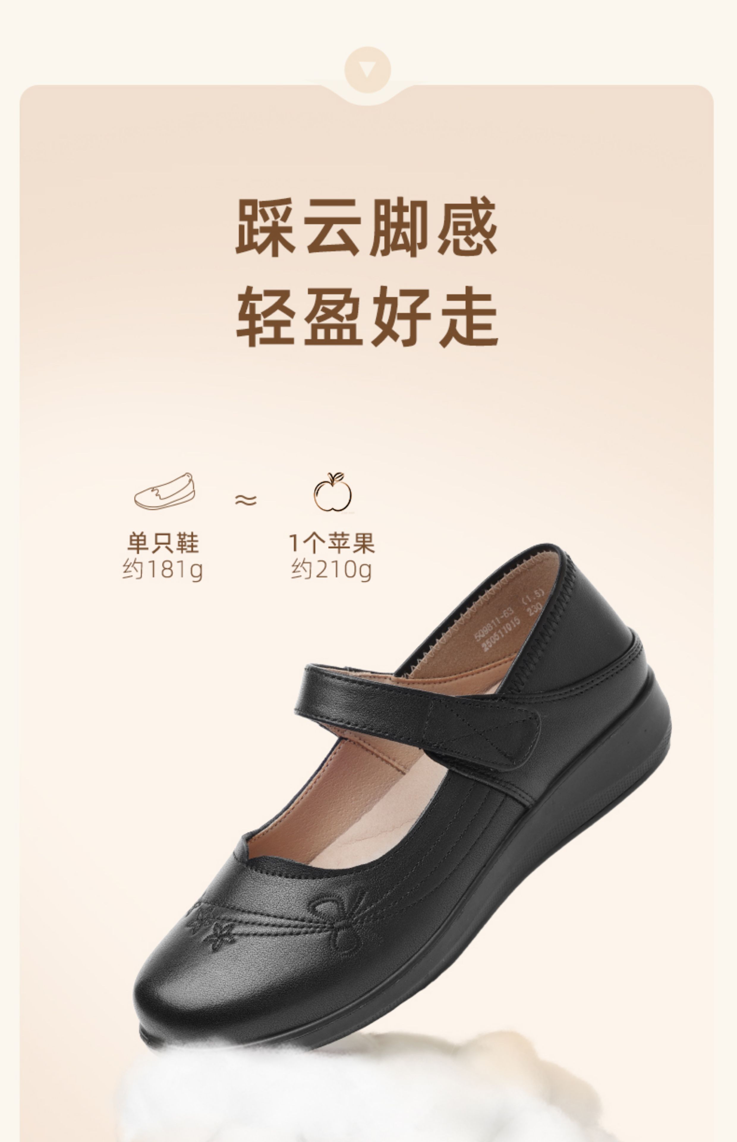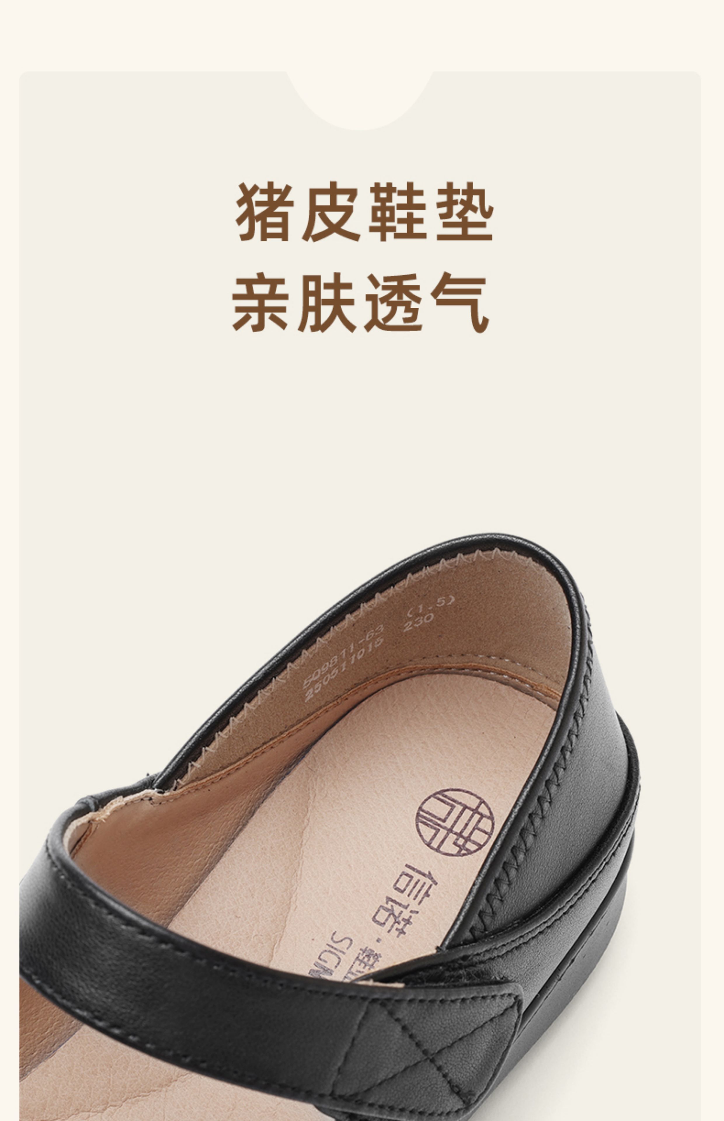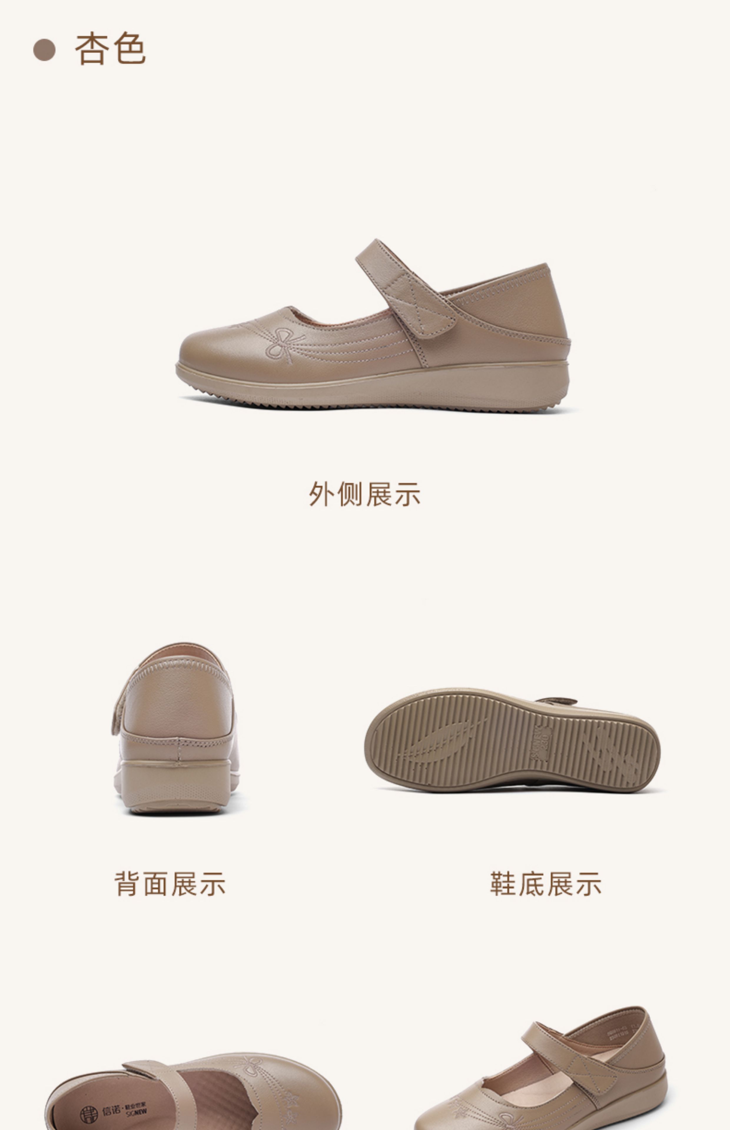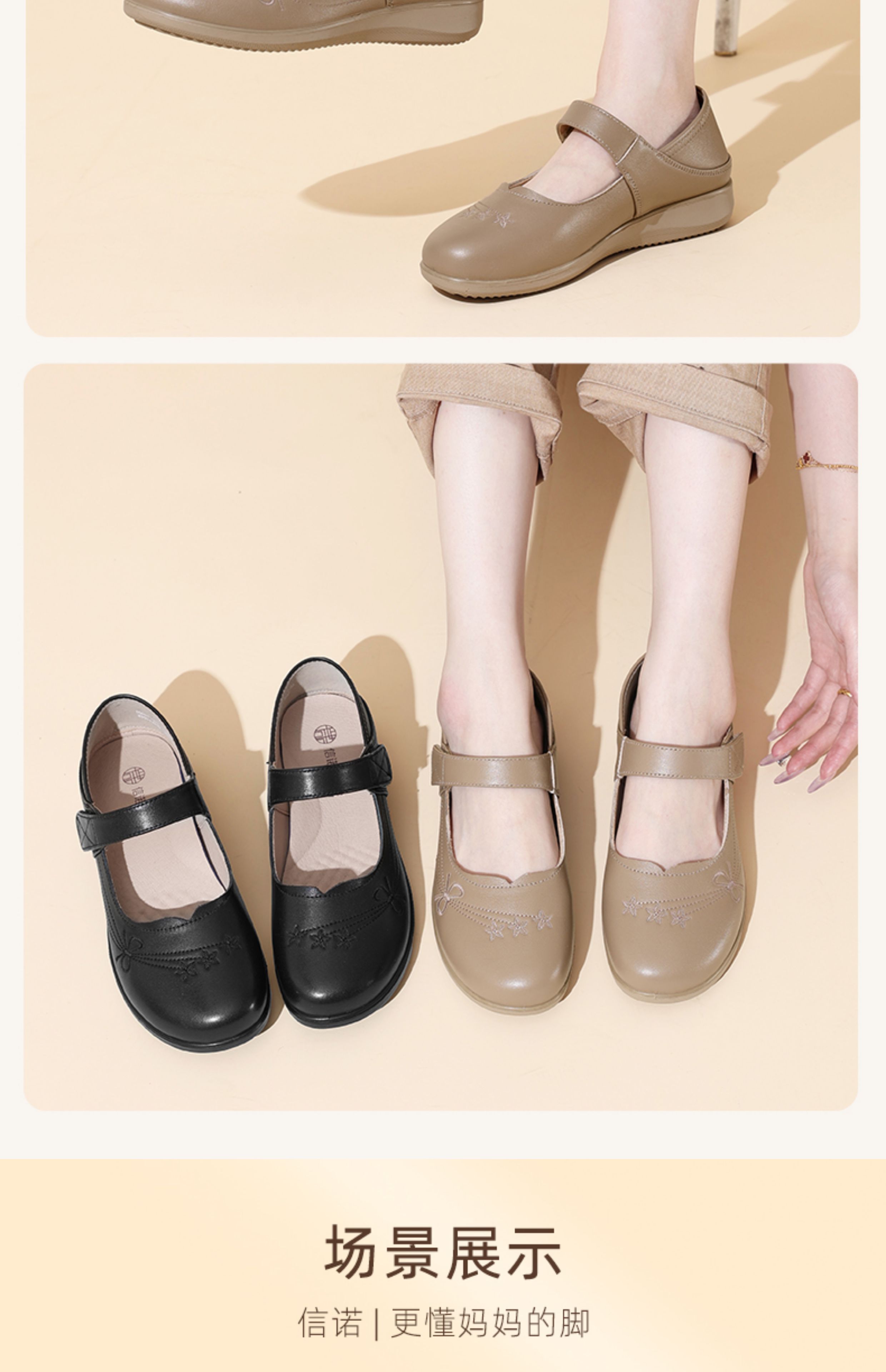 妈妈鞋2025年春季真皮软底魔术贴奶奶鞋中老年皮鞋5Q9811-73