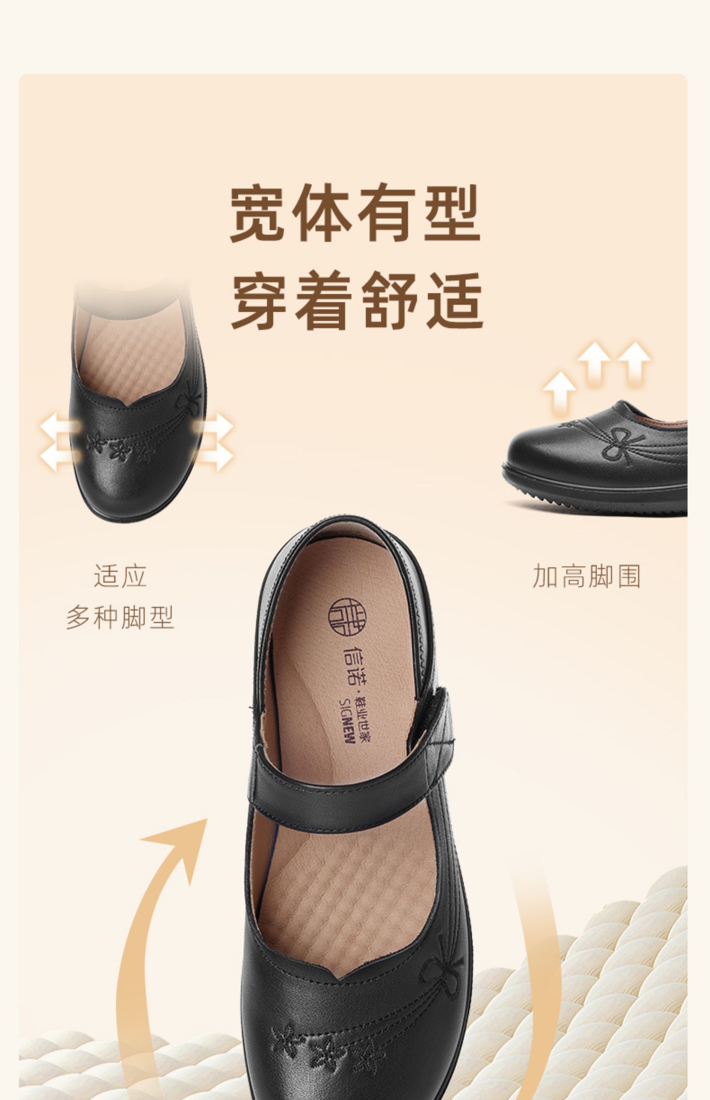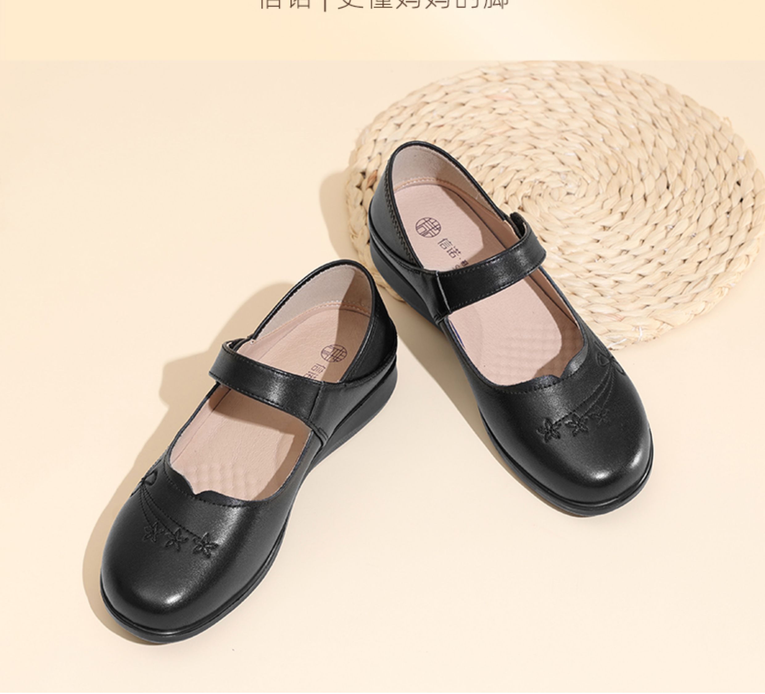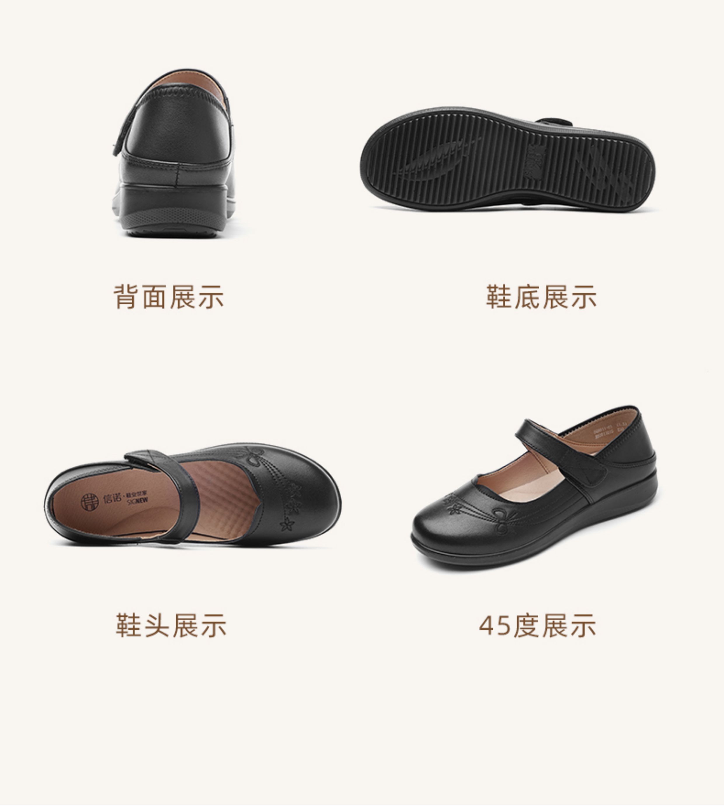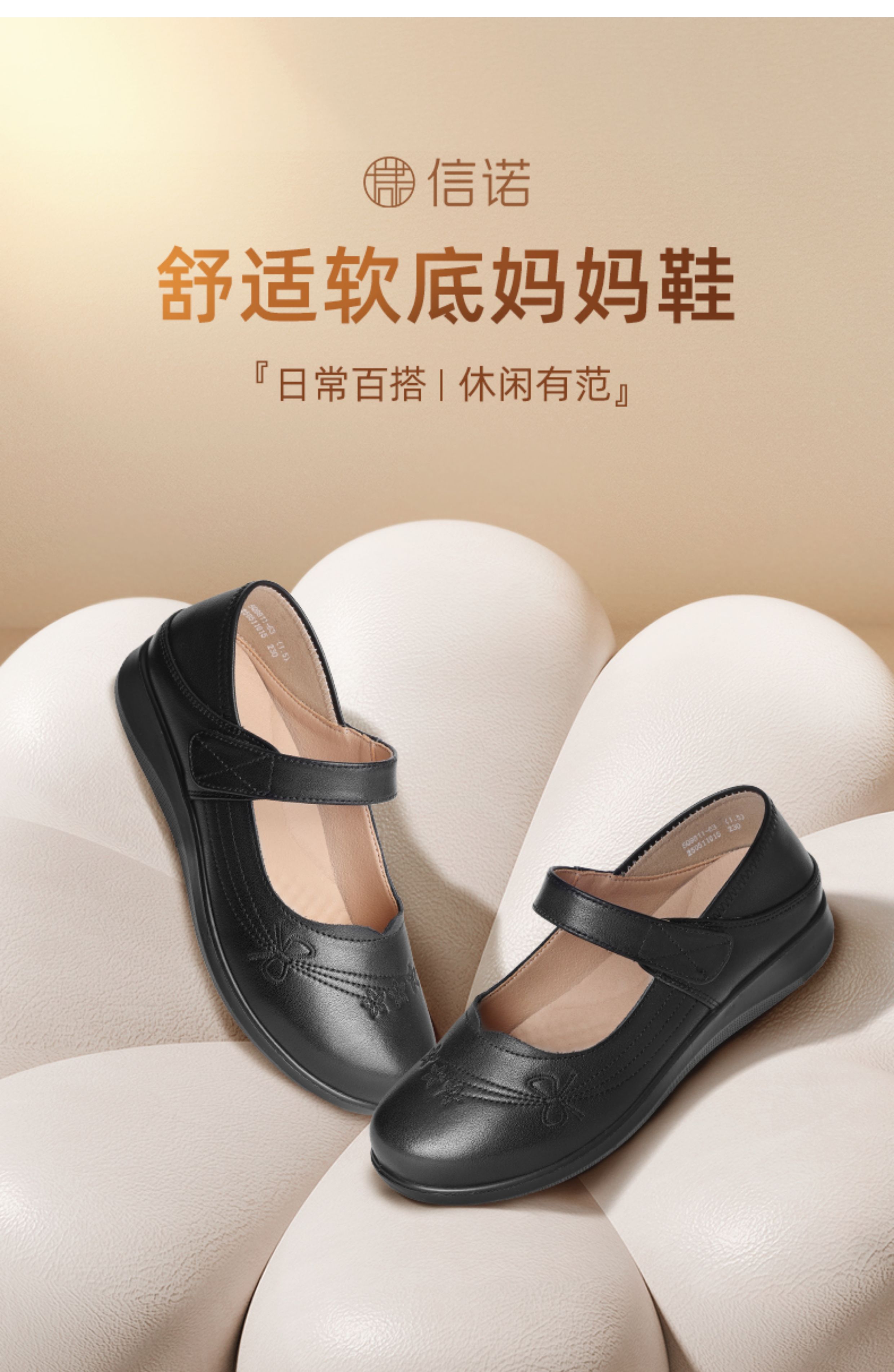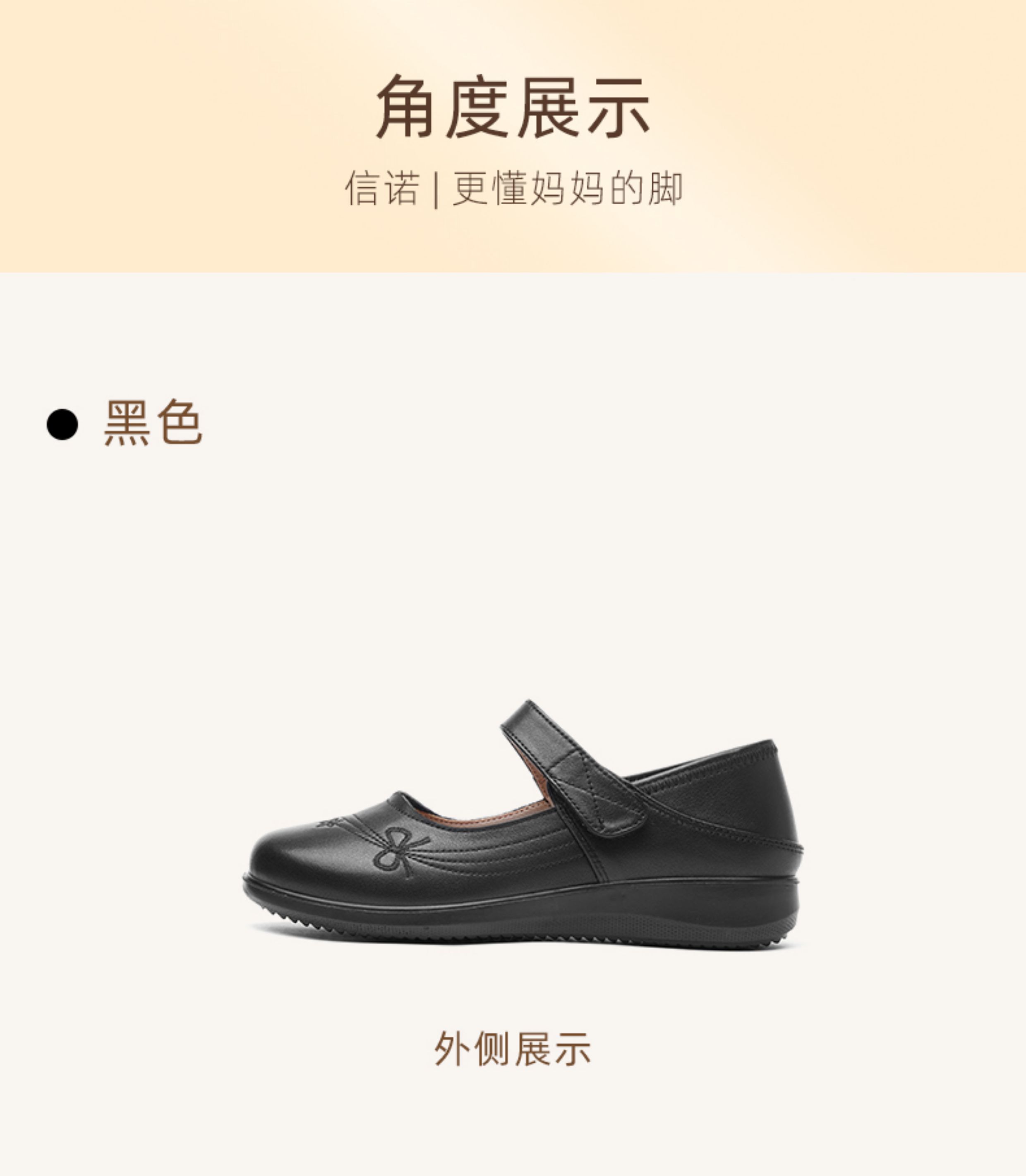 妈妈鞋2025年春季真皮软底魔术贴奶奶鞋中老年皮鞋5Q9811-73