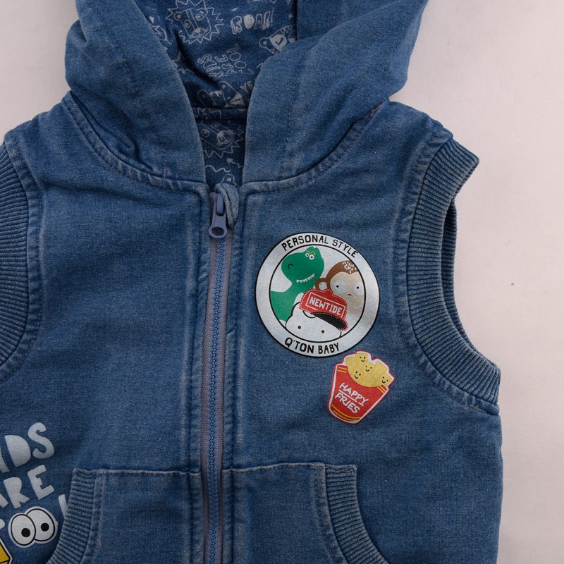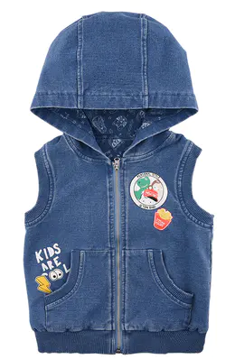 连帽针织牛仔马夹
