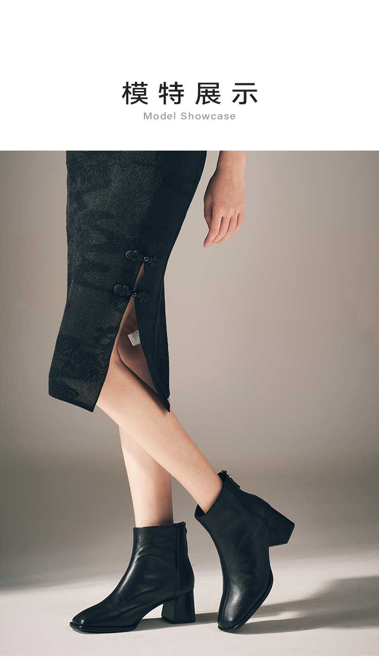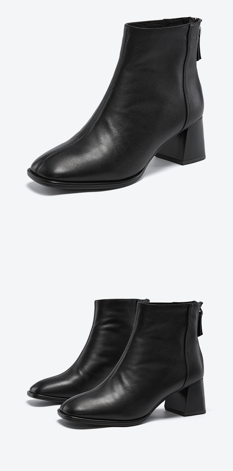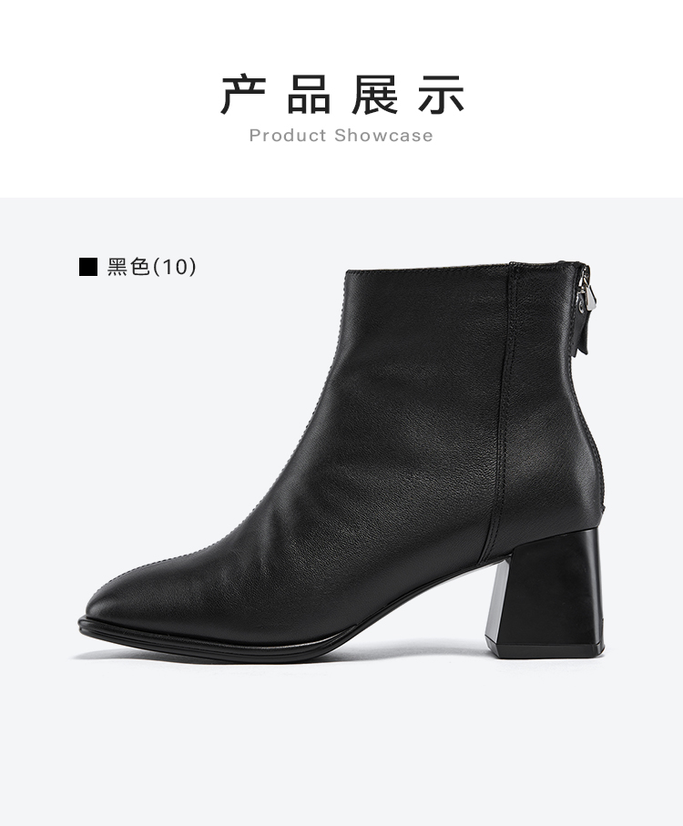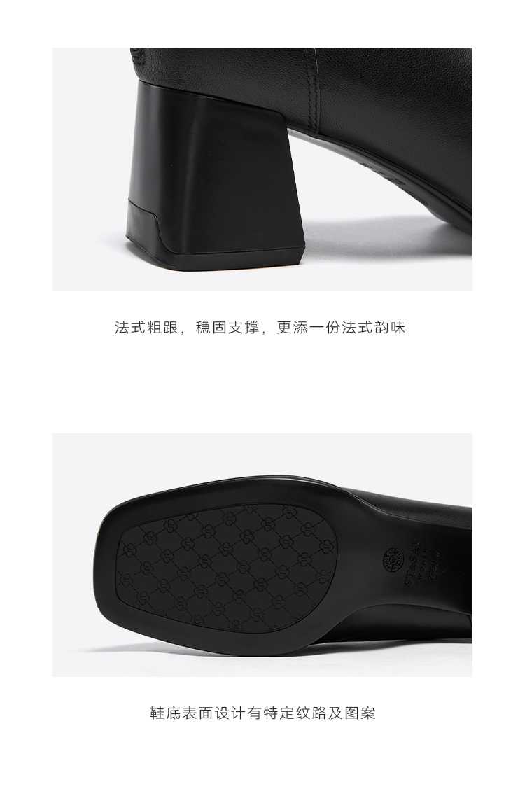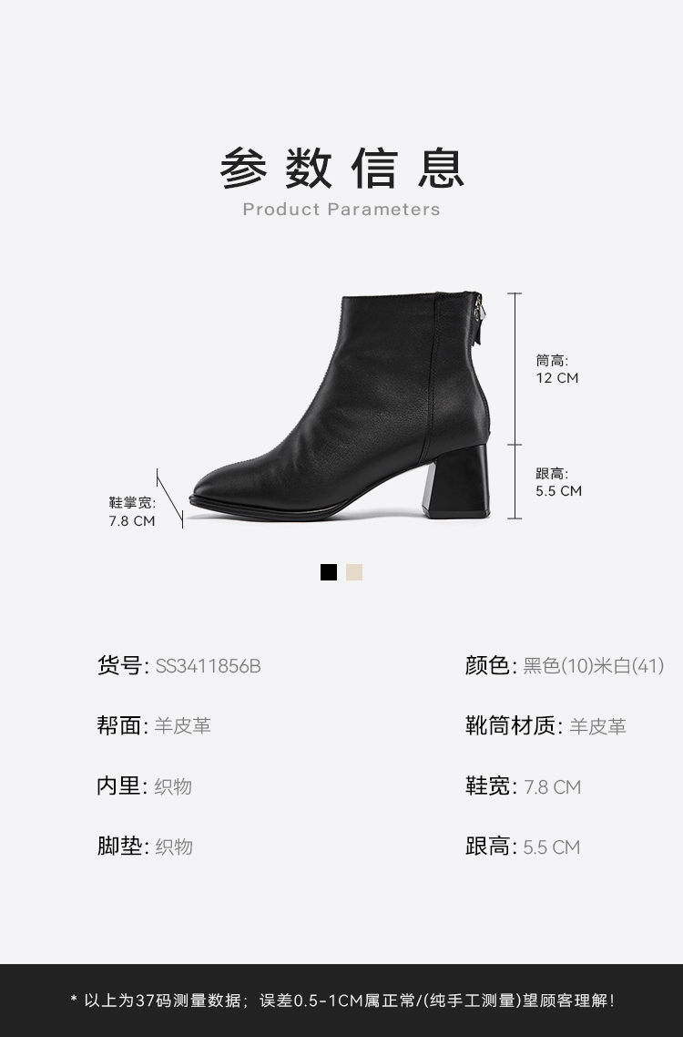 星期六经典方头简约素面粗跟短靴SS3411856B