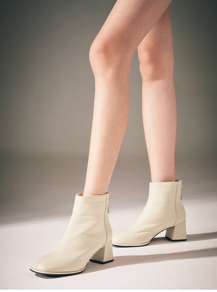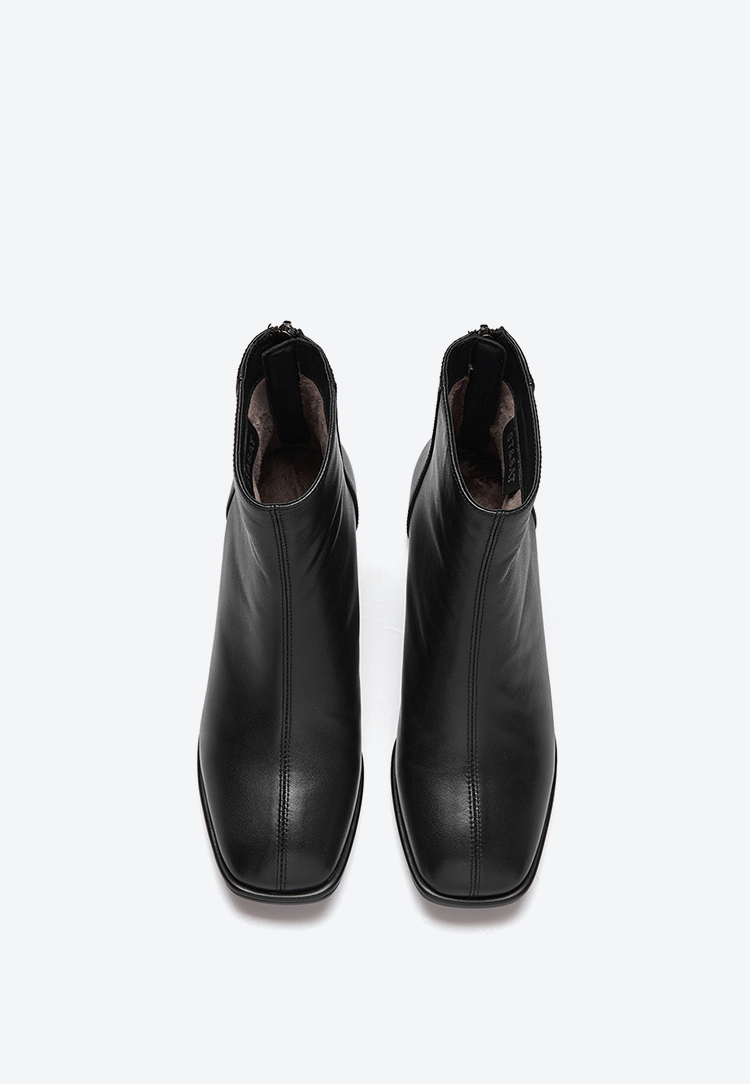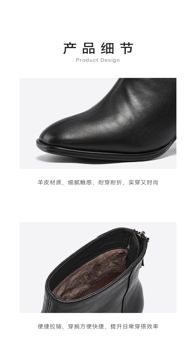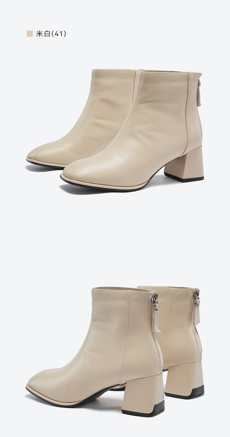 星期六经典方头简约素面粗跟短靴SS3411856B